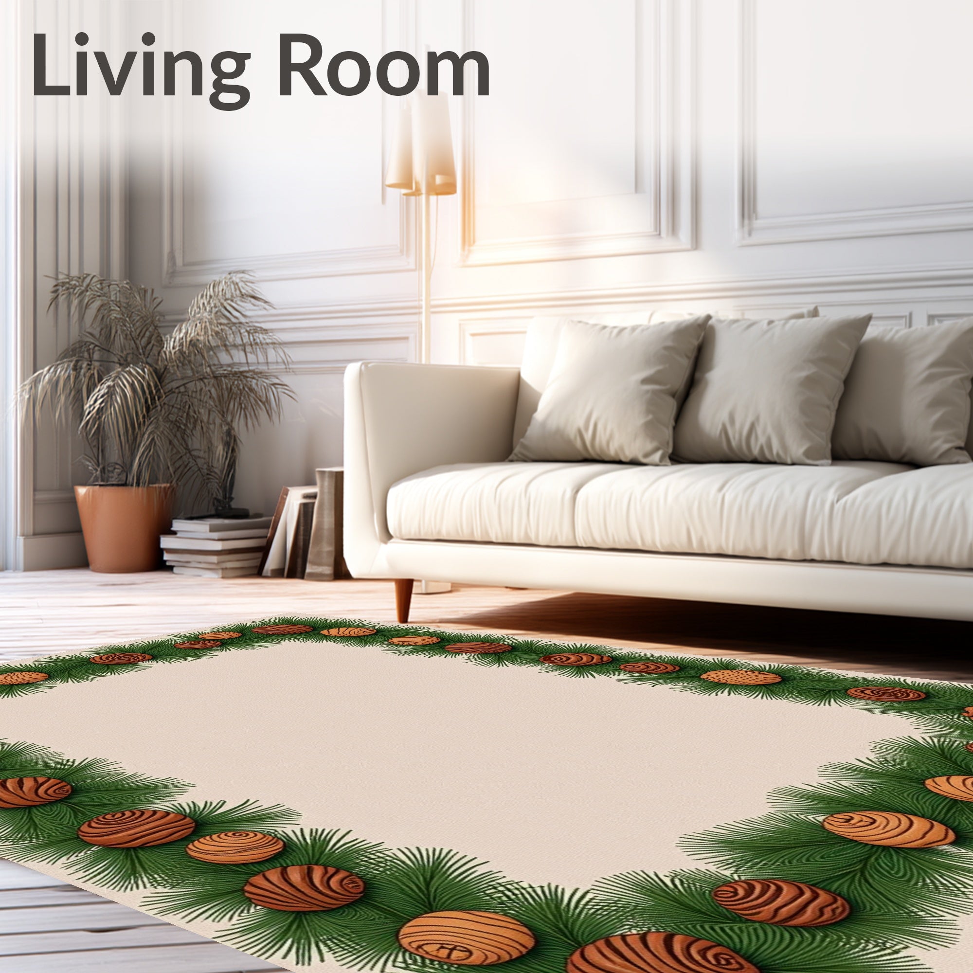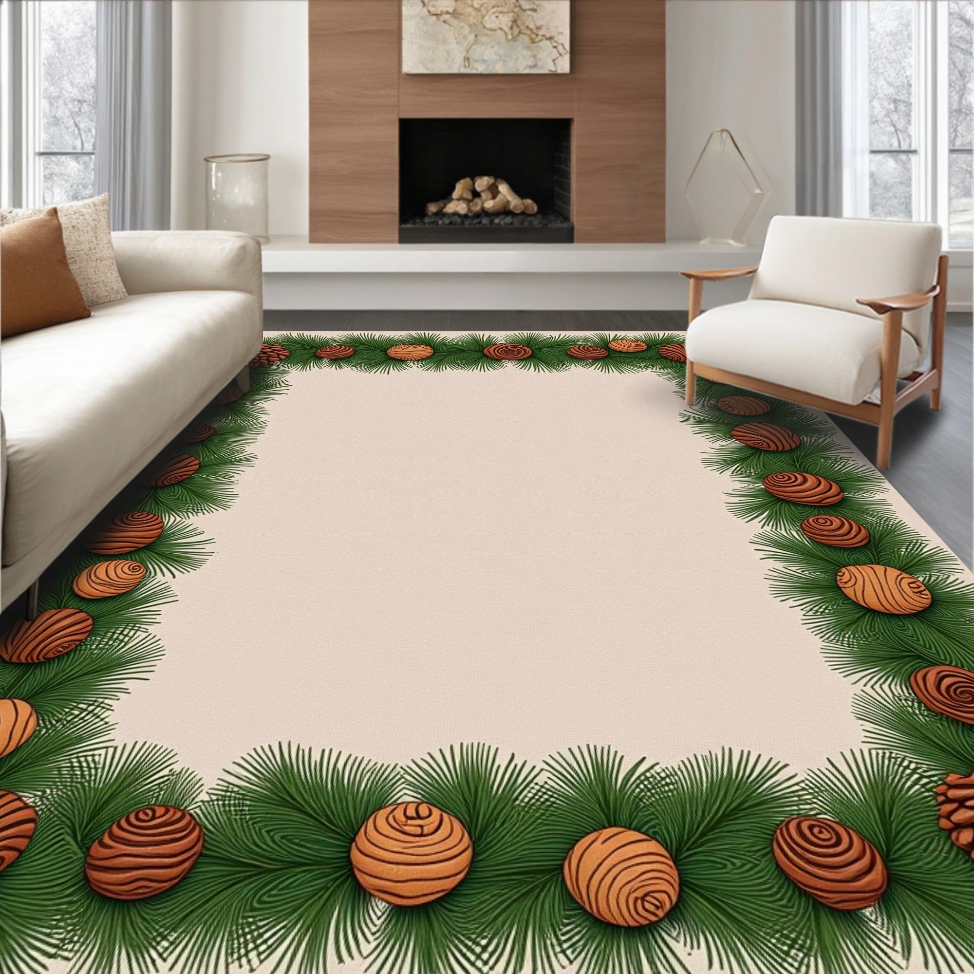 Ultra Soft Area Rug, Non Slip, Stain Resistant, Washable Area Rugs for Living Room, Bedroom, Pine Cone Doormat with Evergreen Branch Border(Green) Overview: