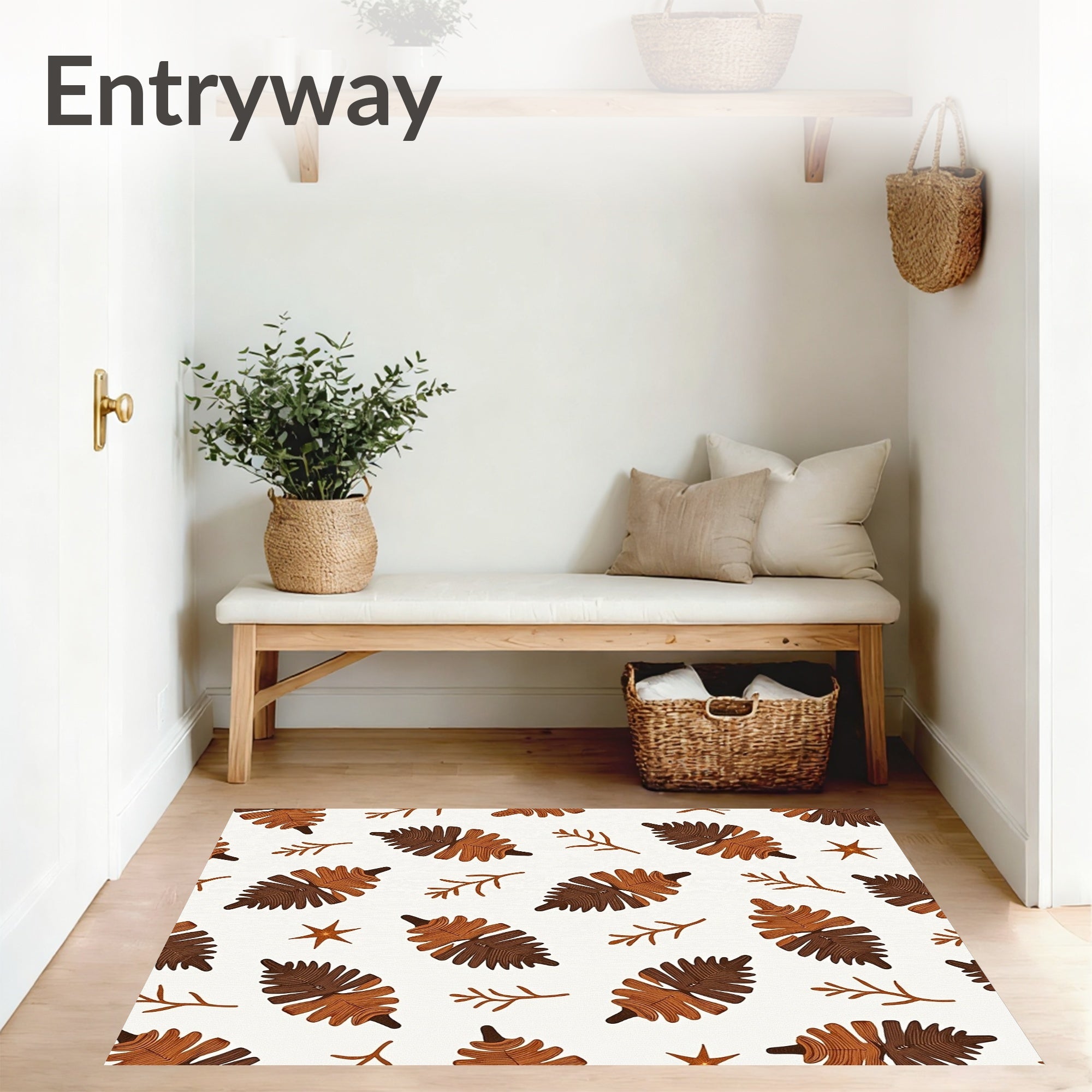 Ultra Soft Area Rug, Non Slip, Stain Resistant, Washable Area Rugs for Living Room, Bedroom, Pine Cone with Rustic Woodland Christmas Theme(Brown) Overview: