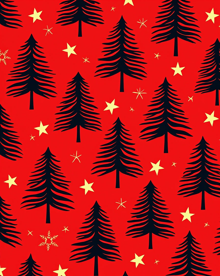 Pine Tree Forest with Starry Night Holiday Design(Red)