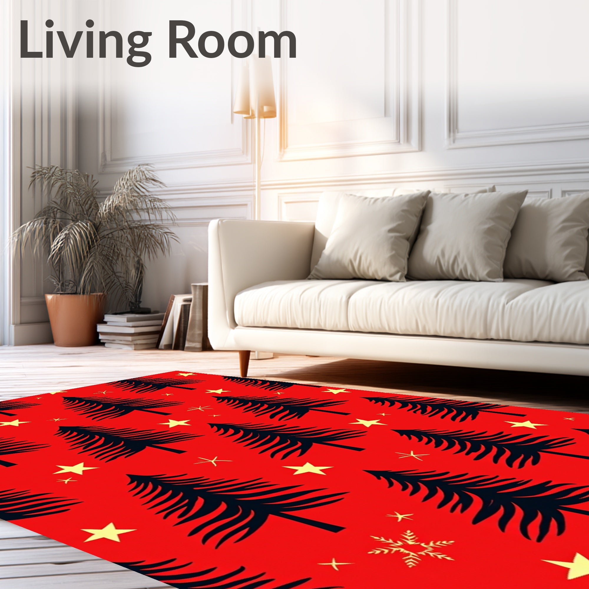 Ultra Soft Area Rug, Non Slip, Stain Resistant, Washable Area Rugs for Living Room, Bedroom, Pine Tree Forest with Starry Night Holiday Design(Red) Overview: