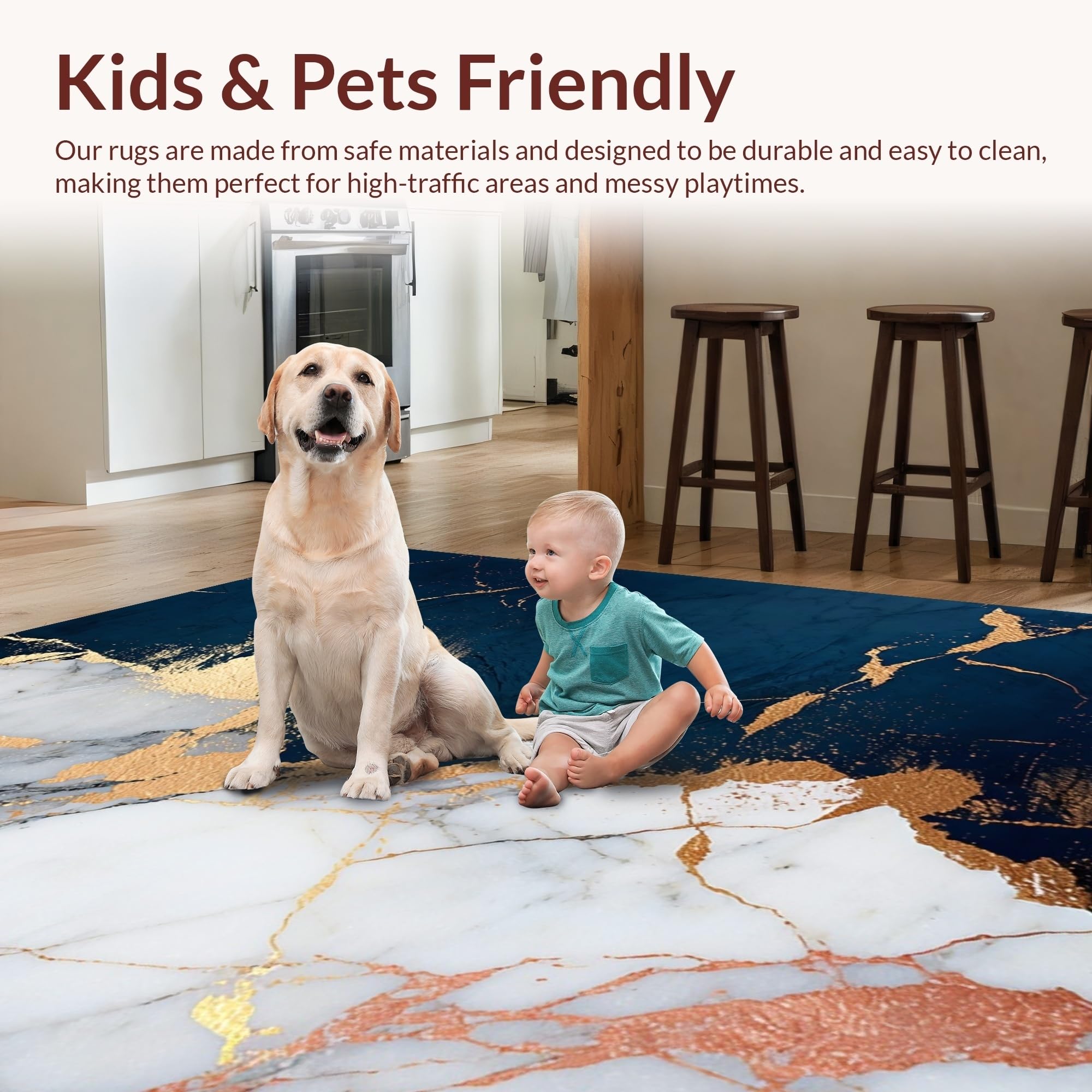 Ultra Soft Area Rug, Non Slip, Stain Resistant, Washable Area Rugs for Living Room, Bedroom, Pink and Blue Bedroom Rug for Modern Aesthetic(Blue) Overview: