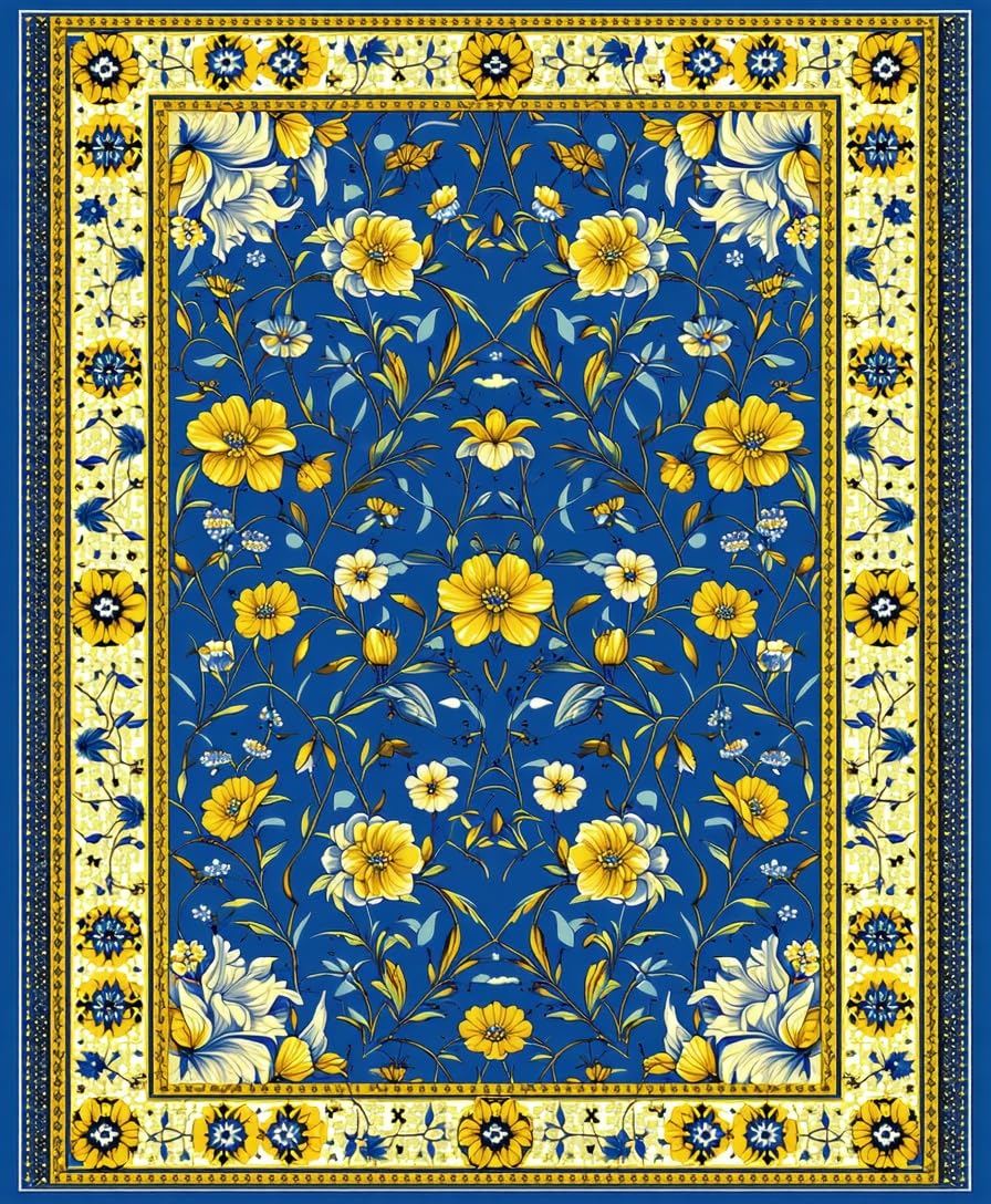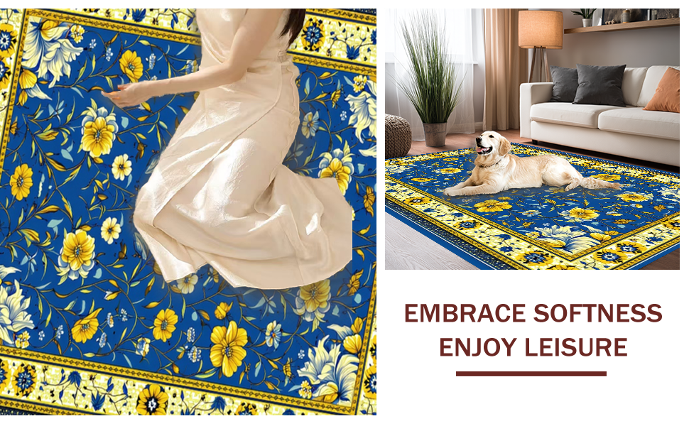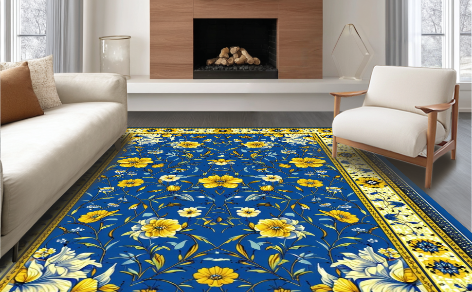 Ultra Soft Area Rug, Non Slip, Stain Resistant, Washable Area Rugs for Living Room, Bedroom, Playful Brightly Colored Ogee Style(Blue) Overview:
