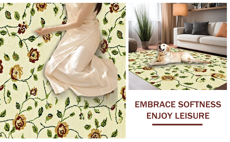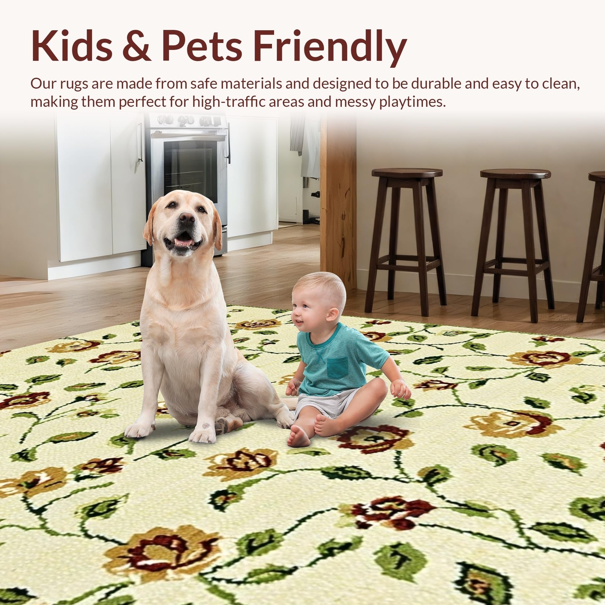 Ultra Soft Area Rug, Non Slip, Stain Resistant, Washable Area Rugs for Living Room, Bedroom, Playful Bunny and Blossom Composition(Beige) Overview: