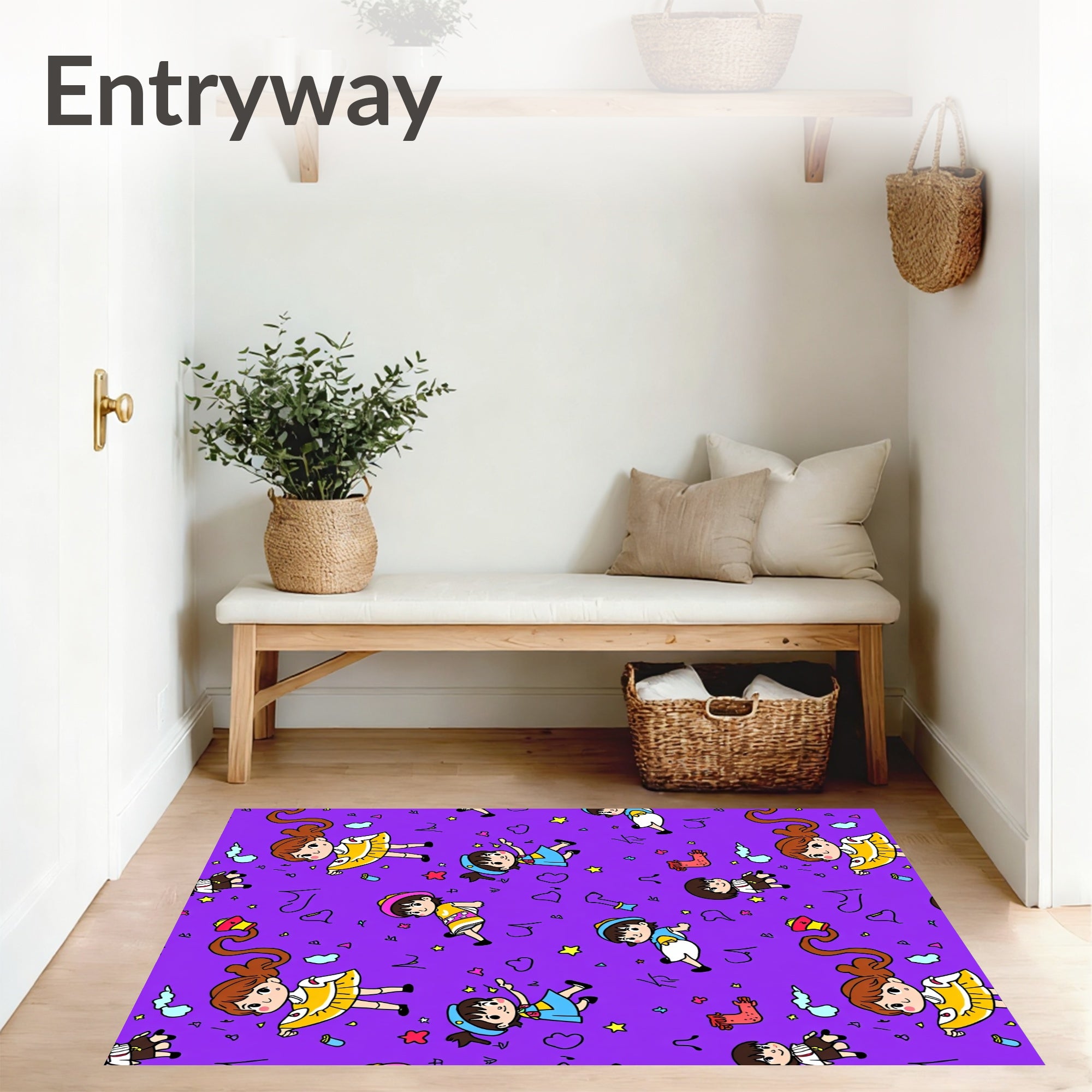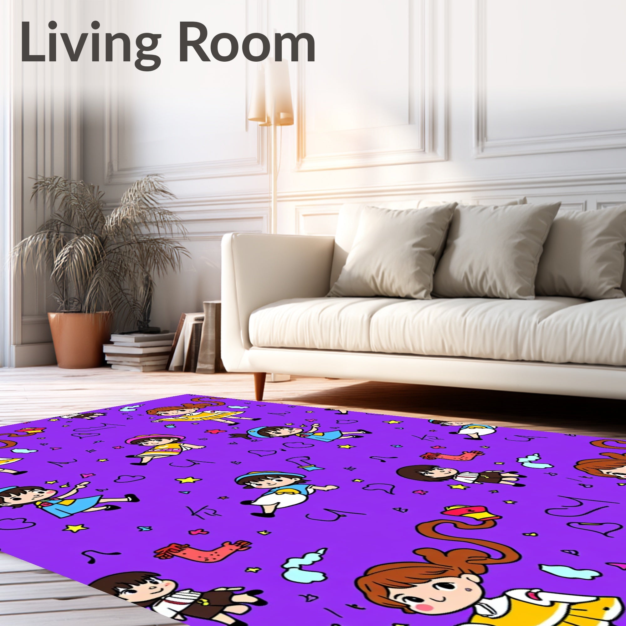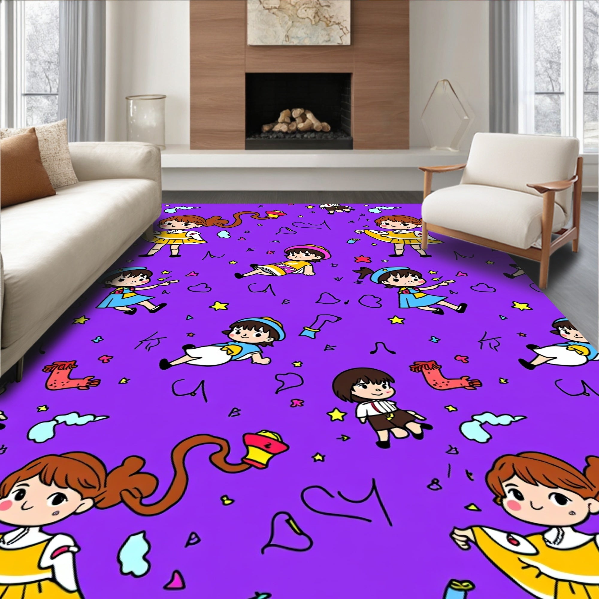 Flatwoven High Traffic Area Rug, Playful Cartoon Adventure Fantasy Wonderland, Non Slip, Stain Resistant, Washable Area Rugs for Living Room, Bedroom (Purple) Overview: