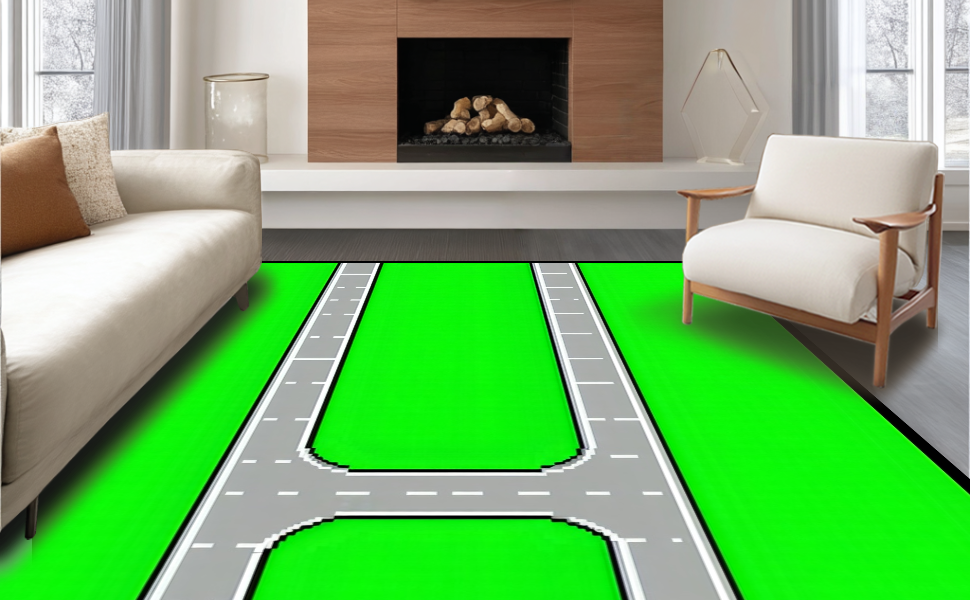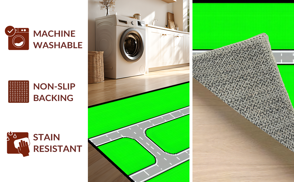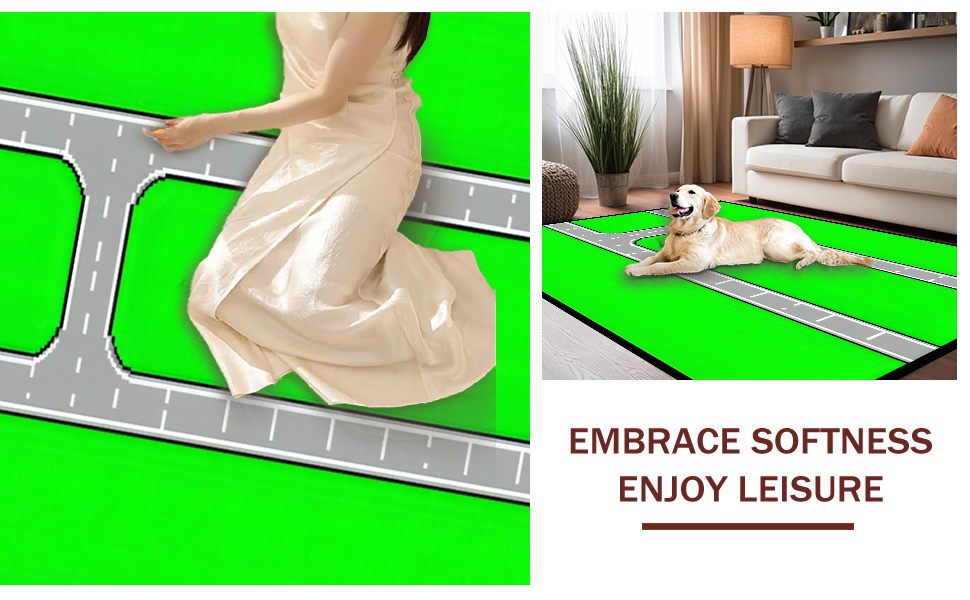 Ultra Soft Area Rug, Non Slip, Stain Resistant, Washable Area Rugs for Living Room, Bedroom, Playful Cartoon Airplane Road Design(Green) Overview: