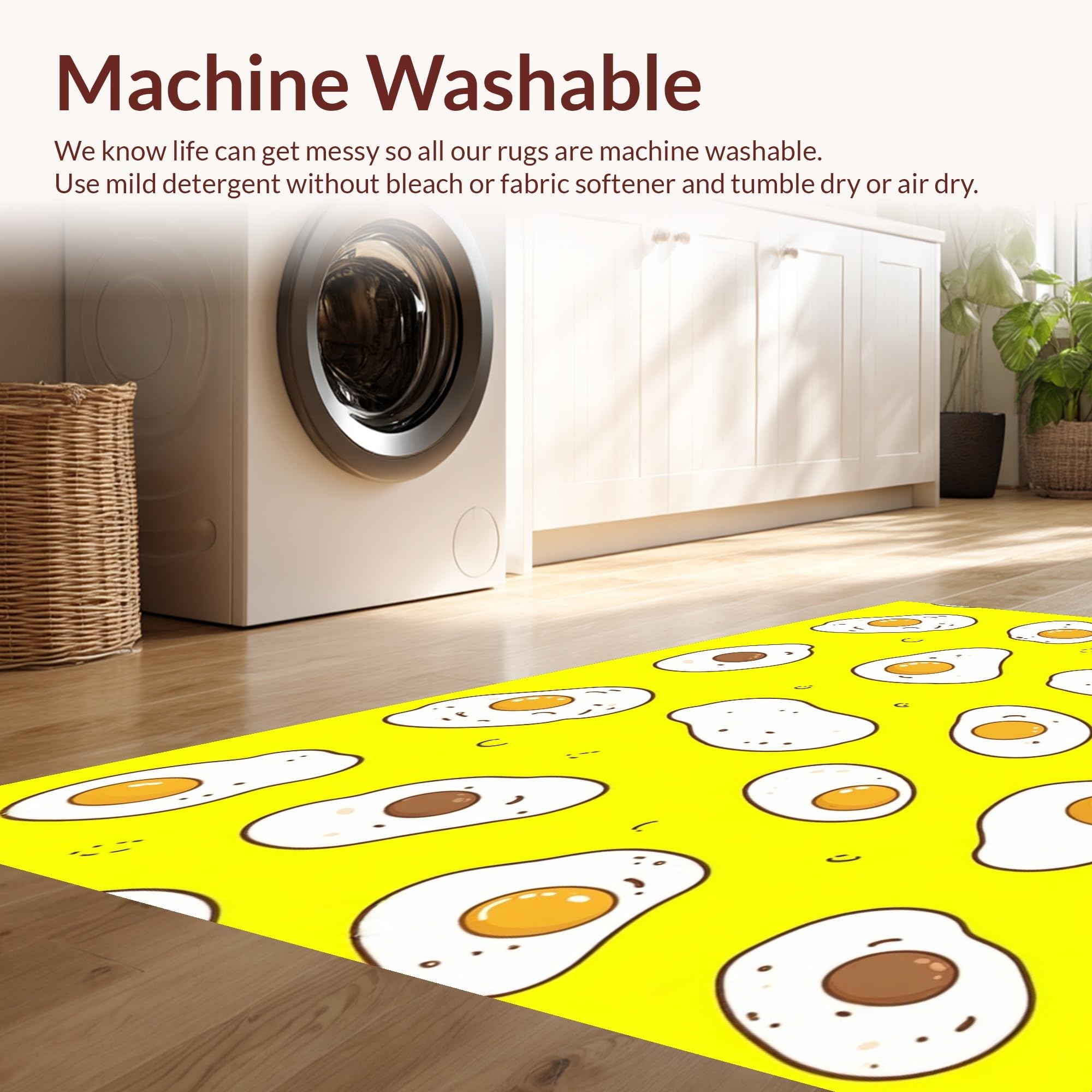 - Machine Washable: Our rugs can be easily thrown in the wash machine.