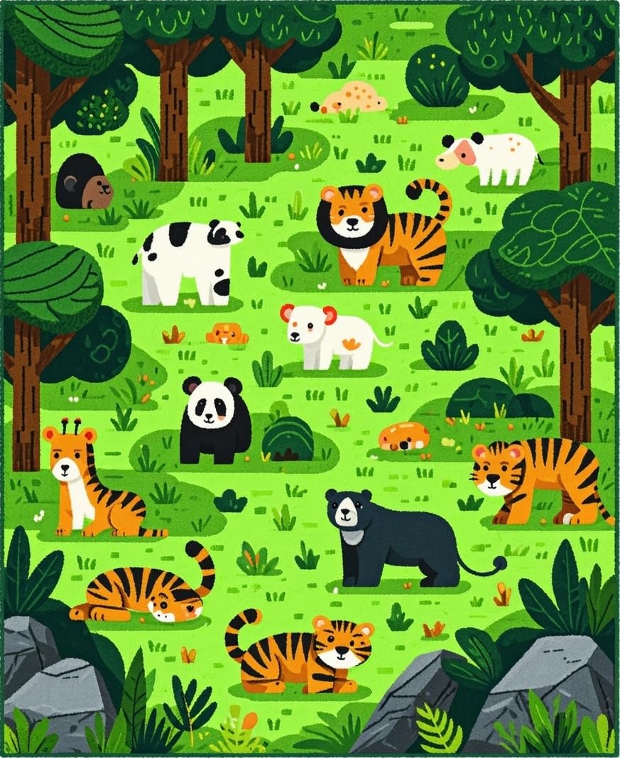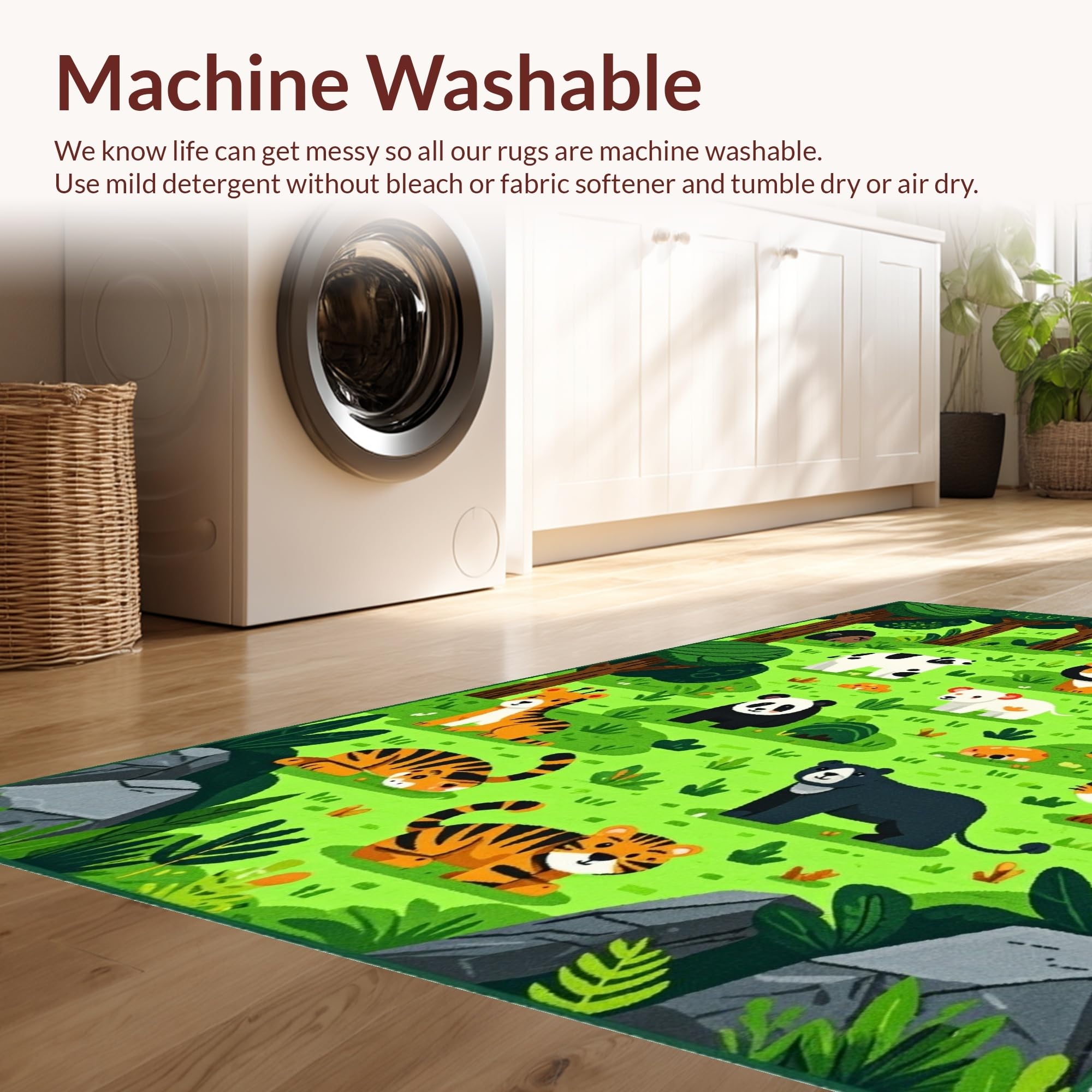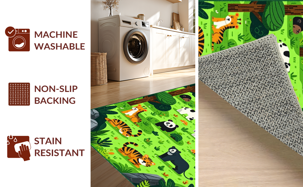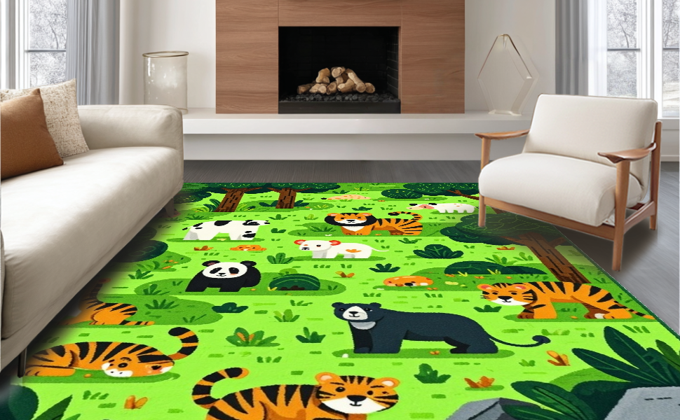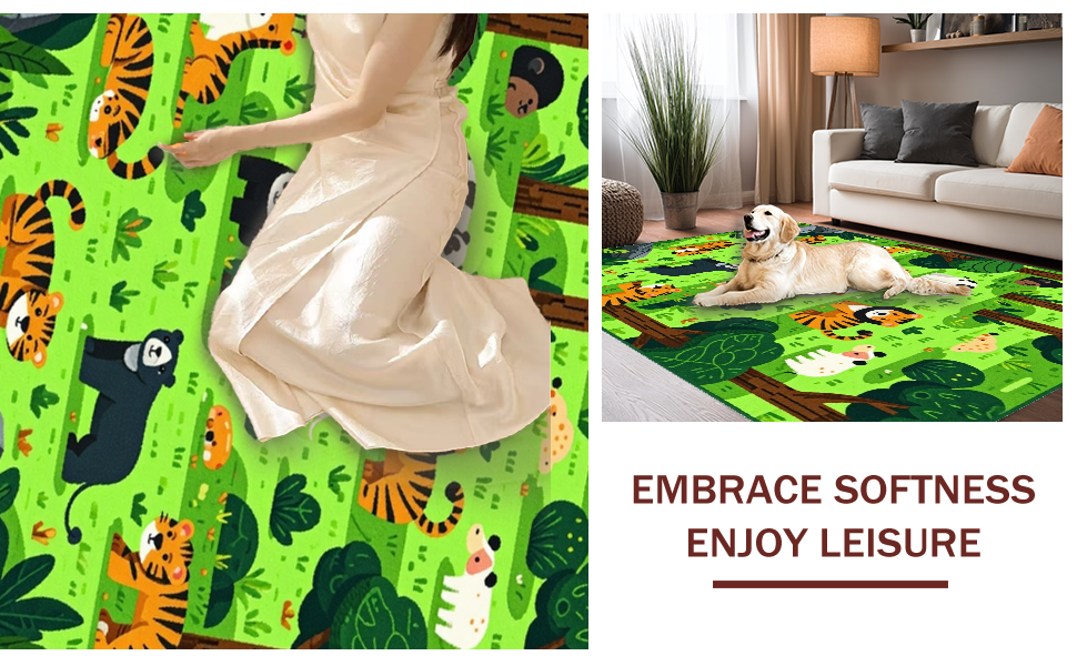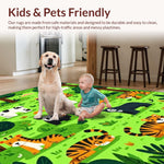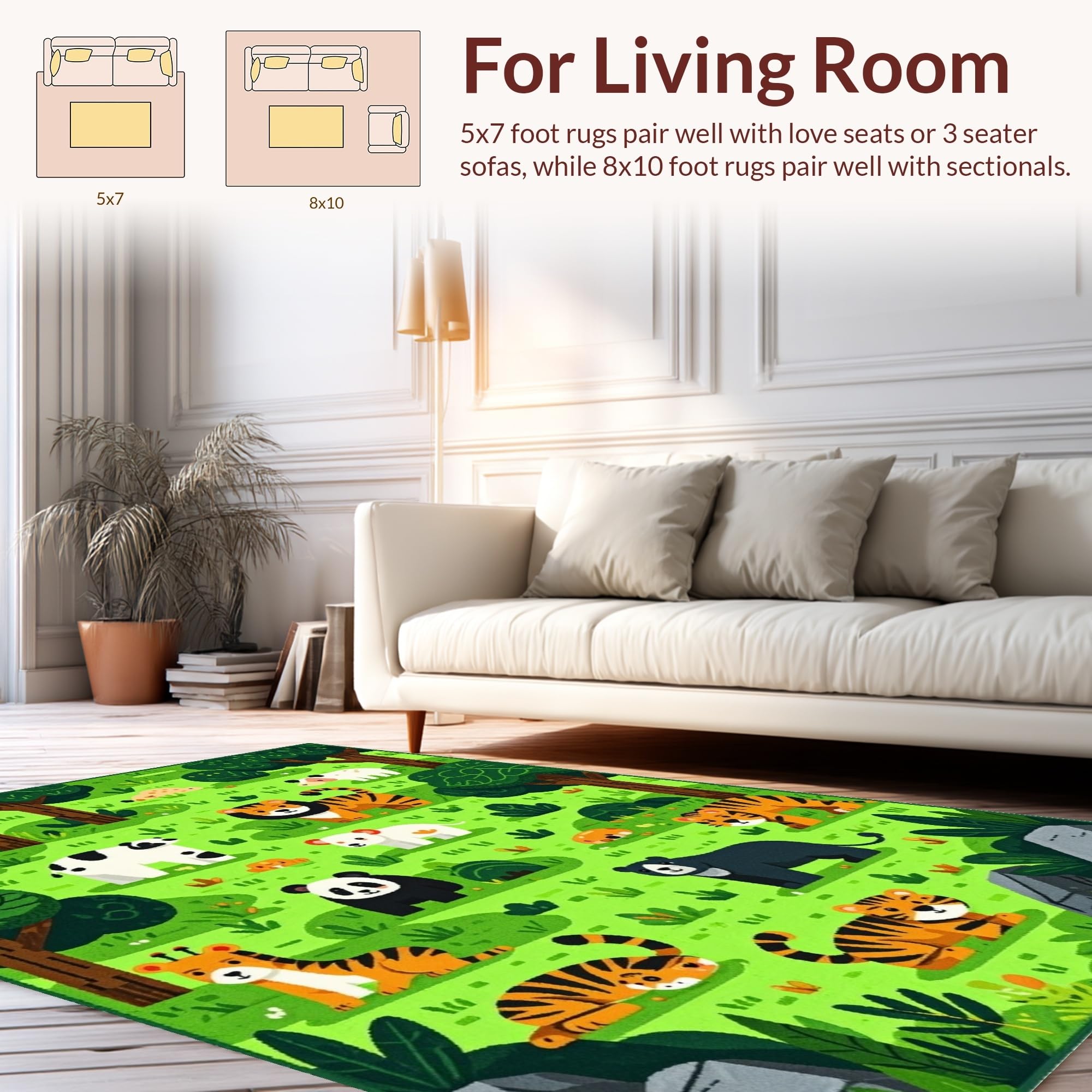 Ultra Soft Area Rug, Non Slip, Stain Resistant, Washable Area Rugs for Living Room, Bedroom, Playful Cartoon Safari Motif(Green) Overview:
