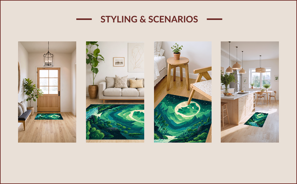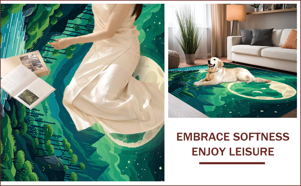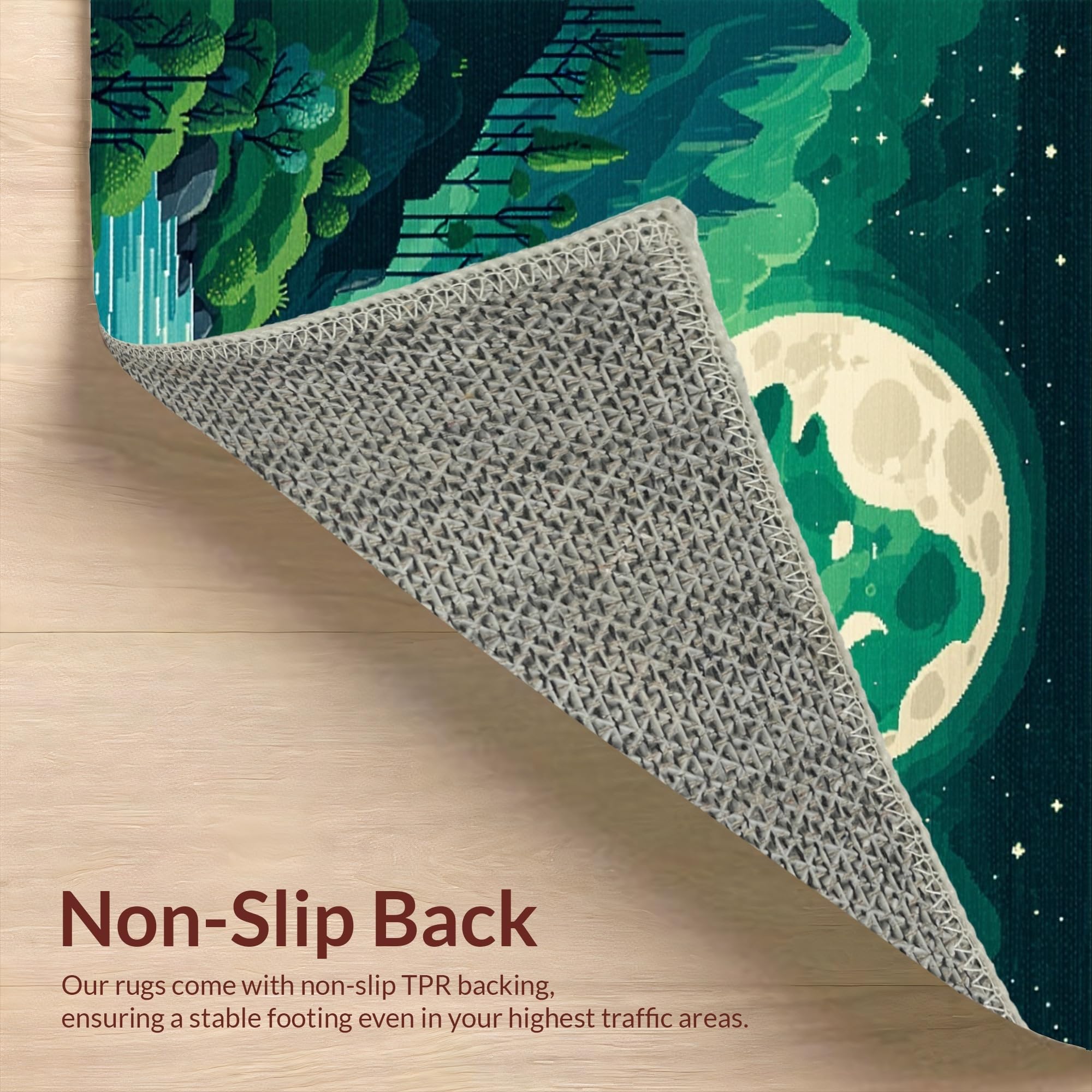 Ultra Soft Area Rug, Non Slip, Stain Resistant, Washable Area Rugs for Living Room, Bedroom, Playful Cartoonish Space Theme Decor(Green) Overview:
