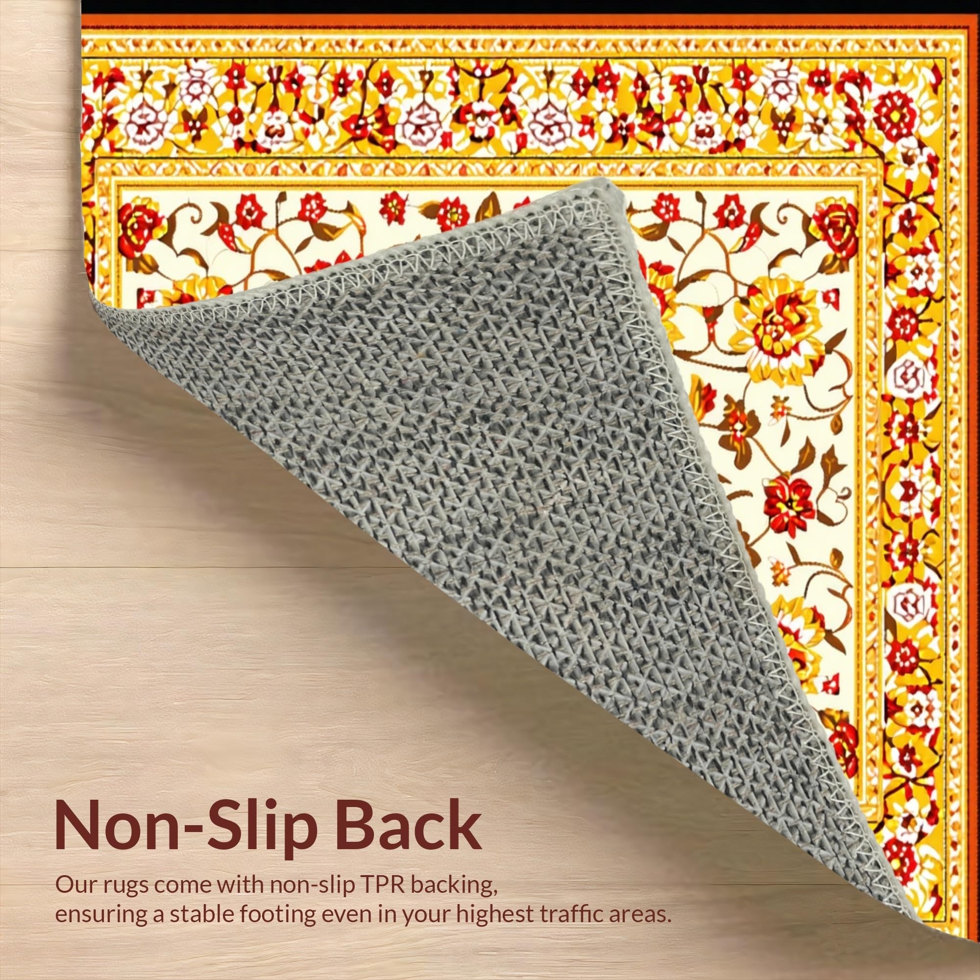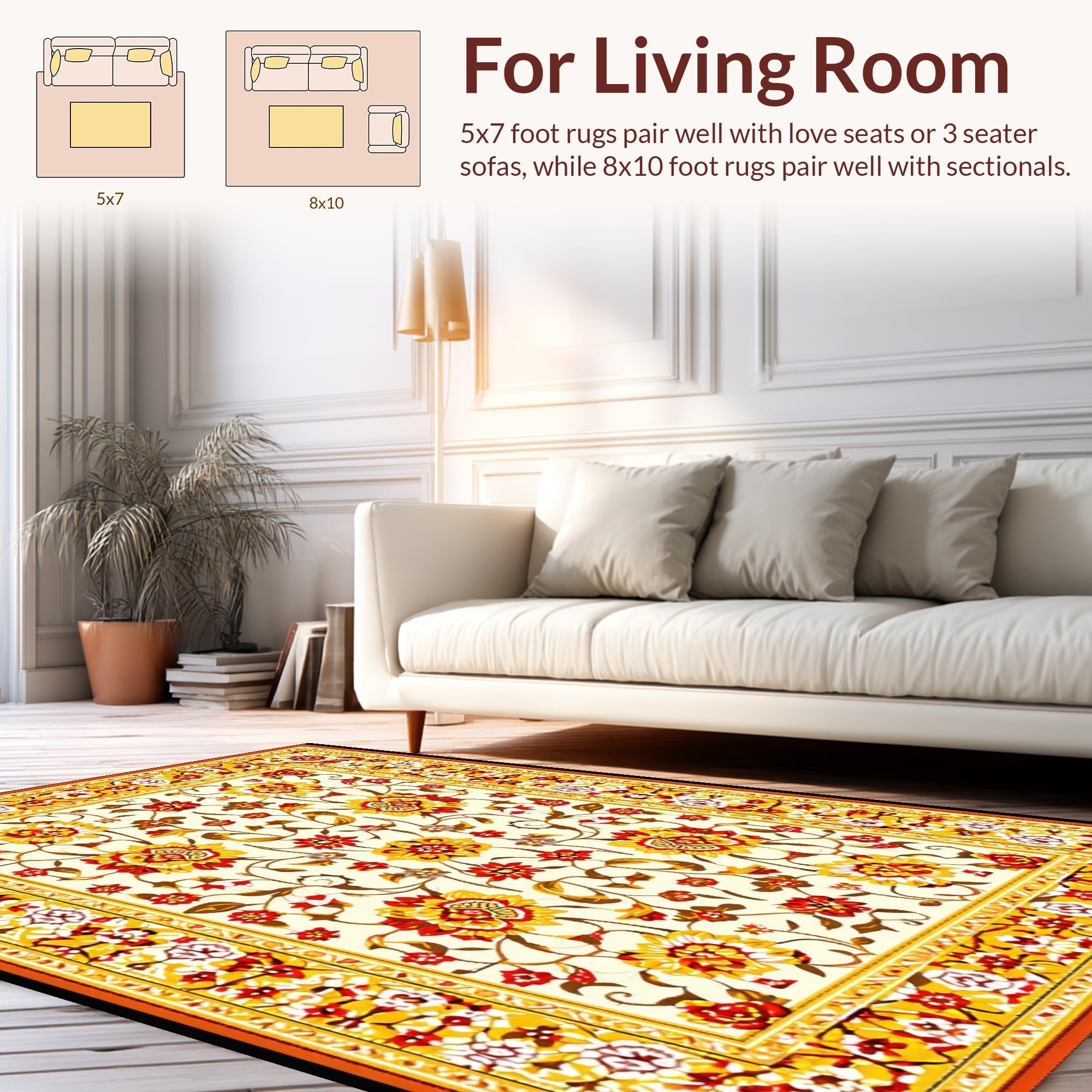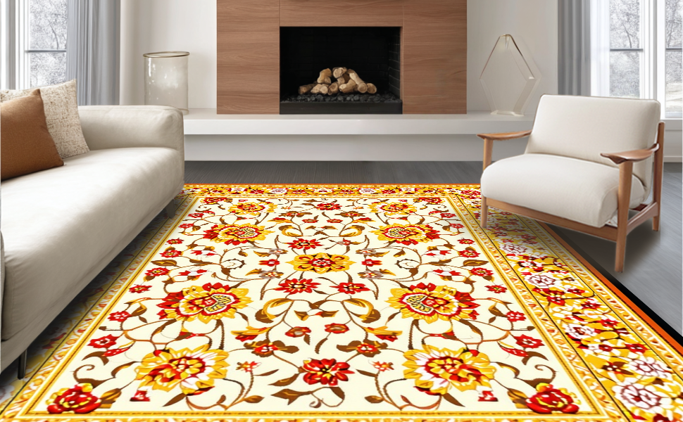 Ultra Soft Area Rug, Non Slip, Stain Resistant, Washable Area Rugs for Living Room, Bedroom, Playful Cheerful Blossom Aesthetic(Ivory) Overview: