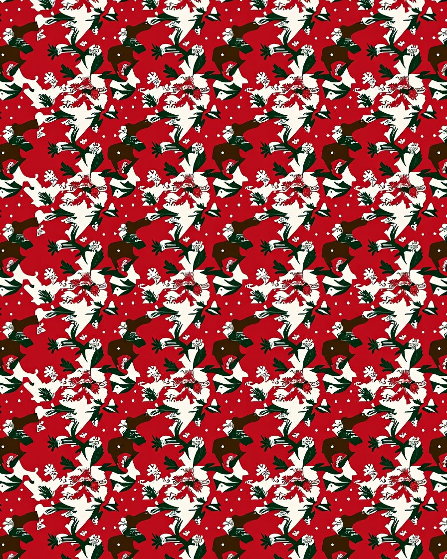 Playful Christmas Reindeer Forest Interlocking Design(Red)
