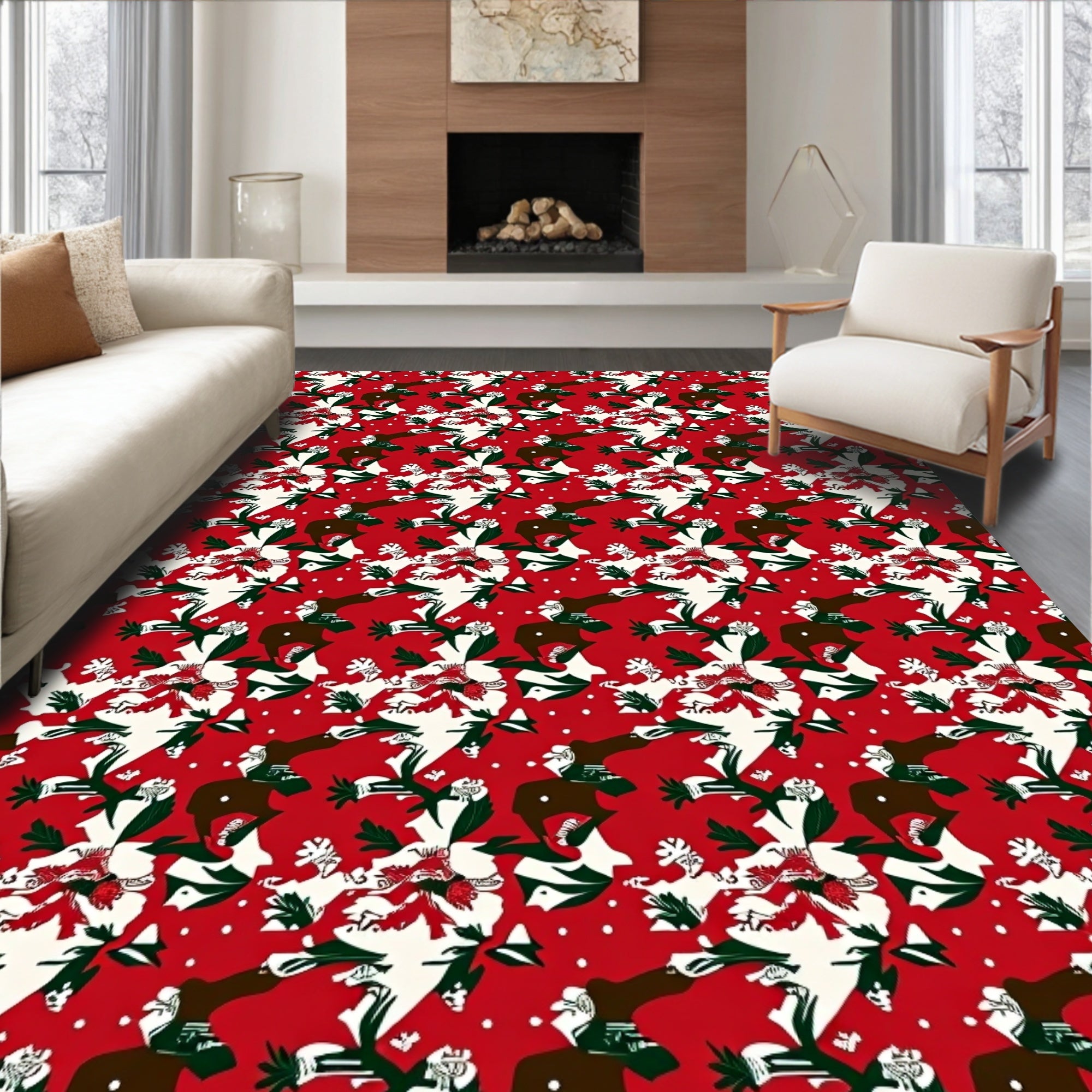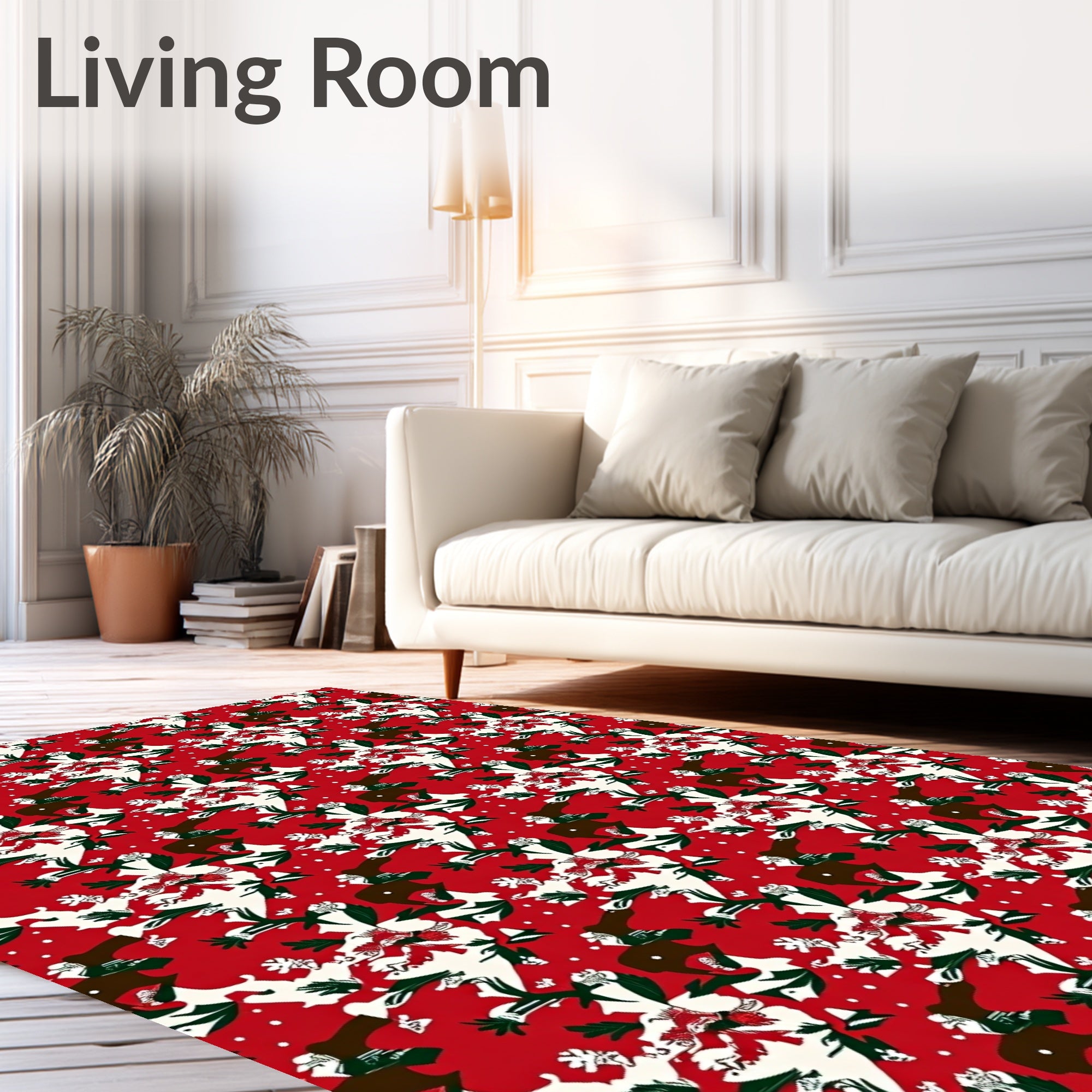 Ultra Soft Area Rug, Non Slip, Stain Resistant, Washable Area Rugs for Living Room, Bedroom, Playful Christmas Reindeer Forest Interlocking Design(Red) Overview: