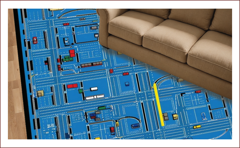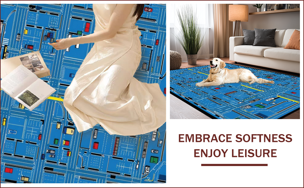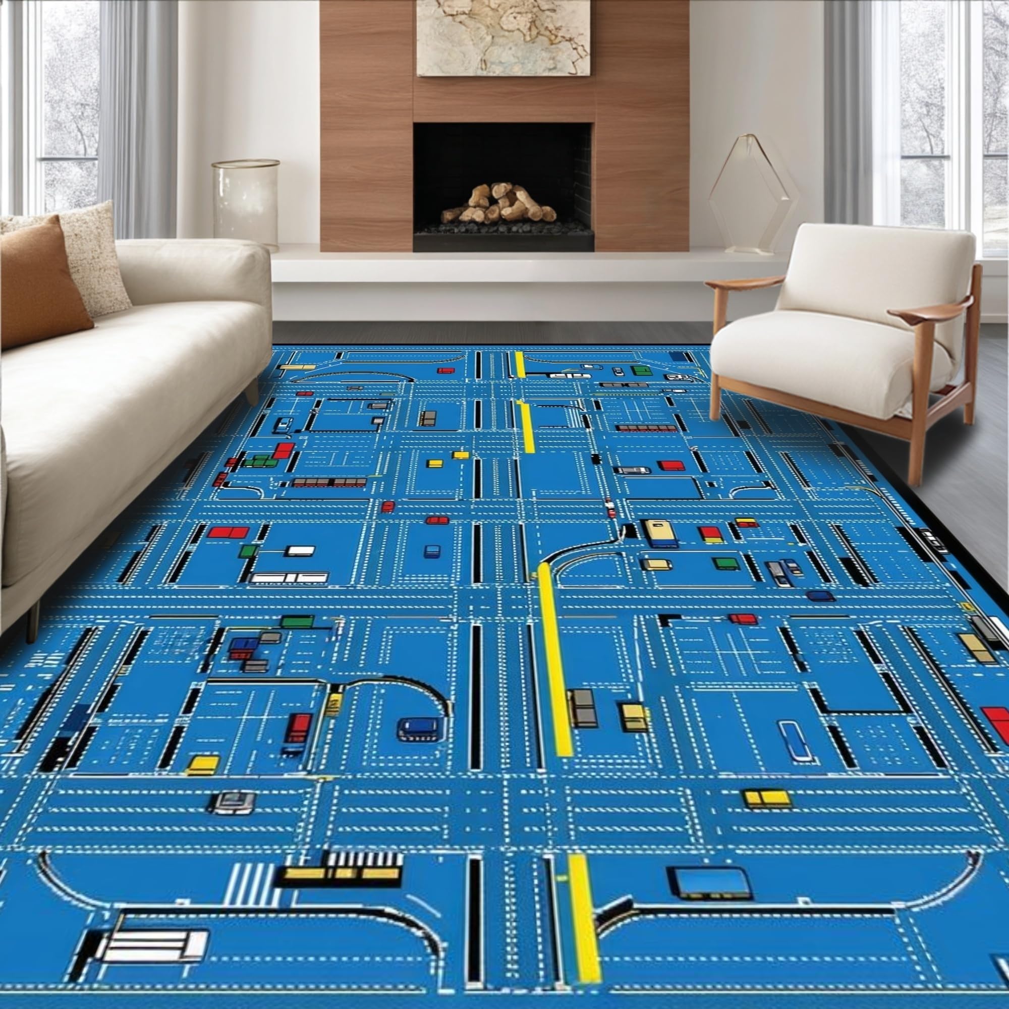 Ultra Soft Area Rug, Non Slip, Stain Resistant, Washable Area Rugs for Living Room, Bedroom, Playful City Map Aesthetic(Blue) Overview: