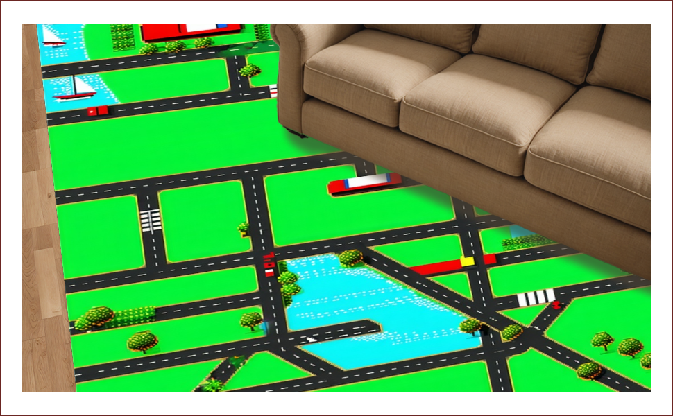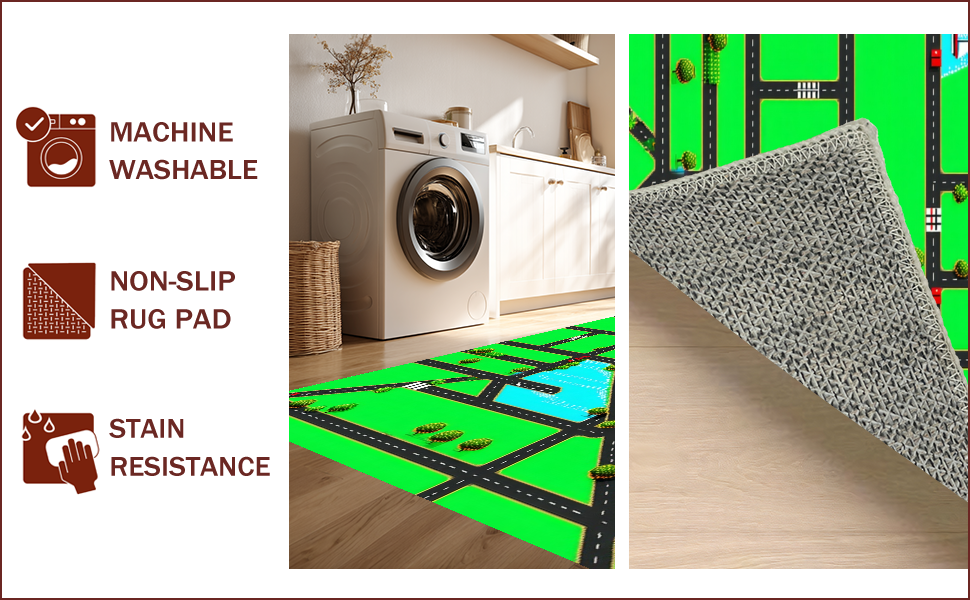 Ultra Soft Area Rug, Non Slip, Stain Resistant, Washable Area Rugs for Living Room, Bedroom, Playful Cityscape Road Map(Green) Overview: