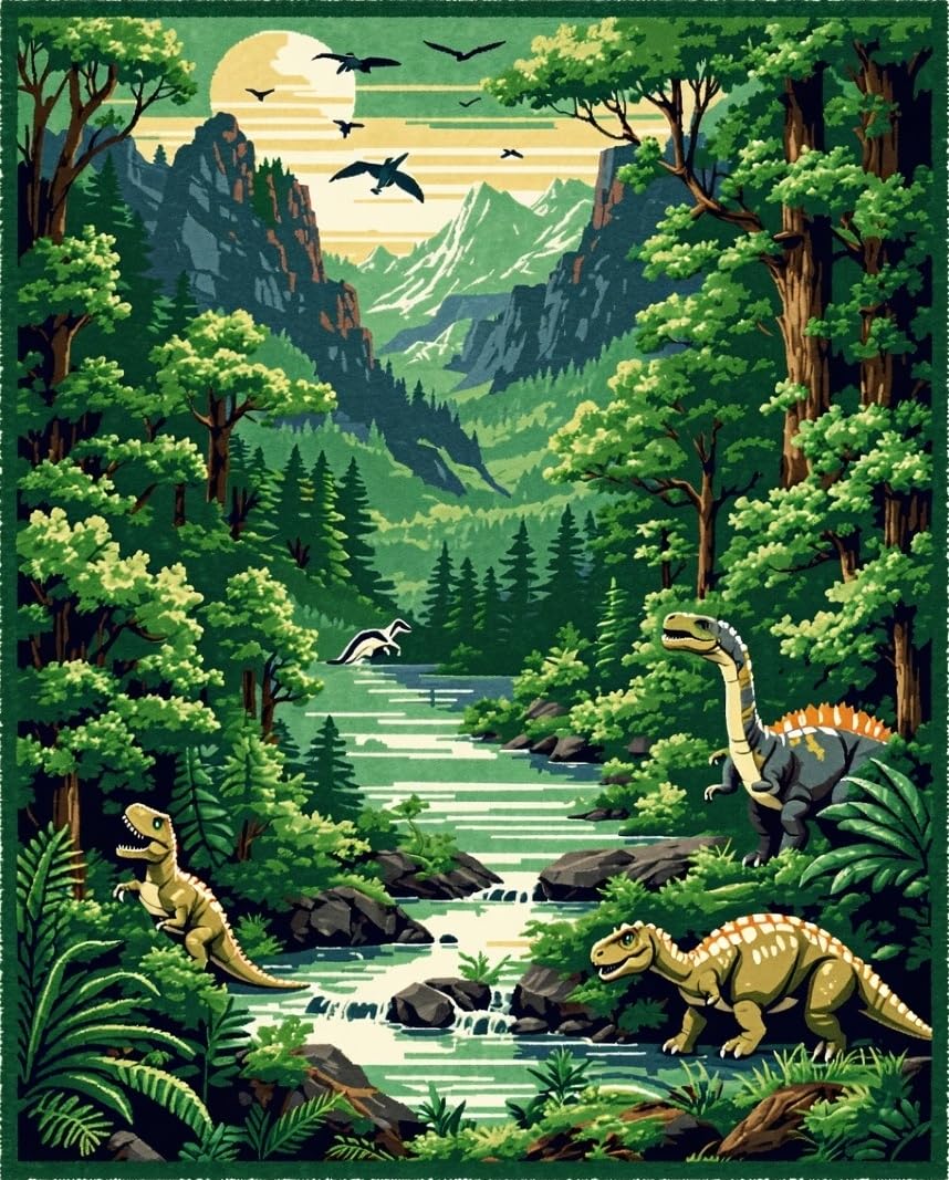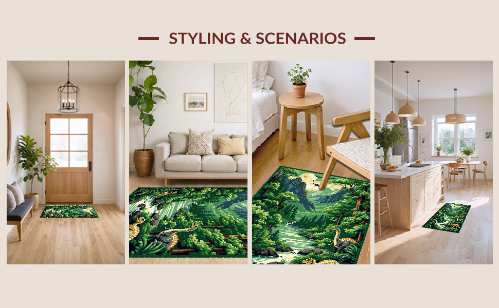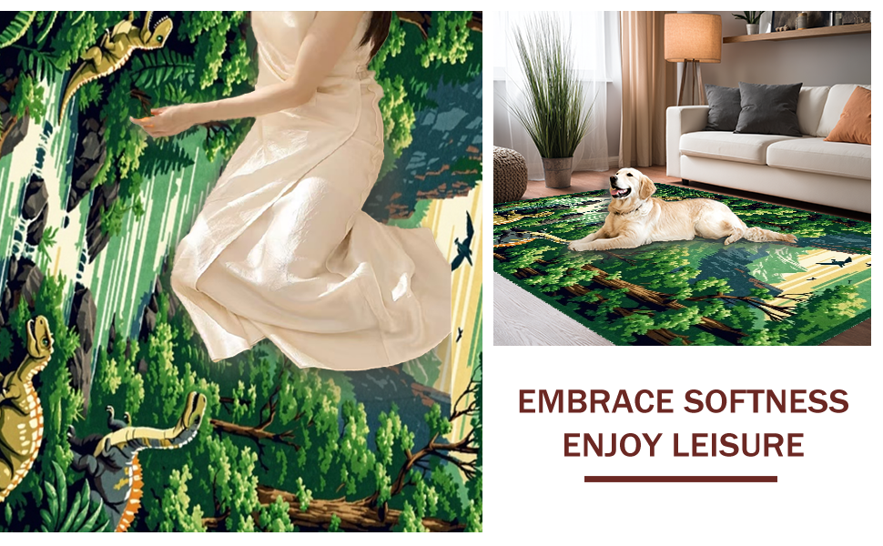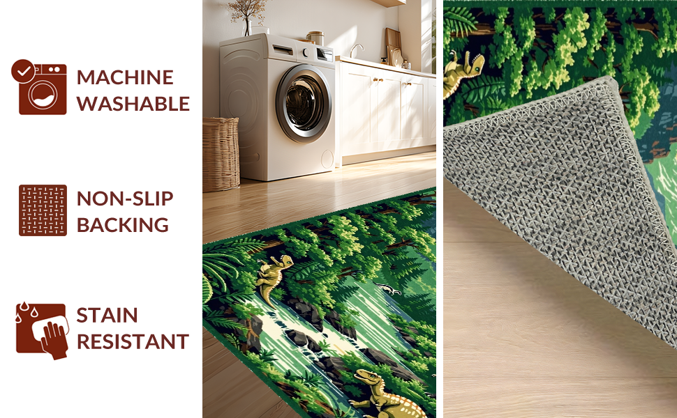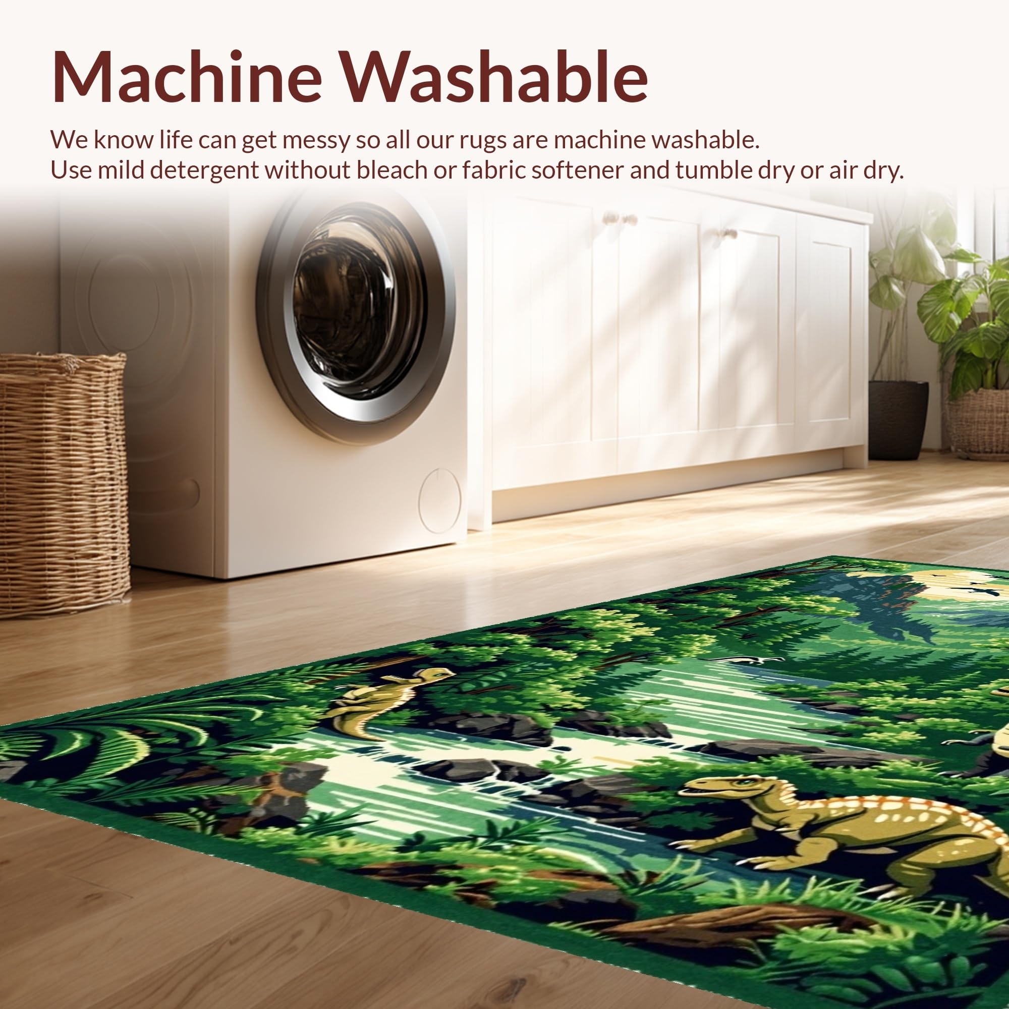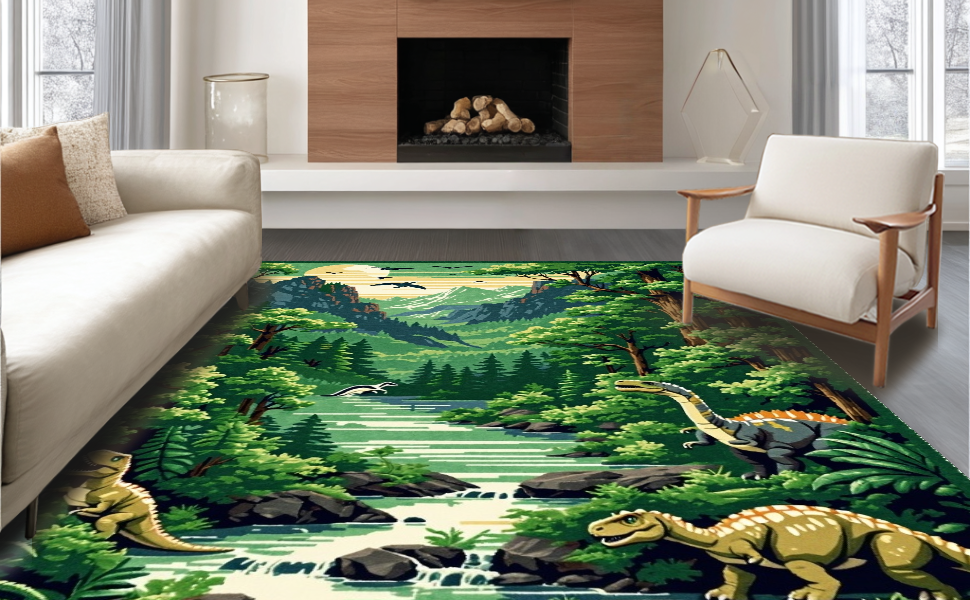 Ultra Soft Area Rug, Non Slip, Stain Resistant, Washable Area Rugs for Living Room, Bedroom, Playful Colorful Dinosaur Landscape(Green) Overview: