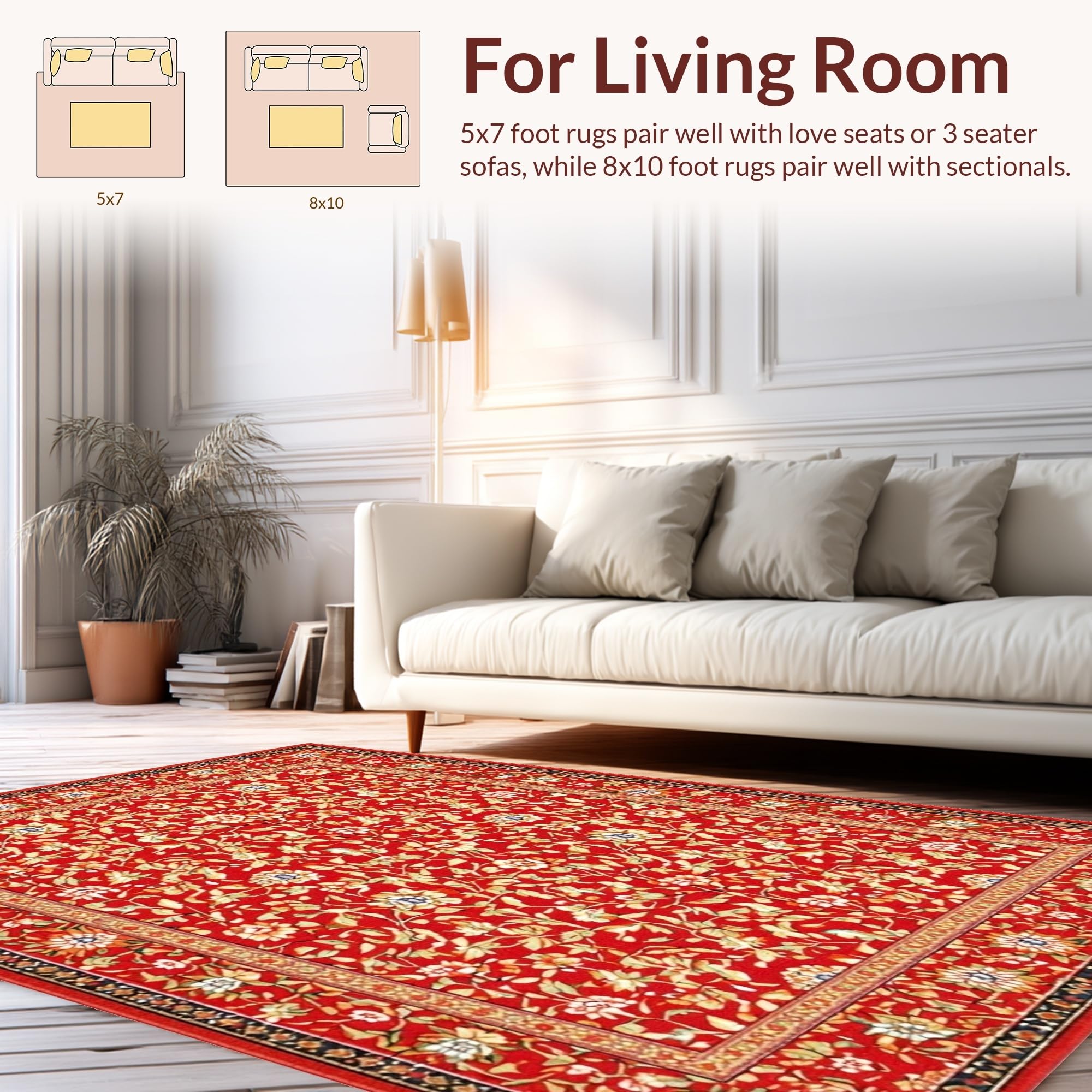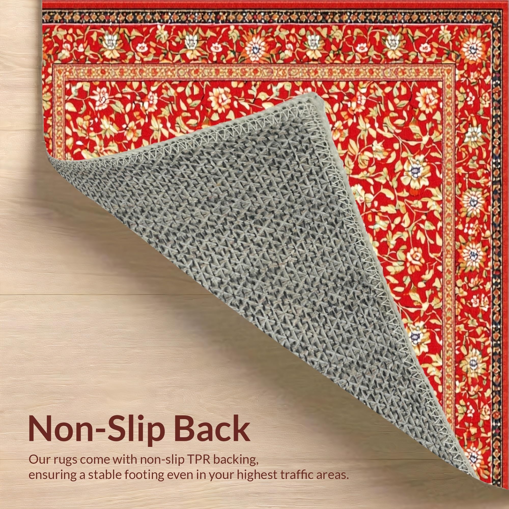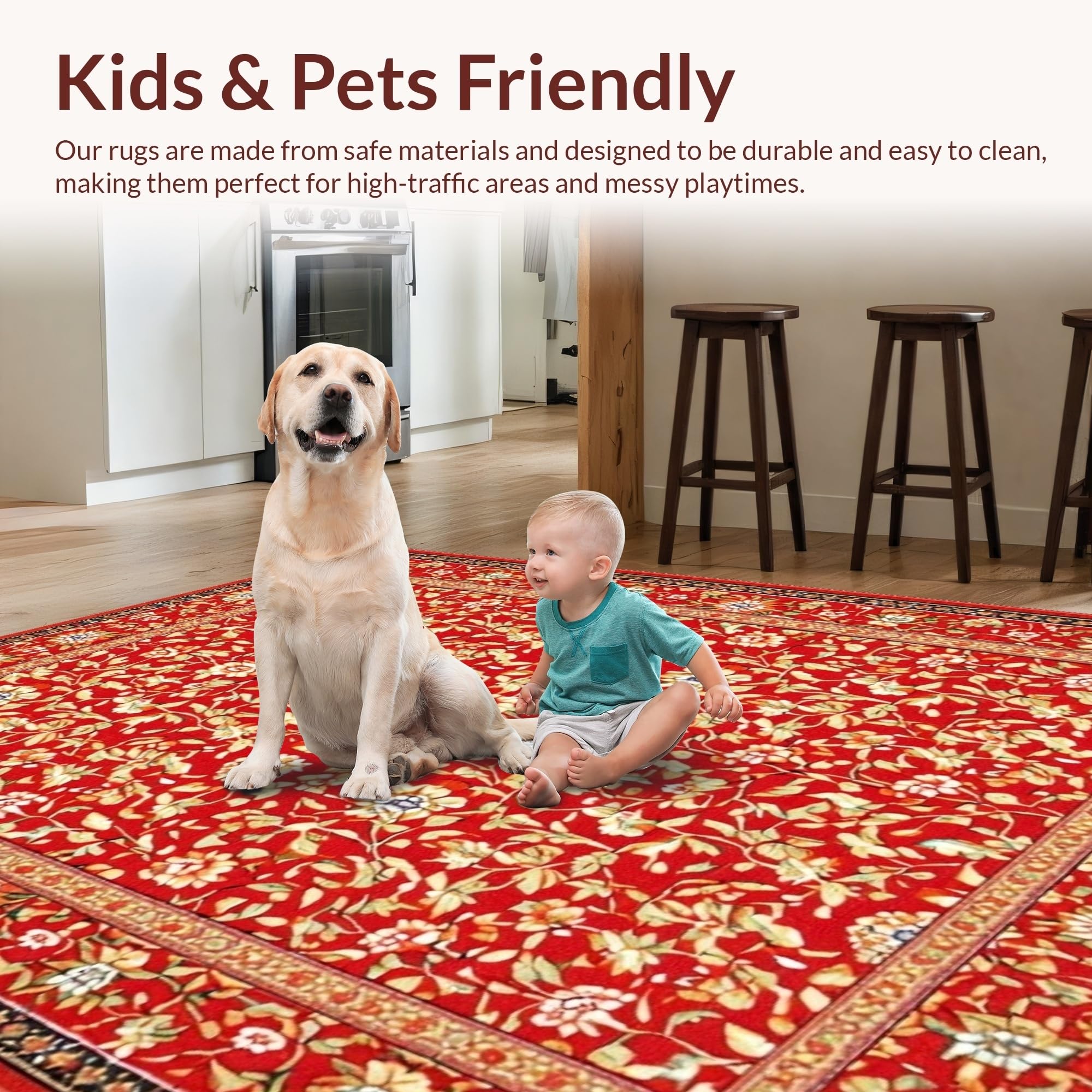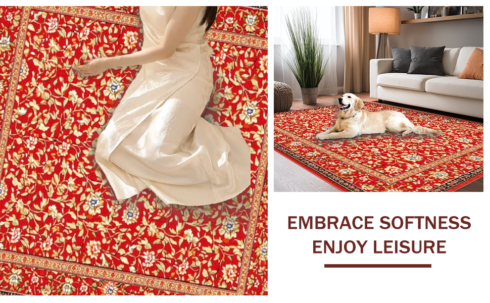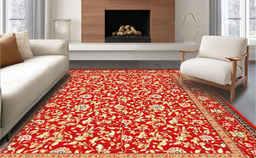 Ultra Soft Area Rug, Non Slip, Stain Resistant, Washable Area Rugs for Living Room, Bedroom, Playful Colorful Floral Design(Red) Overview: