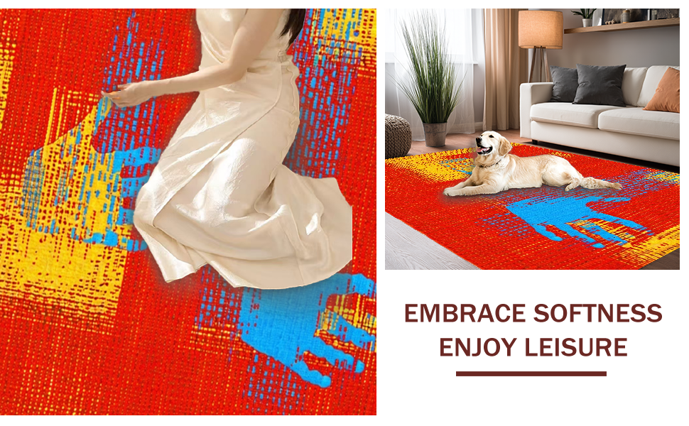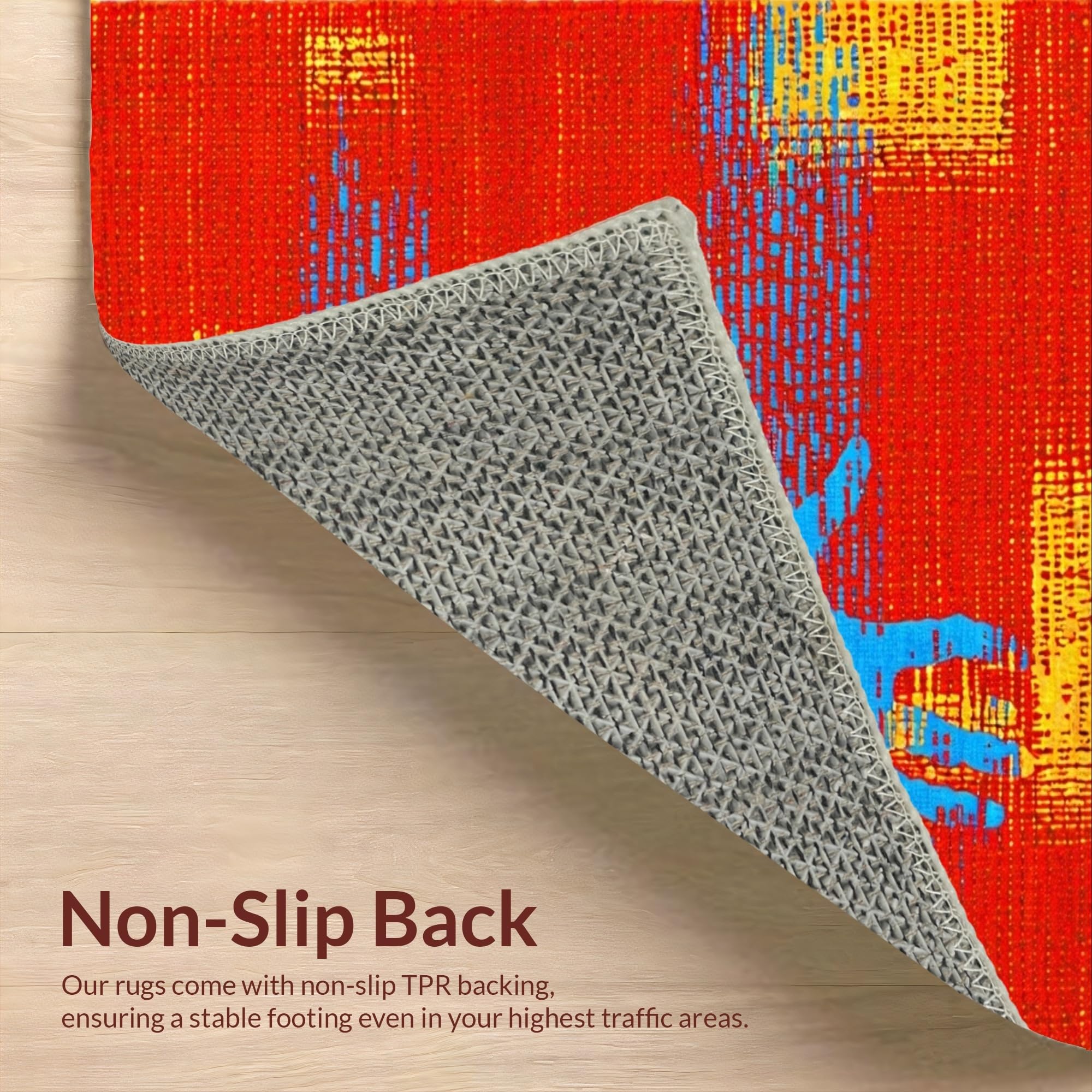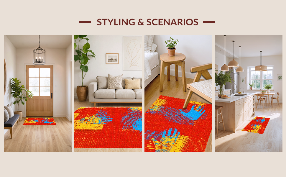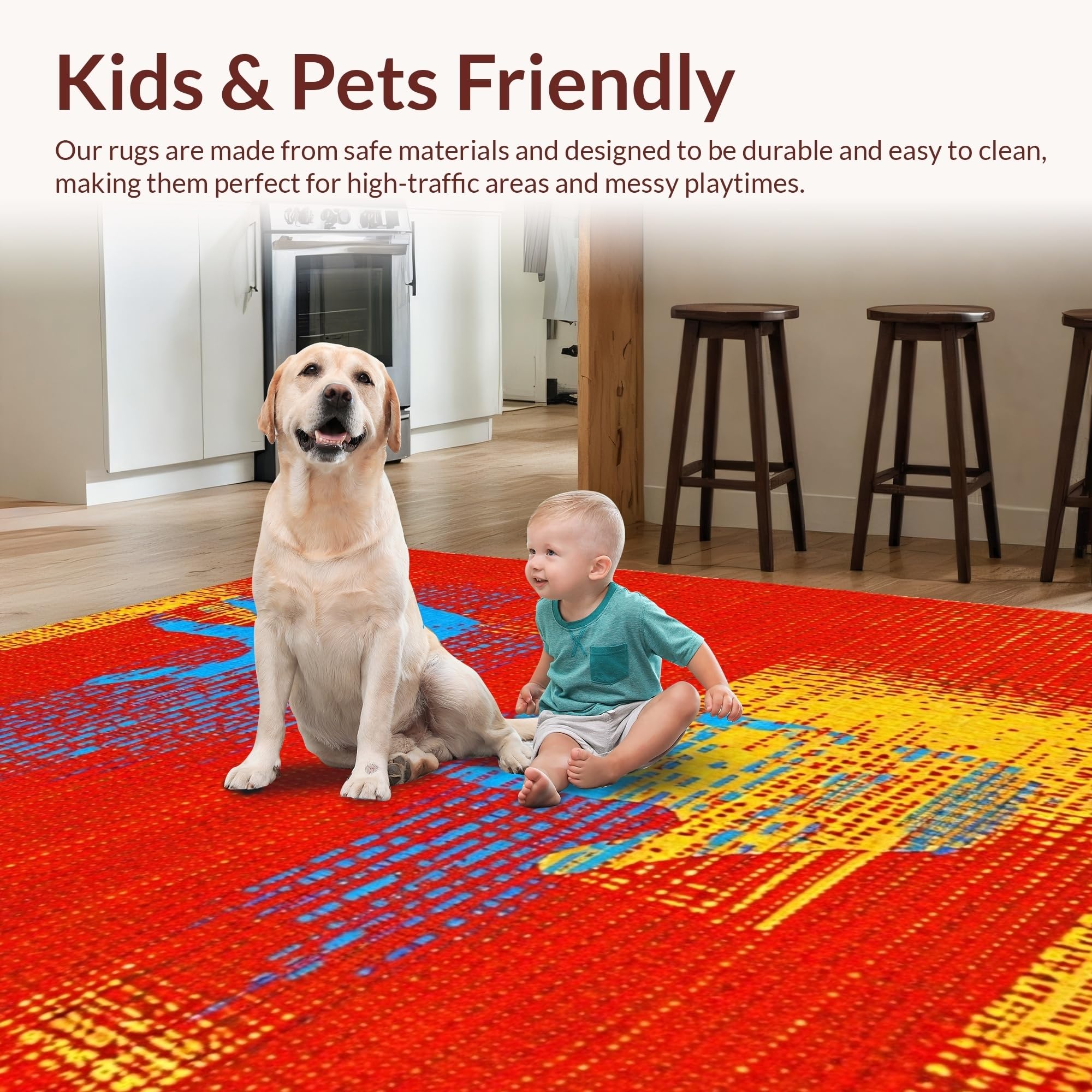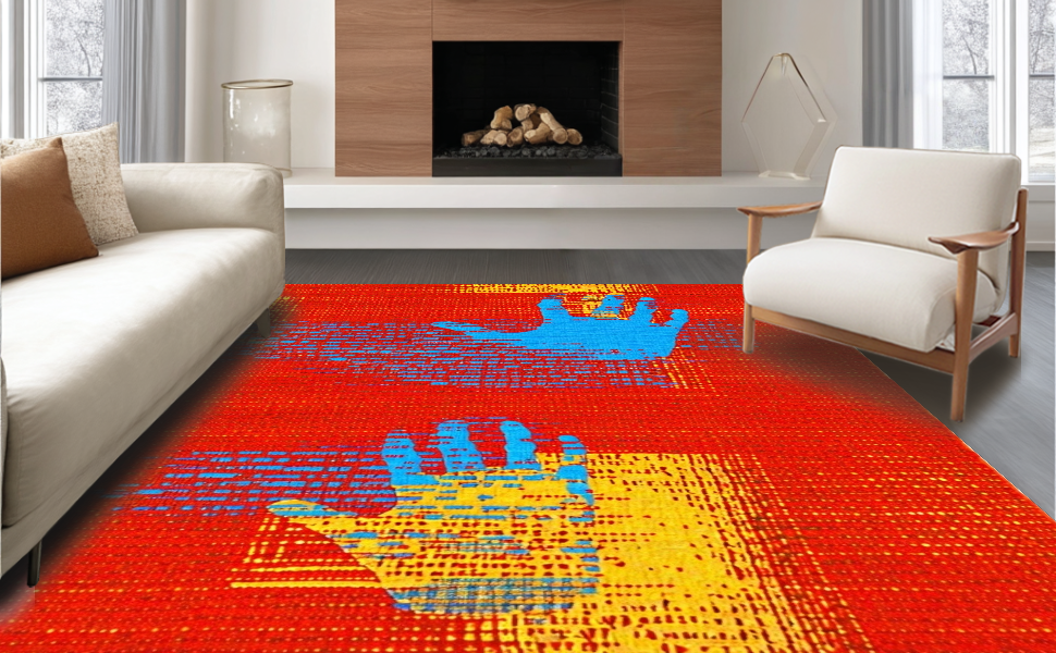 Ultra Soft Area Rug, Non Slip, Stain Resistant, Washable Area Rugs for Living Room, Bedroom, Playful Colorful Handprint Aesthetic(Red) Overview: