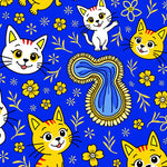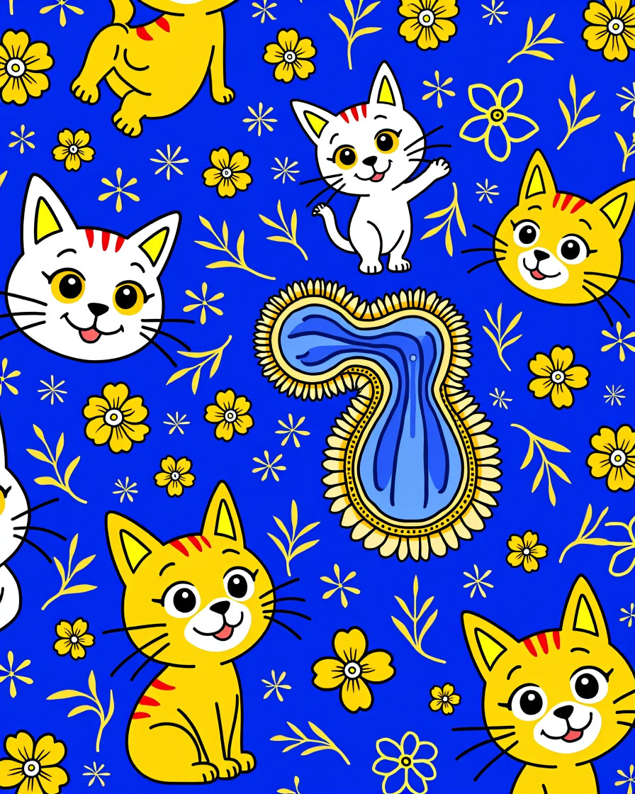 Playful Day of Remembrance Kitty with Dazzling Floral Filigree(Blue)