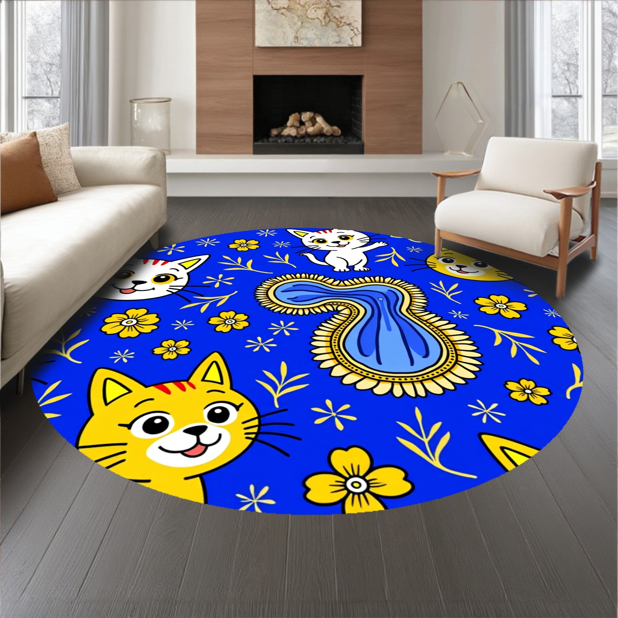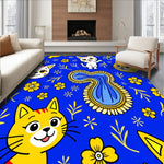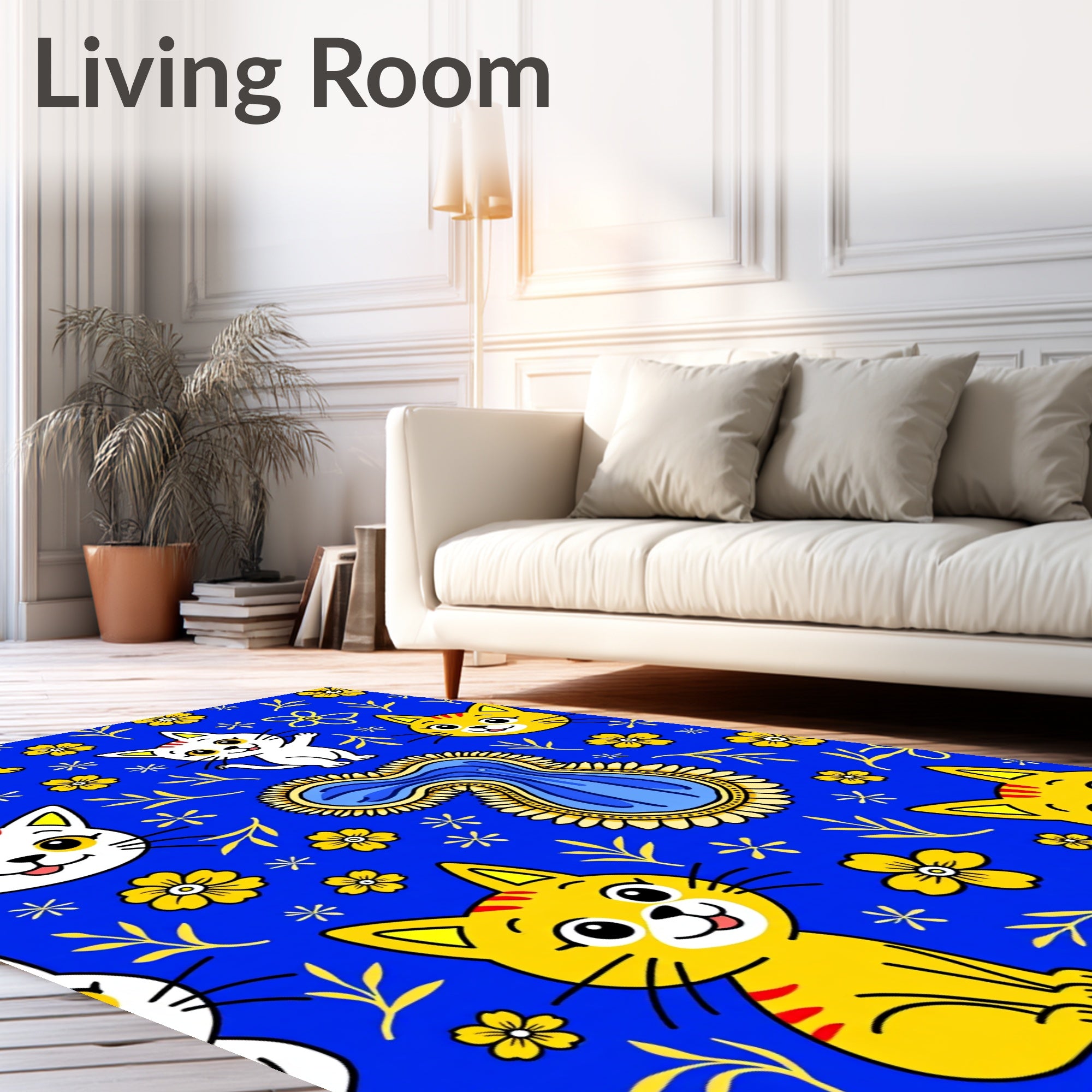 Ultra Soft Area Rug, Non Slip, Stain Resistant, Washable Area Rugs for Living Room, Bedroom, Playful Day of Remembrance Kitty with Dazzling Floral Filigree(Blue) Overview:
