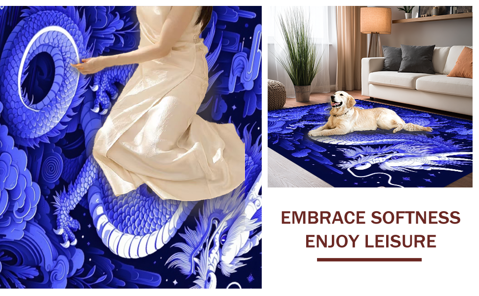 Ultra Soft Area Rug, Non Slip, Stain Resistant, Washable Area Rugs for Living Room, Bedroom, Playful Dragon Fantasy Expression(Blue) Overview: