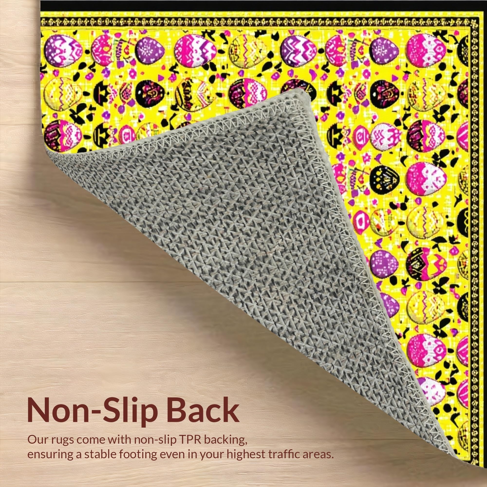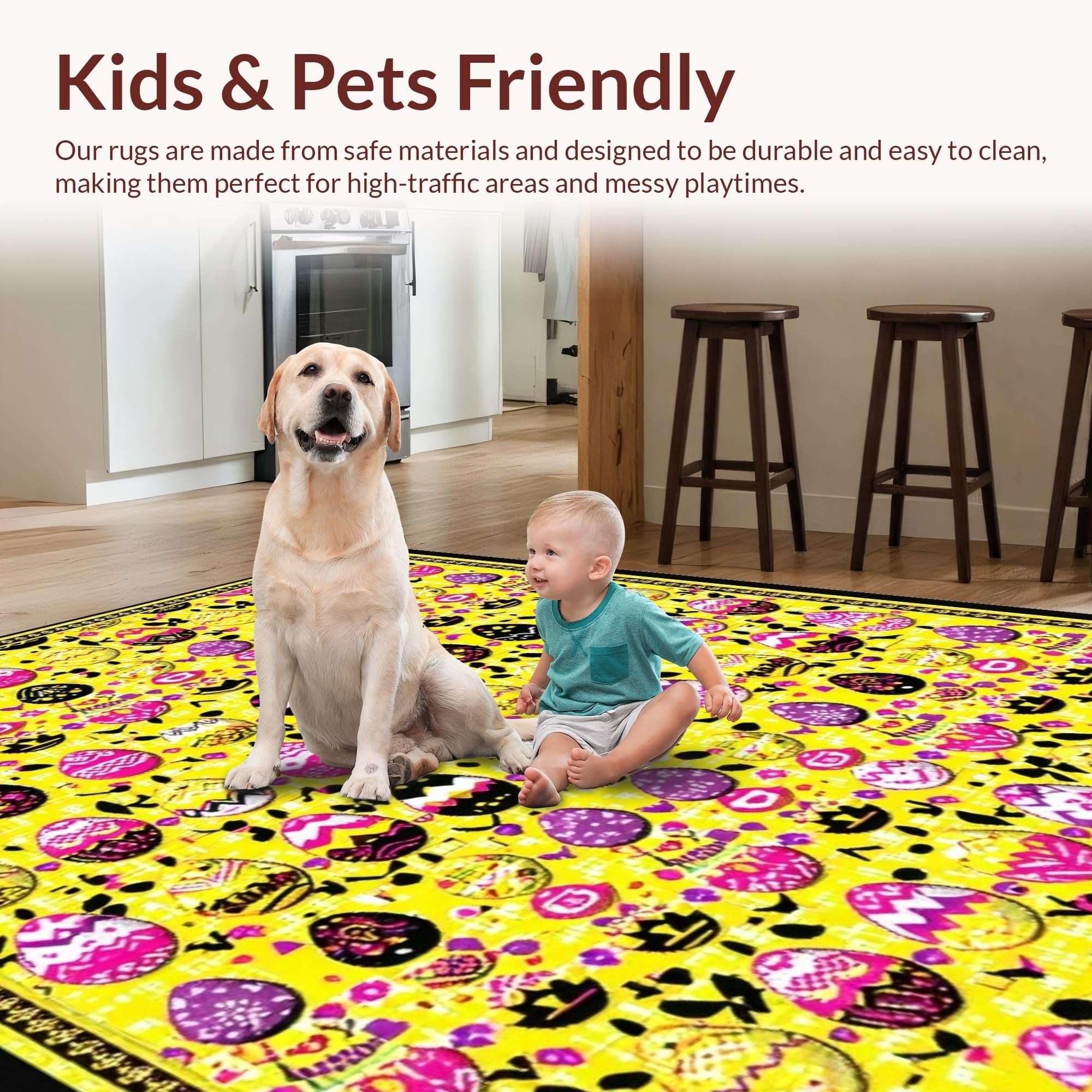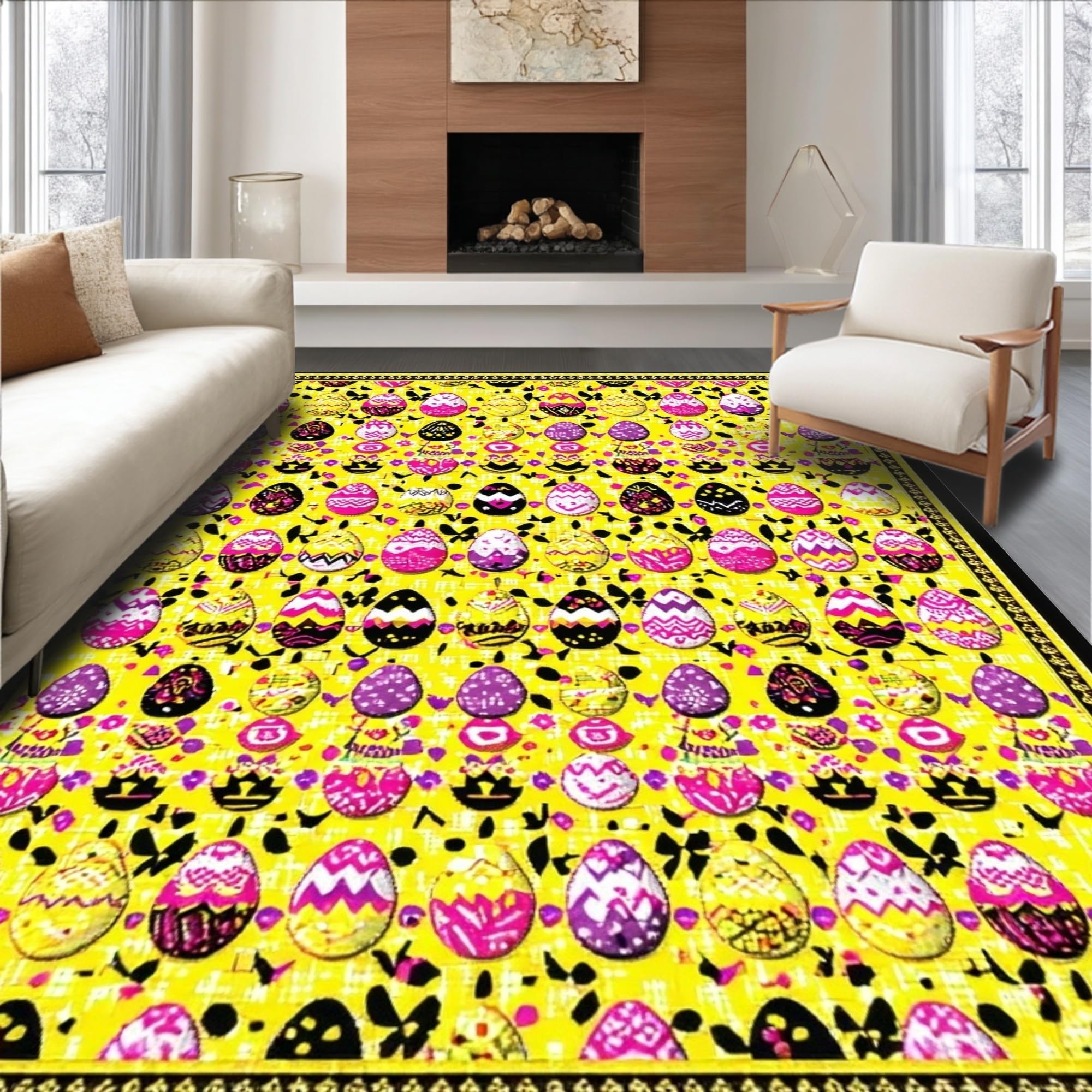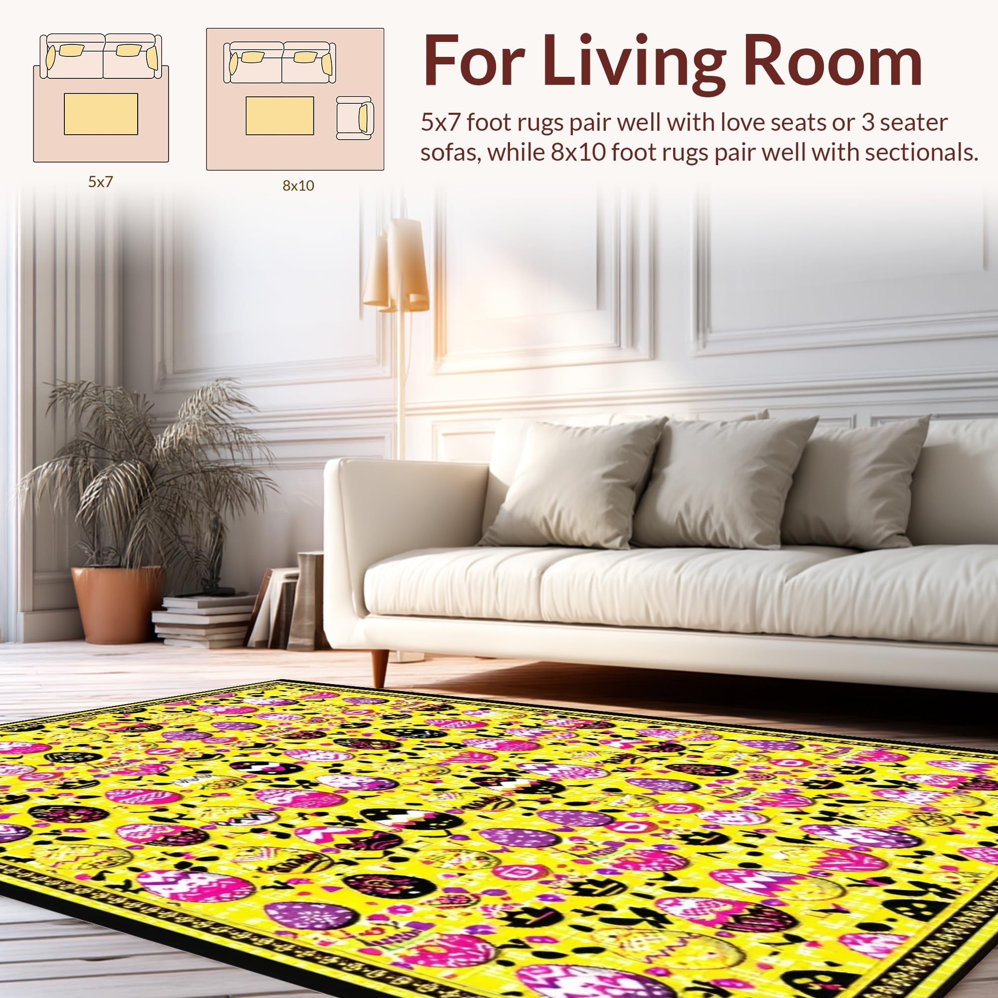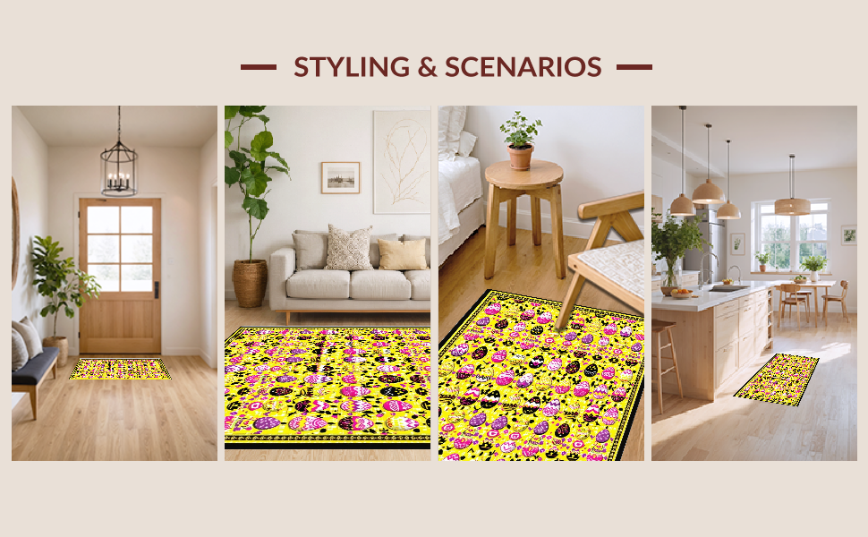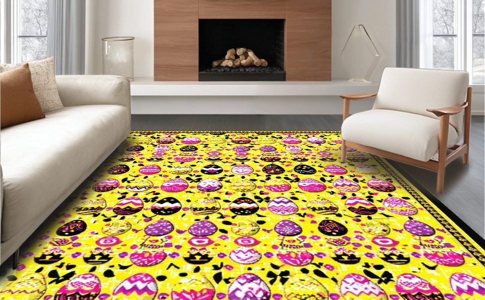 Ultra Soft Area Rug, Non Slip, Stain Resistant, Washable Area Rugs for Living Room, Bedroom, Playful Earthy Spring Design(Yellow) Overview: