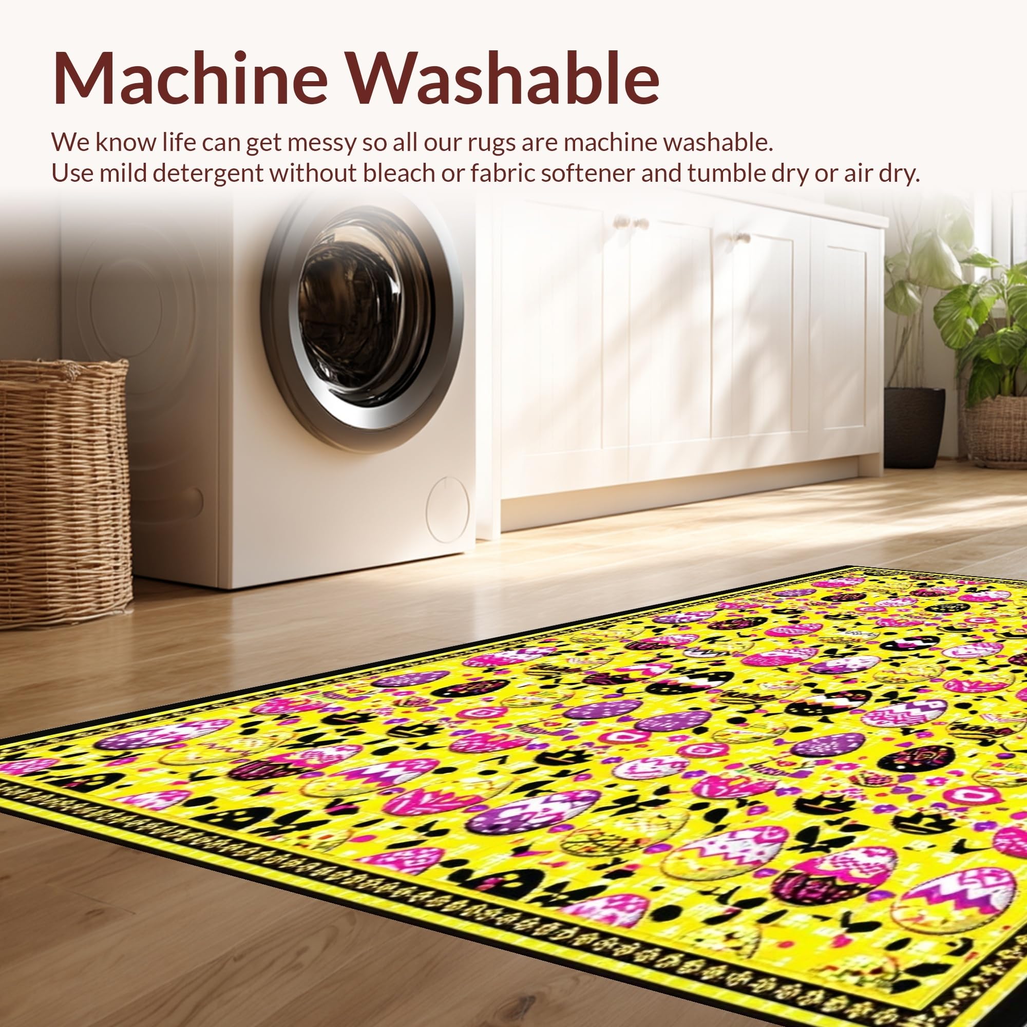 - Machine Washable: Our rugs can be easily thrown in the wash machine.