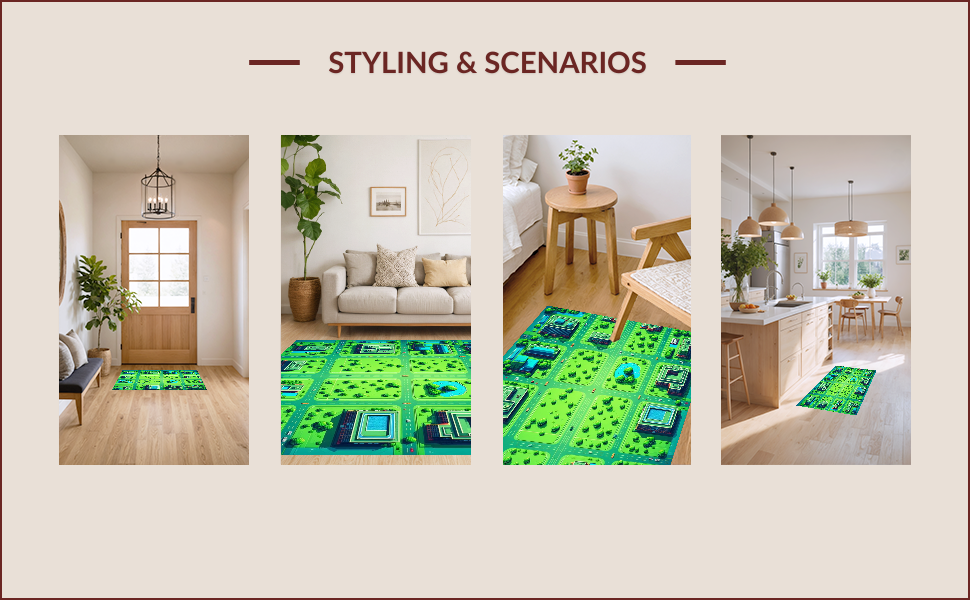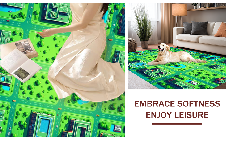 Ultra Soft Area Rug, Non Slip, Stain Resistant, Washable Area Rugs for Living Room, Bedroom, Playful Educational Urban Landscape(Green) Overview: