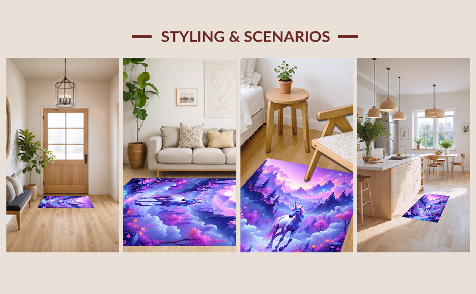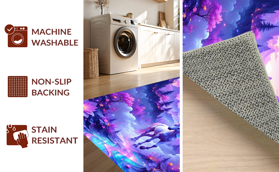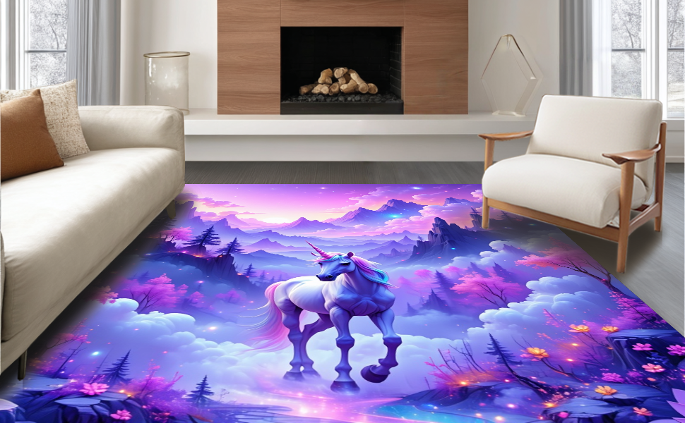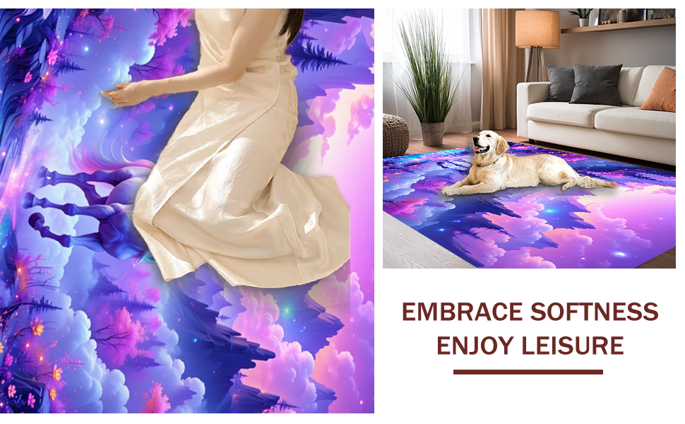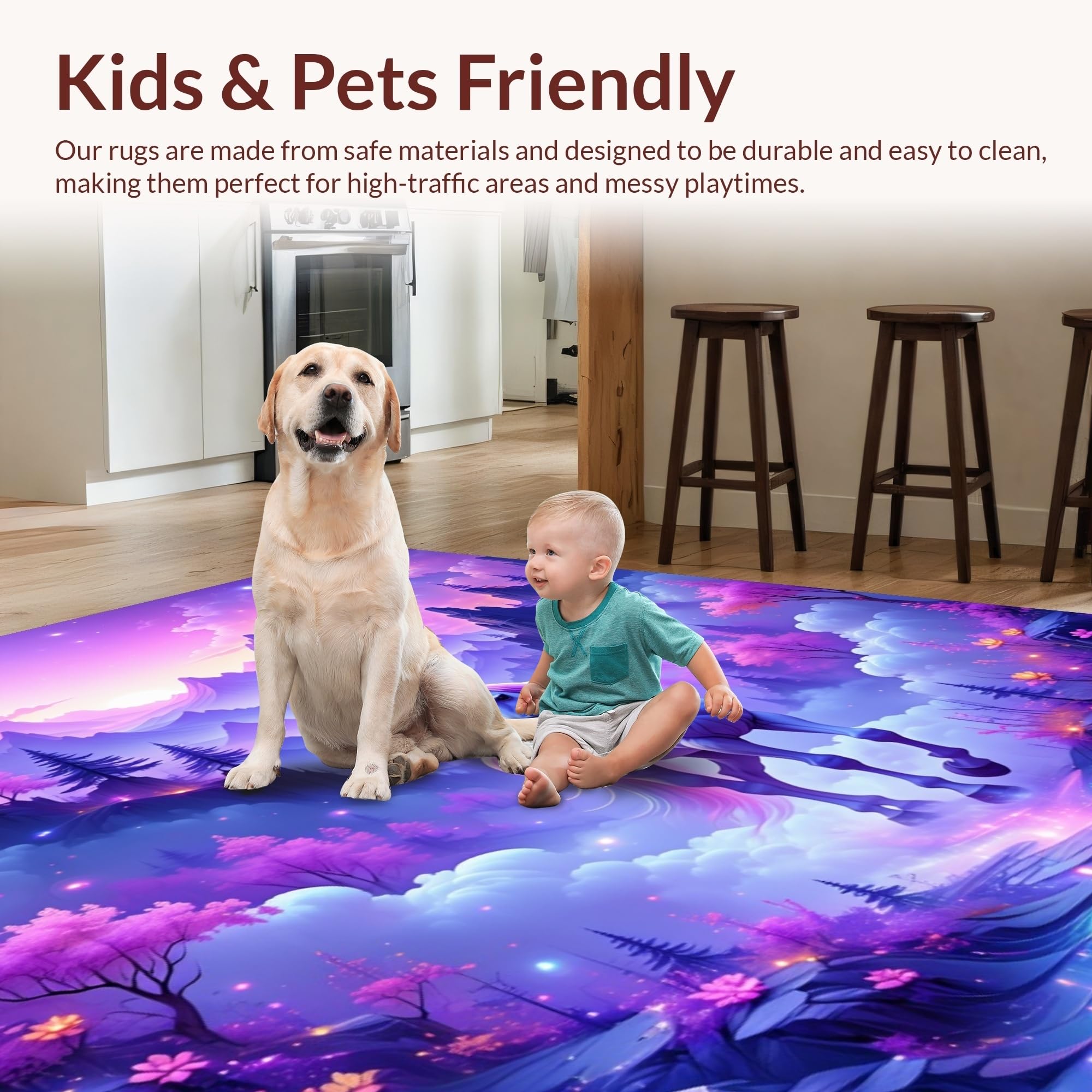 Ultra Soft Area Rug, Non Slip, Stain Resistant, Washable Area Rugs for Living Room, Bedroom, Playful Ethereal Creature Aesthetic(Purple) Overview: