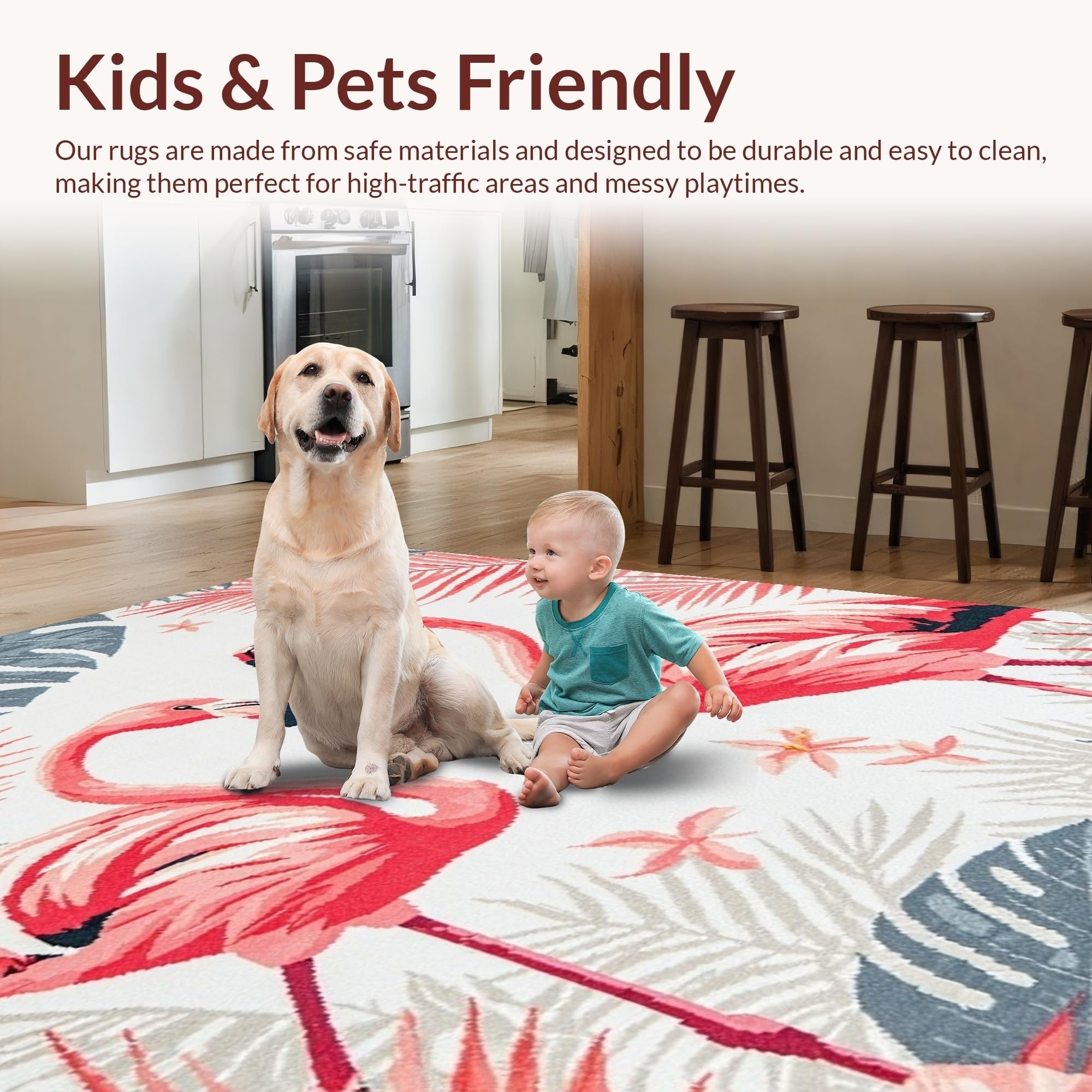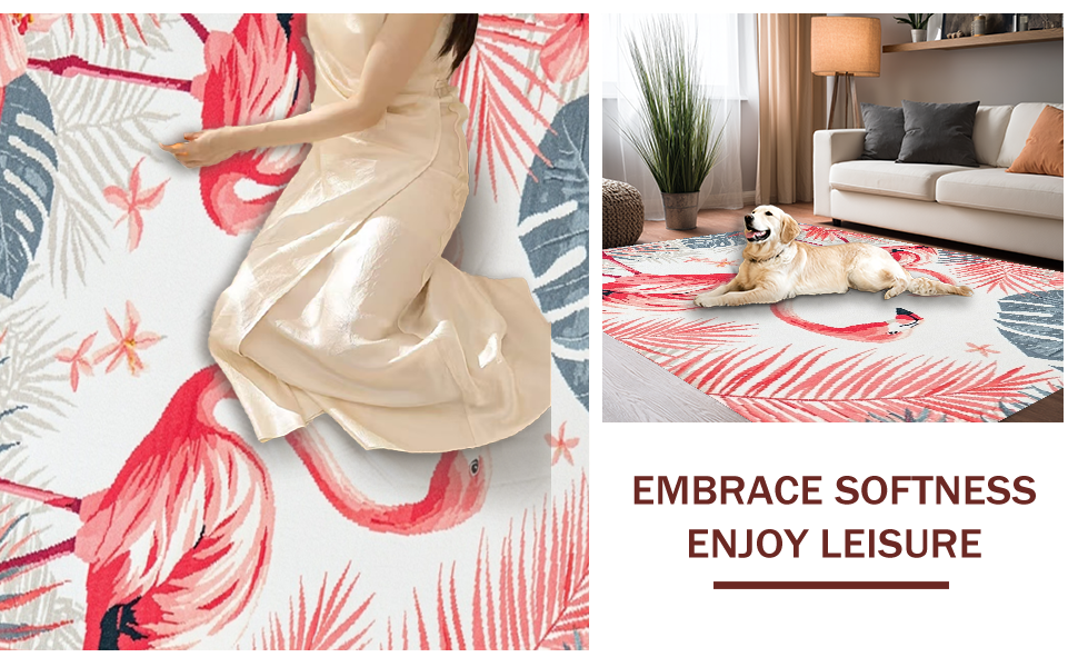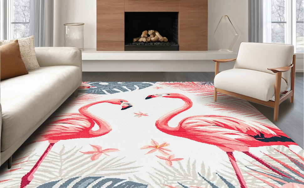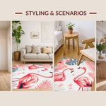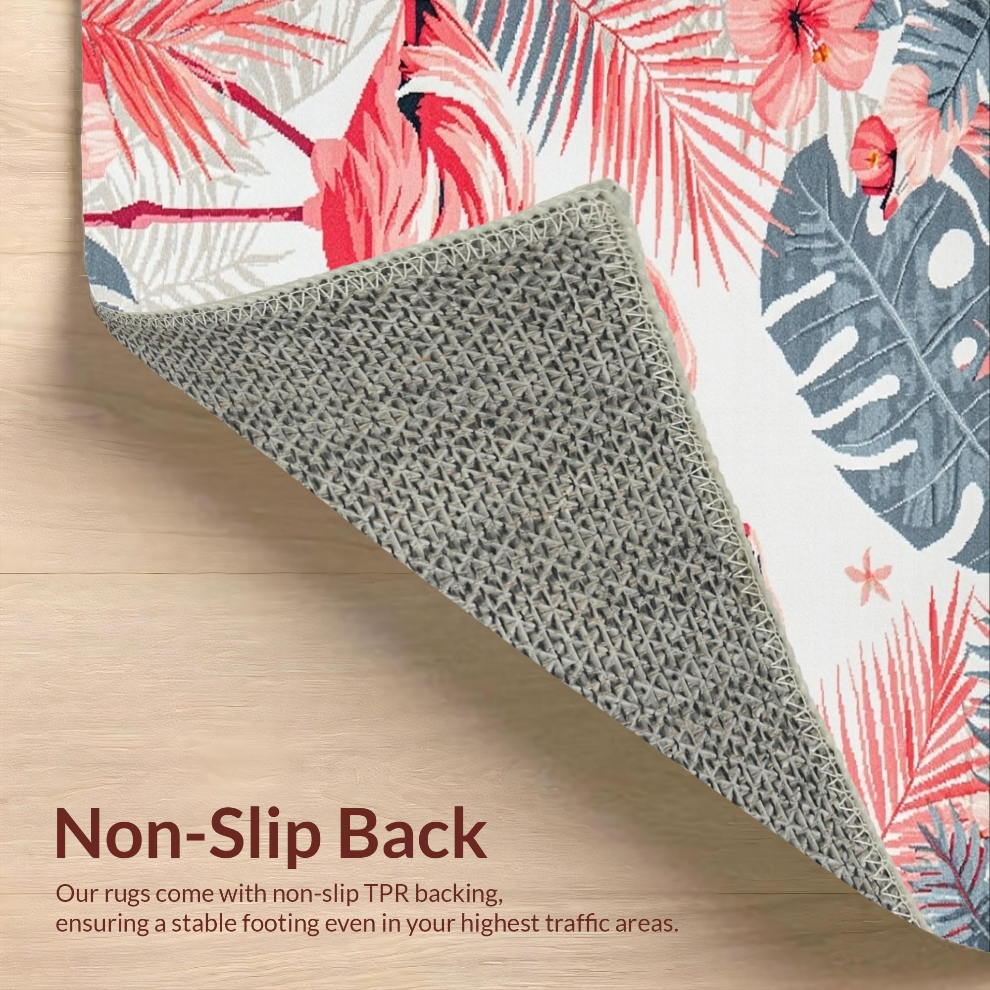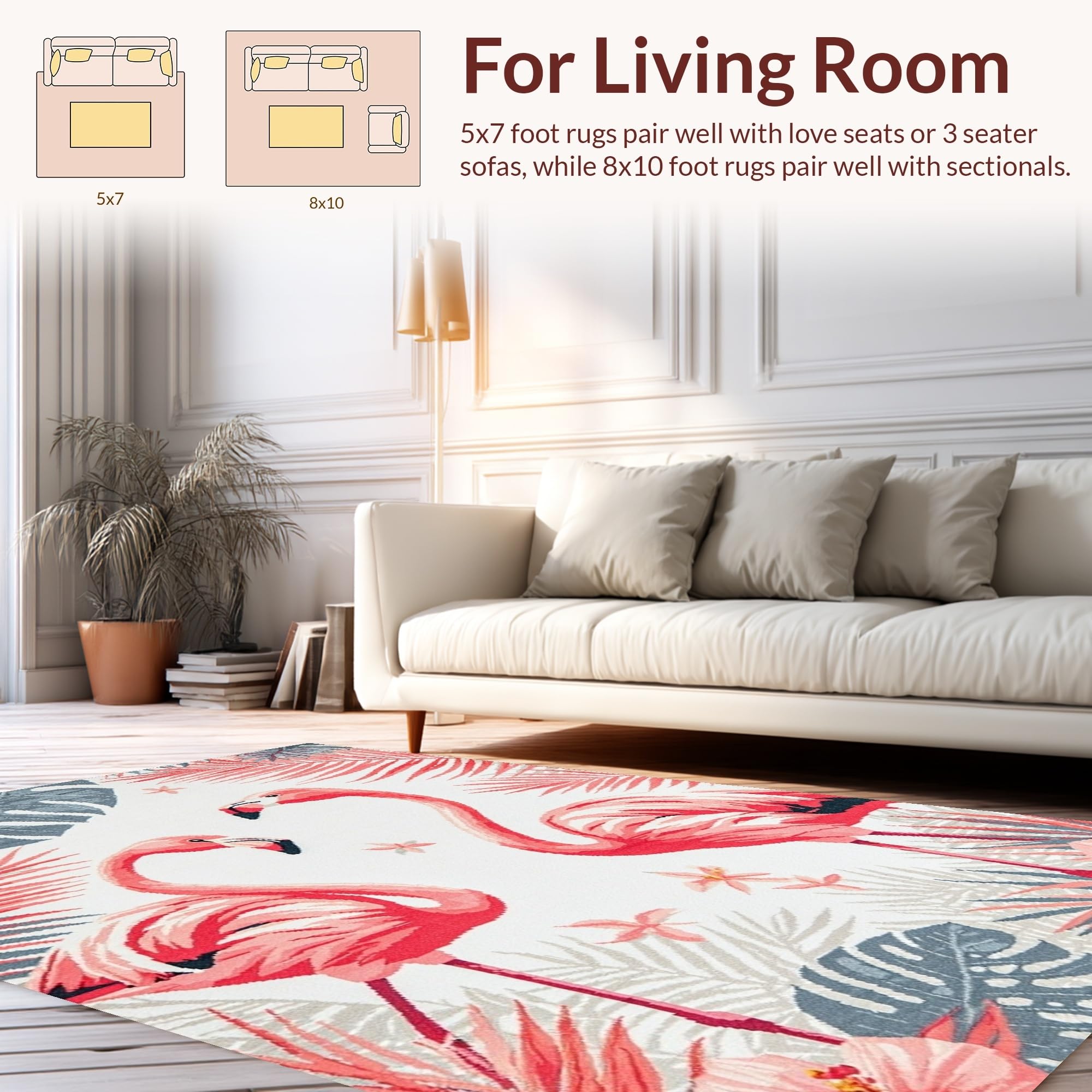 Ultra Soft Area Rug, Non Slip, Stain Resistant, Washable Area Rugs for Living Room, Bedroom, Playful Flamingo and Leaf Fusion(Pink) Overview:
