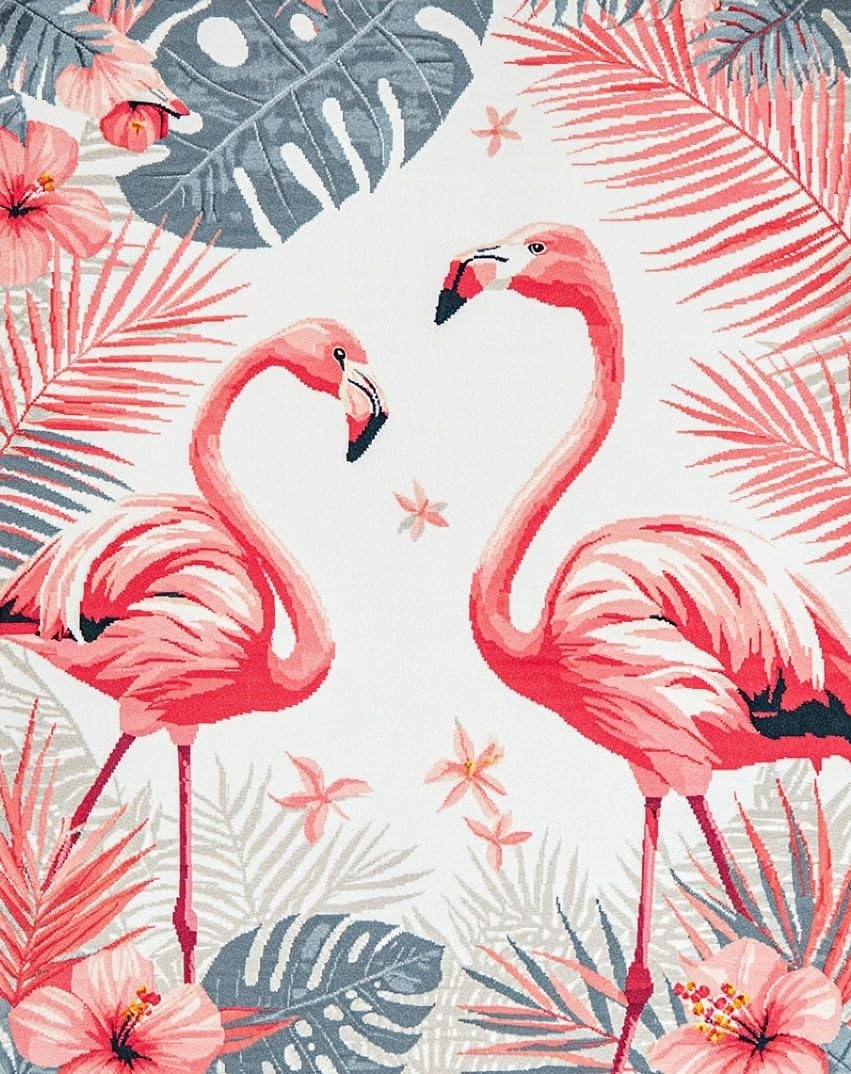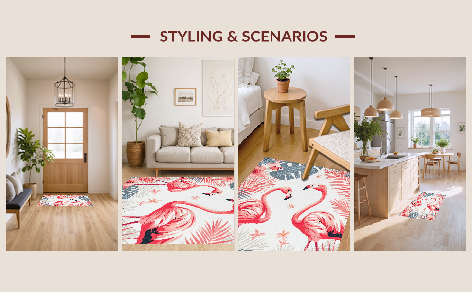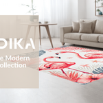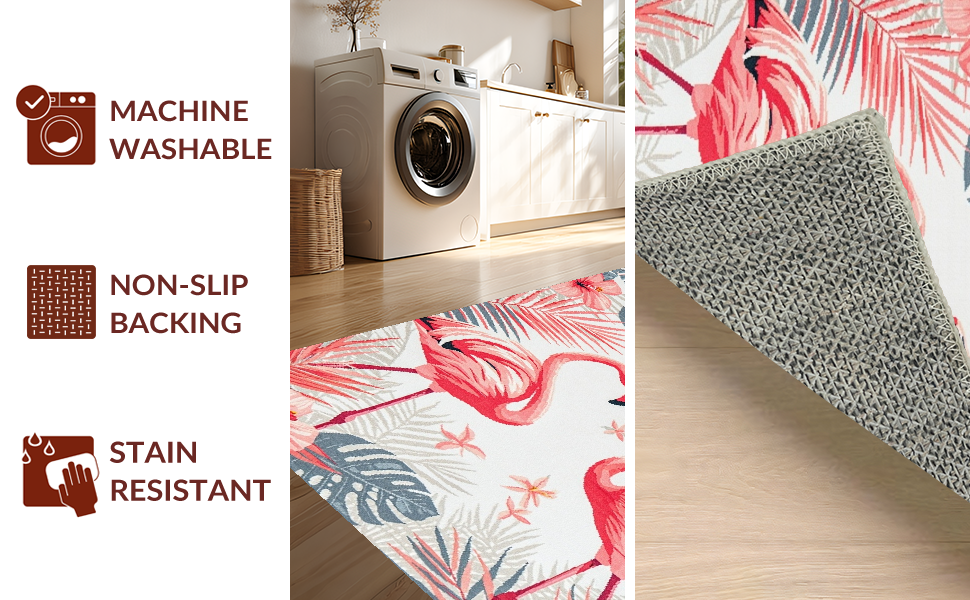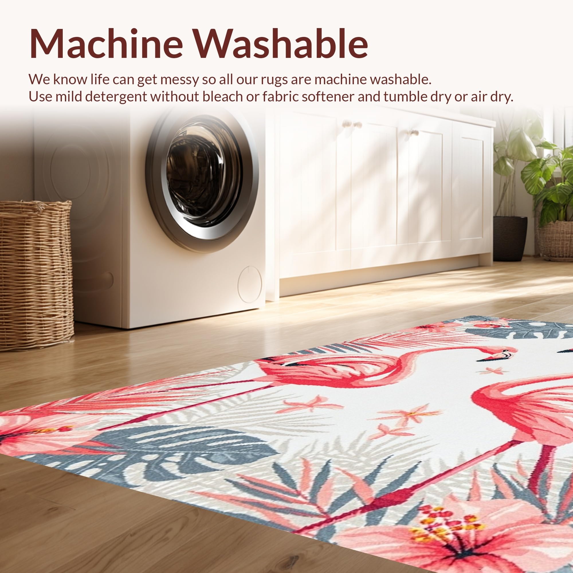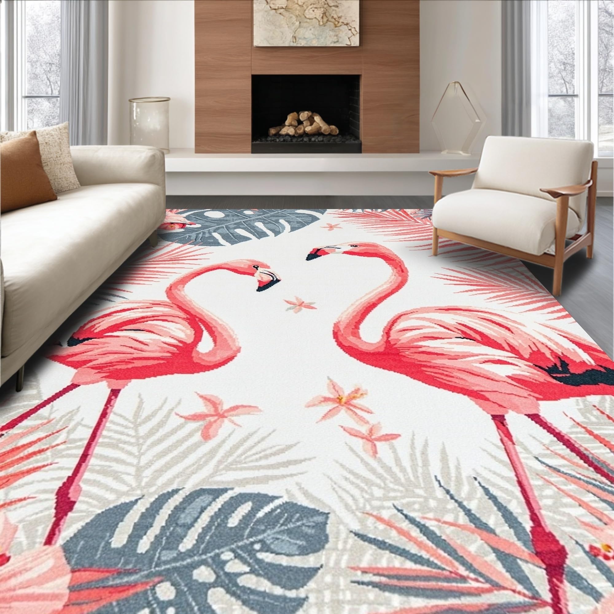 Ultra Soft Area Rug, Non Slip, Stain Resistant, Washable Area Rugs for Living Room, Bedroom, Playful Flamingo and Leaf Fusion(Pink) Overview: