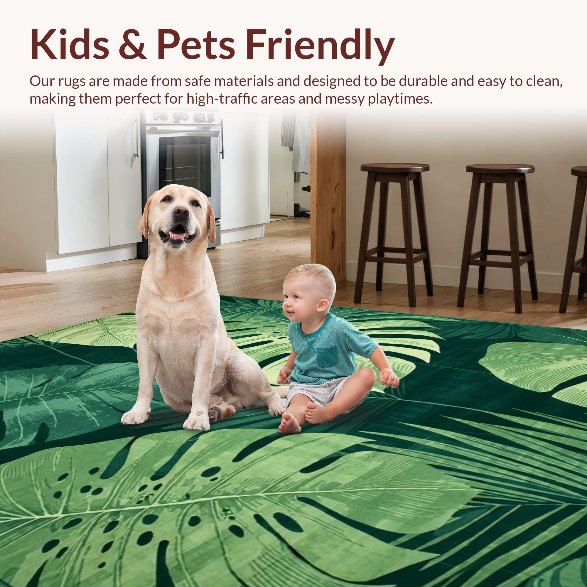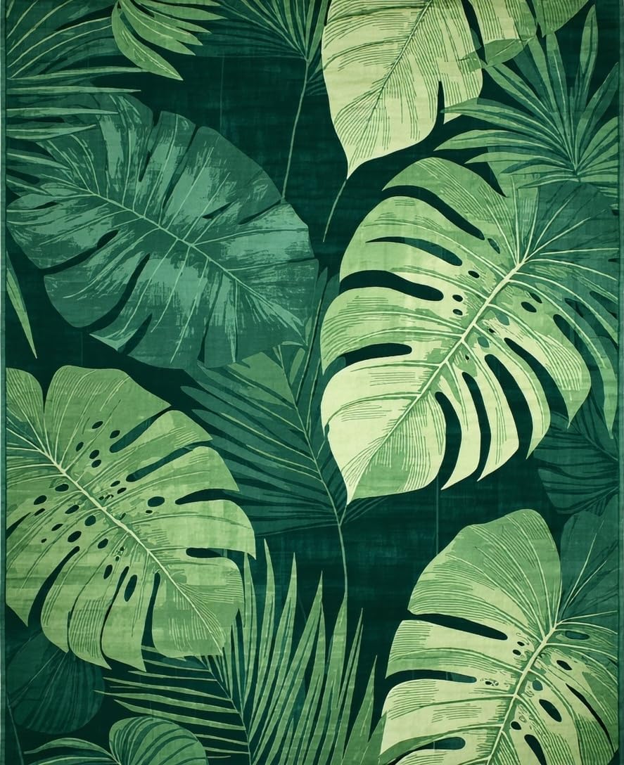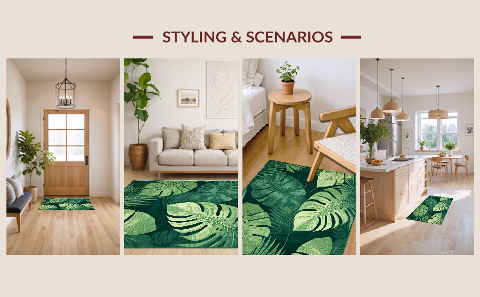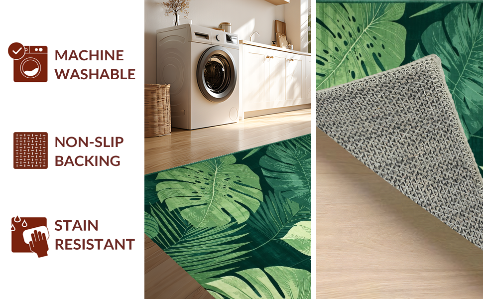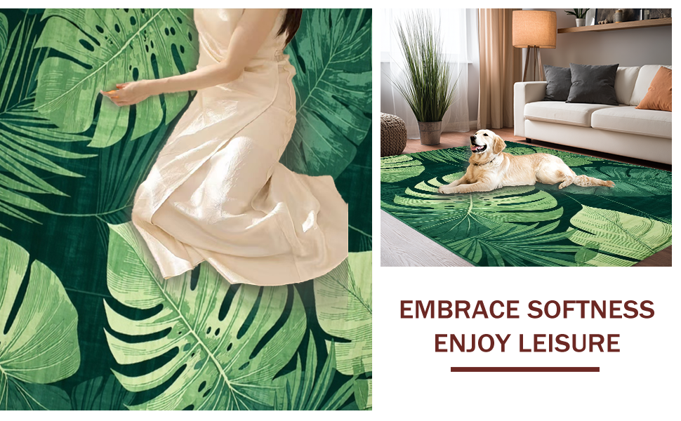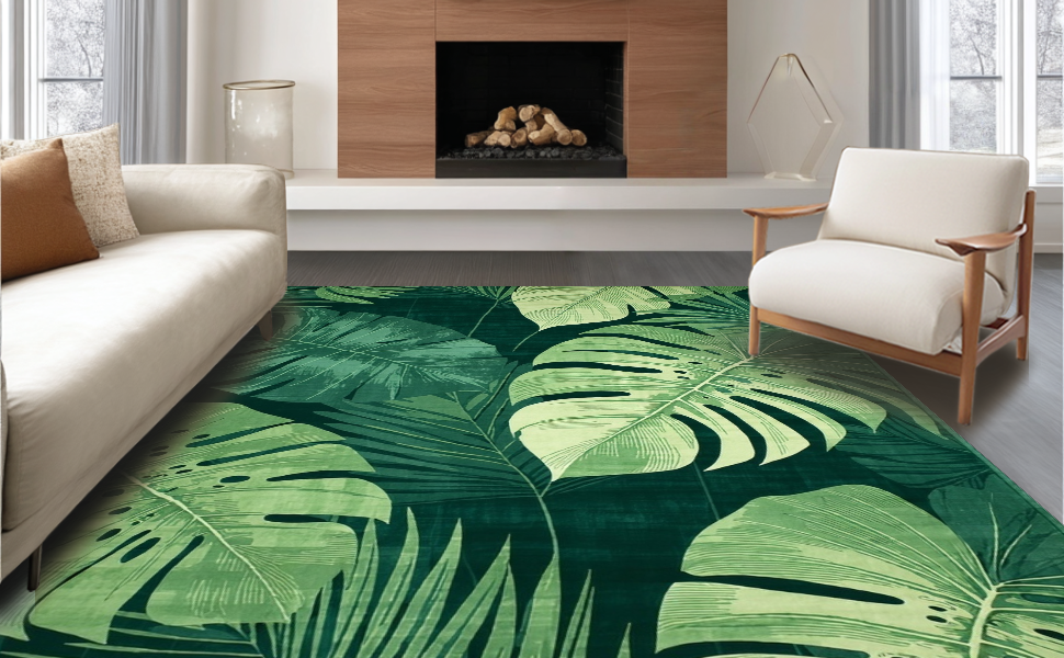 Ultra Soft Area Rug, Non Slip, Stain Resistant, Washable Area Rugs for Living Room, Bedroom, Playful Flora Design Essence(Green) Overview: