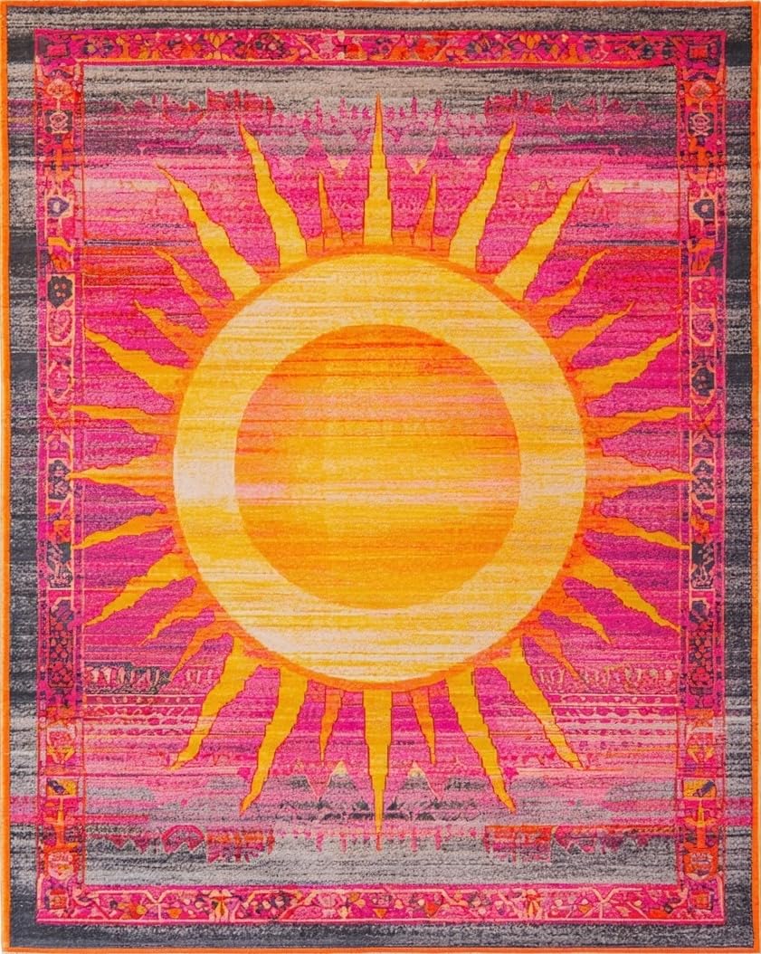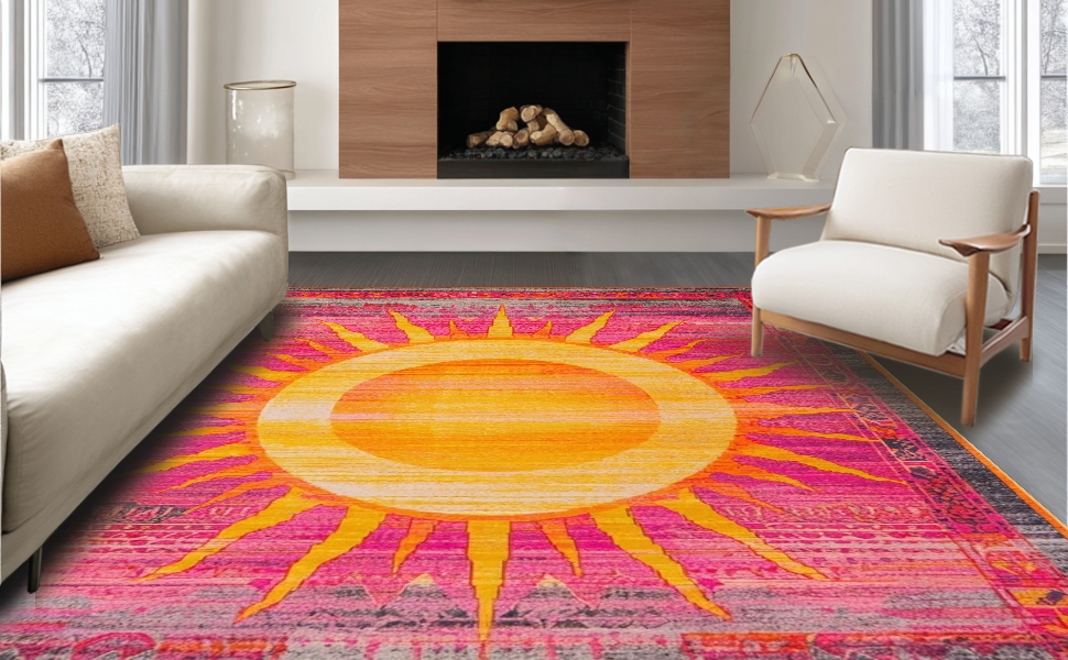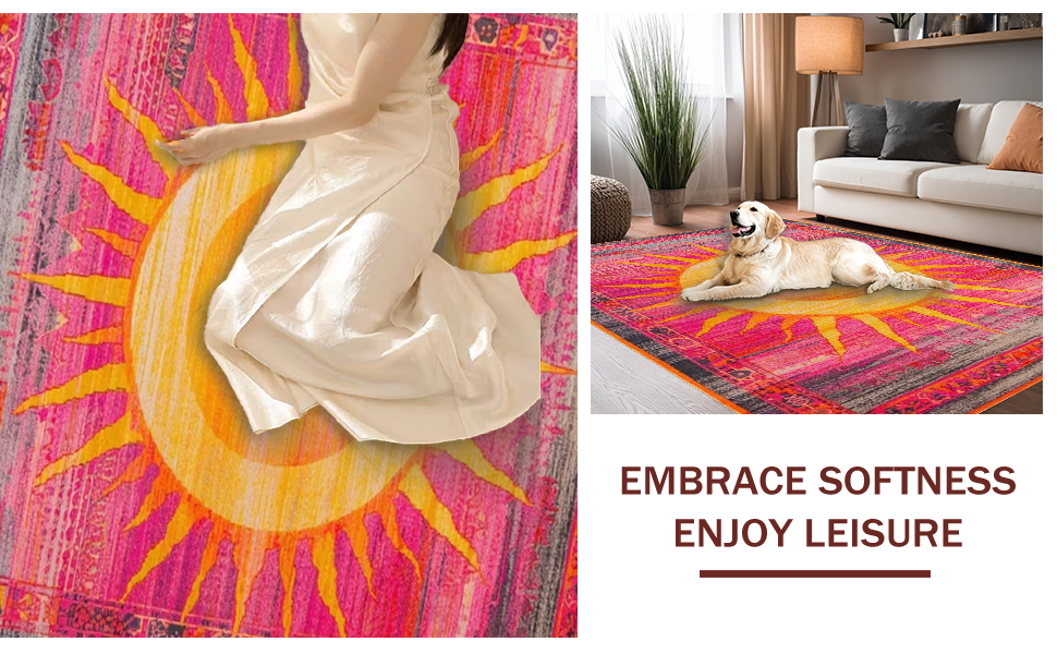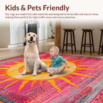 Ultra Soft Area Rug, Non Slip, Stain Resistant, Washable Area Rugs for Living Room, Bedroom, Playful Fringed Rainbow Motif(Pink) Overview: