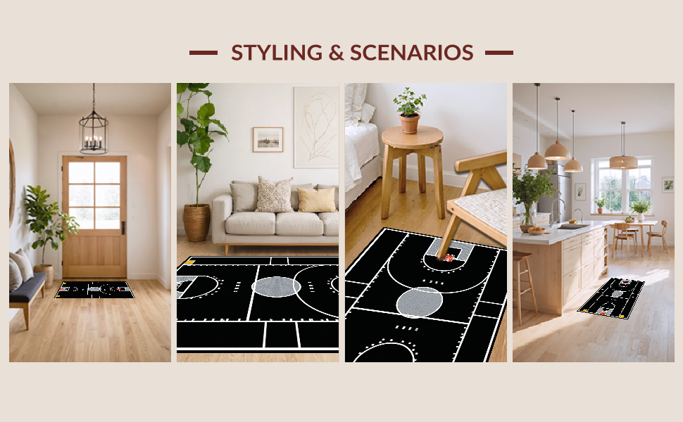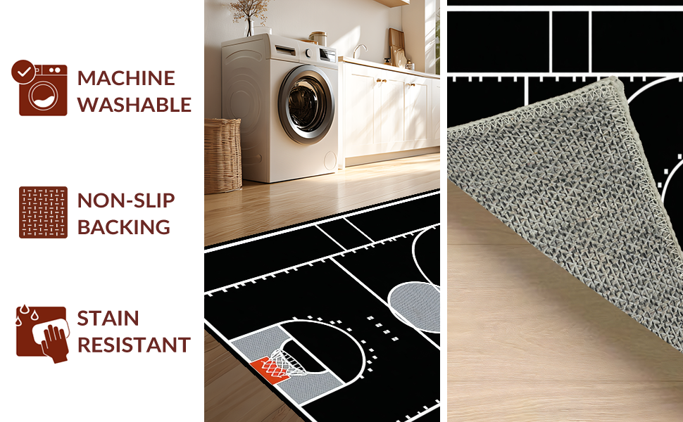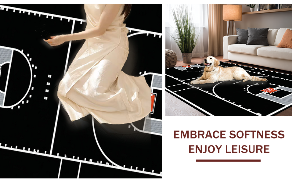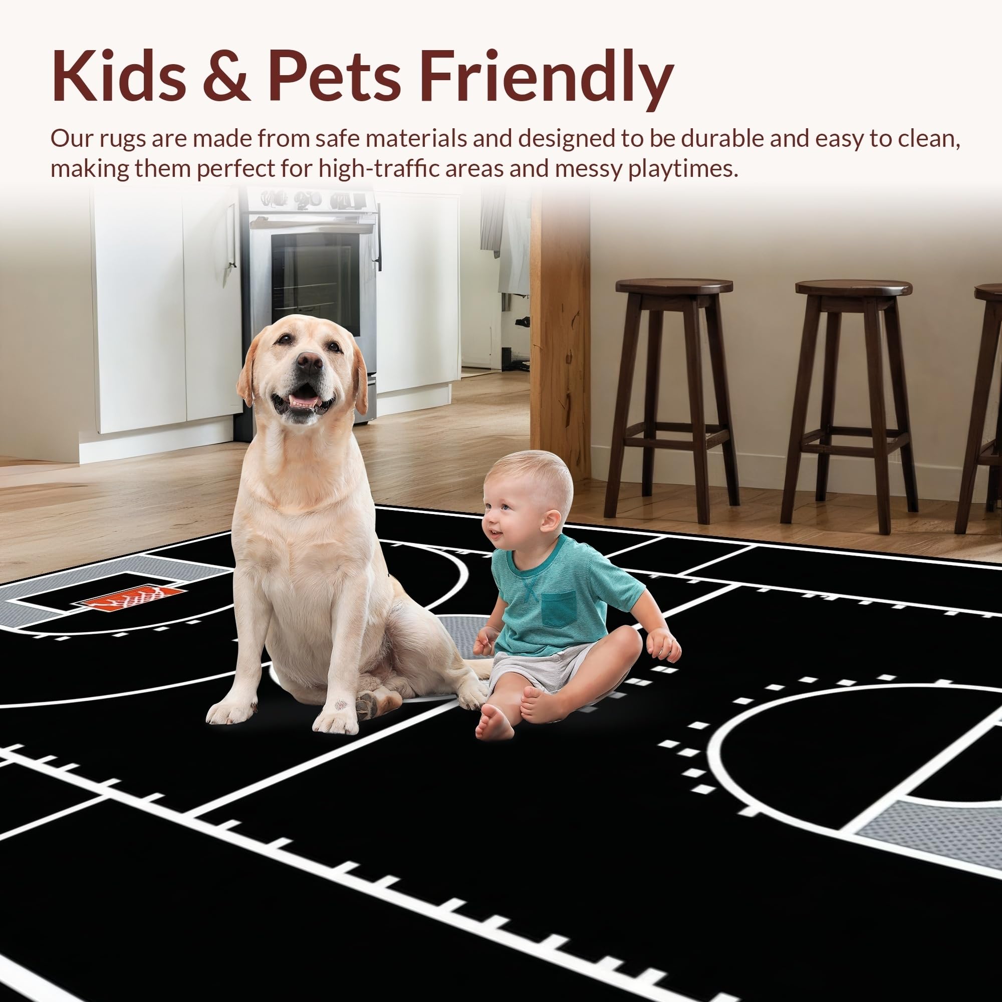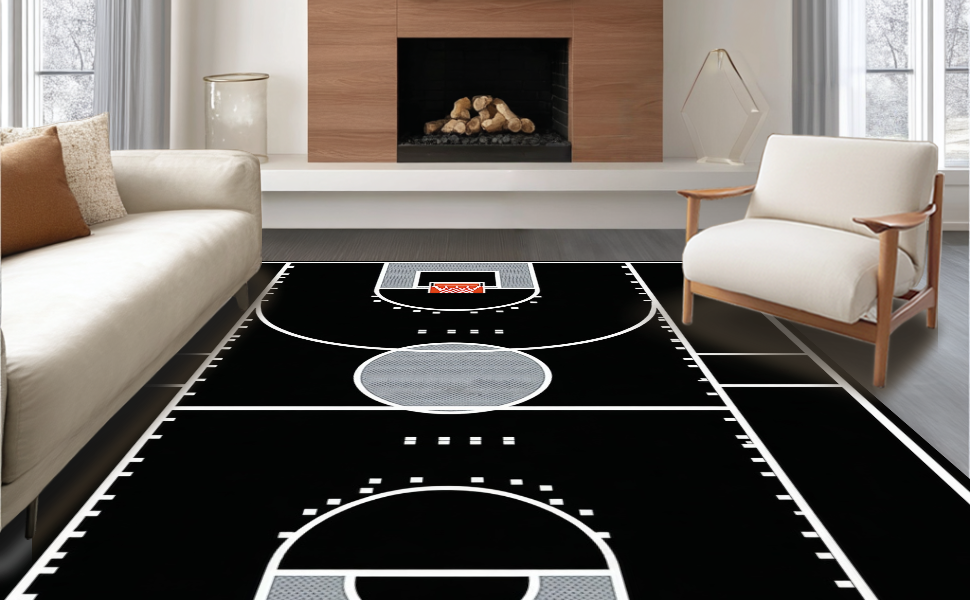 Ultra Soft Area Rug, Non Slip, Stain Resistant, Washable Area Rugs for Living Room, Bedroom, Playful Graphic Court Layout(Black) Overview: