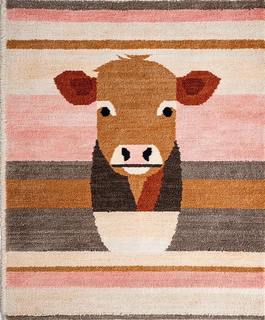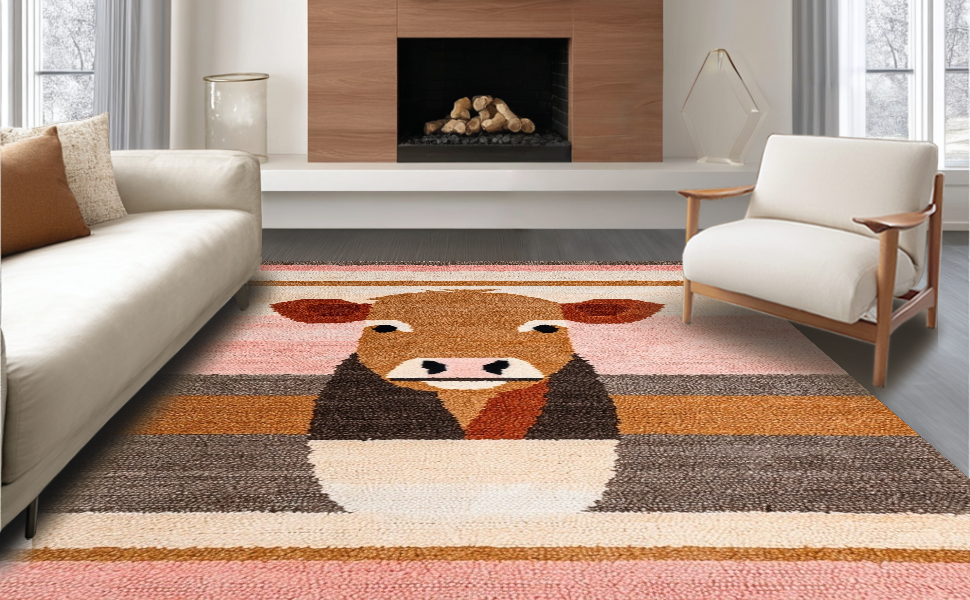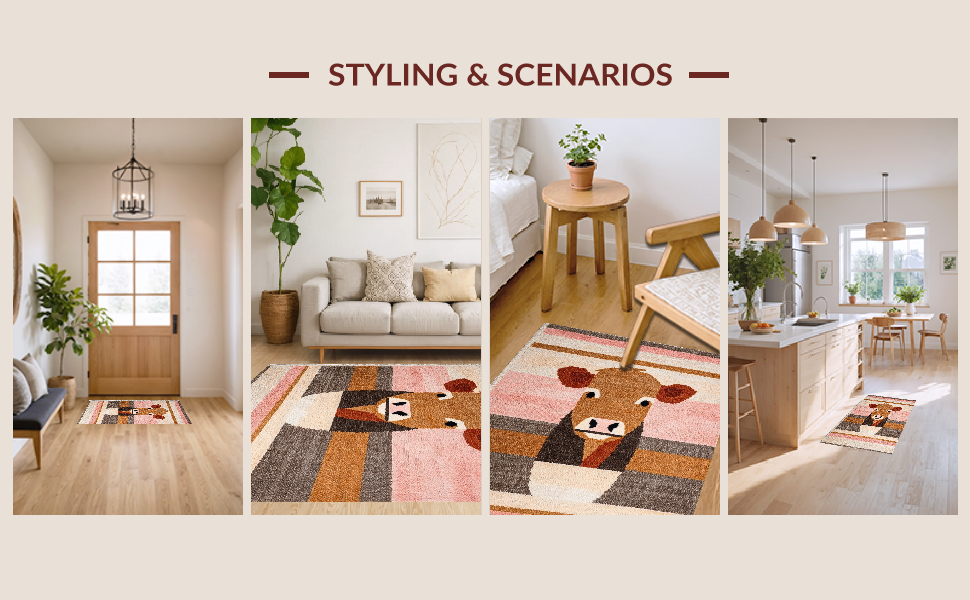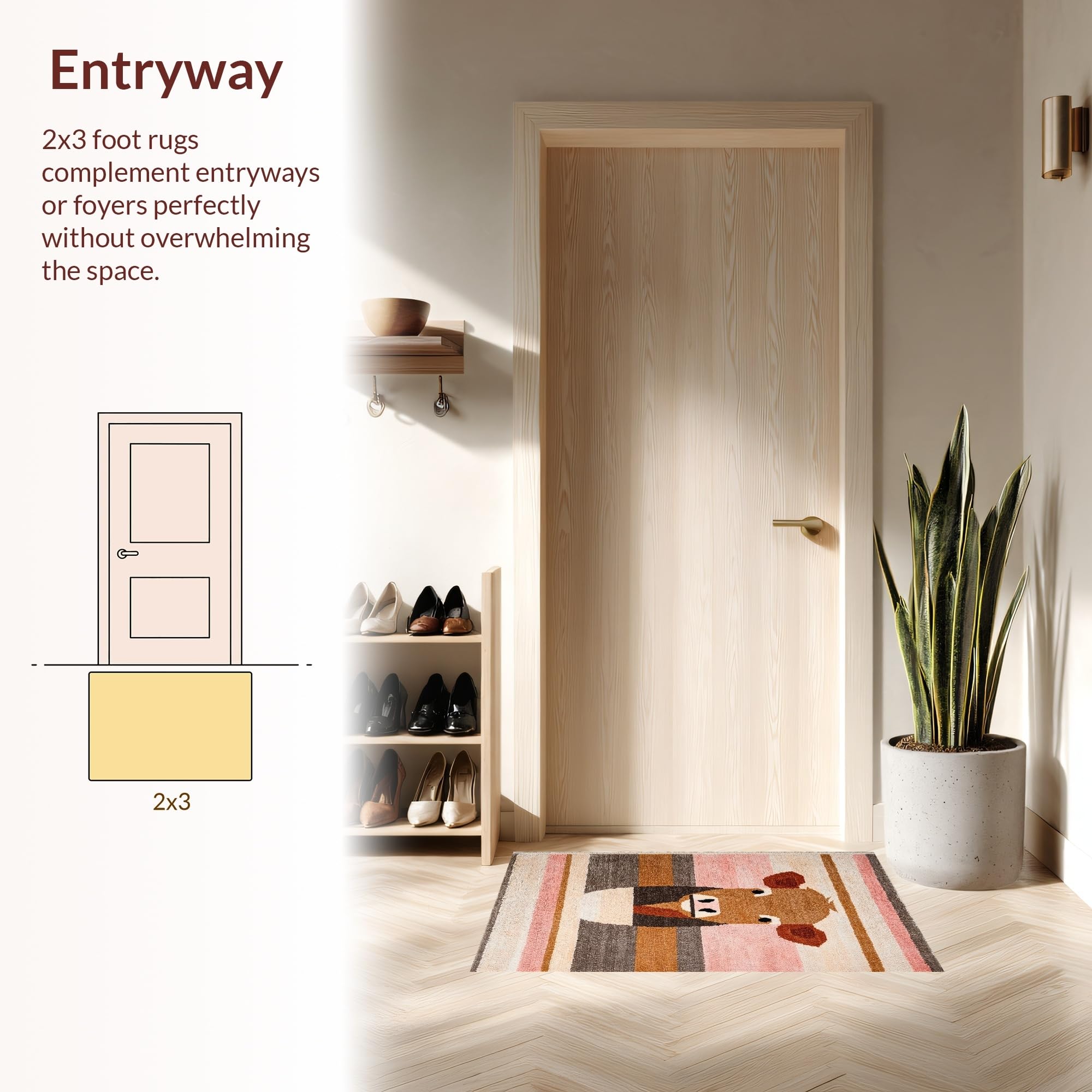 Ultra Soft Area Rug, Non Slip, Stain Resistant, Washable Area Rugs for Living Room, Bedroom, Playful Highland Cow Artistry(Pink) Overview: