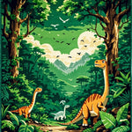 Playful Jurassic Scene Motif(Green)