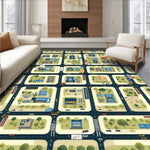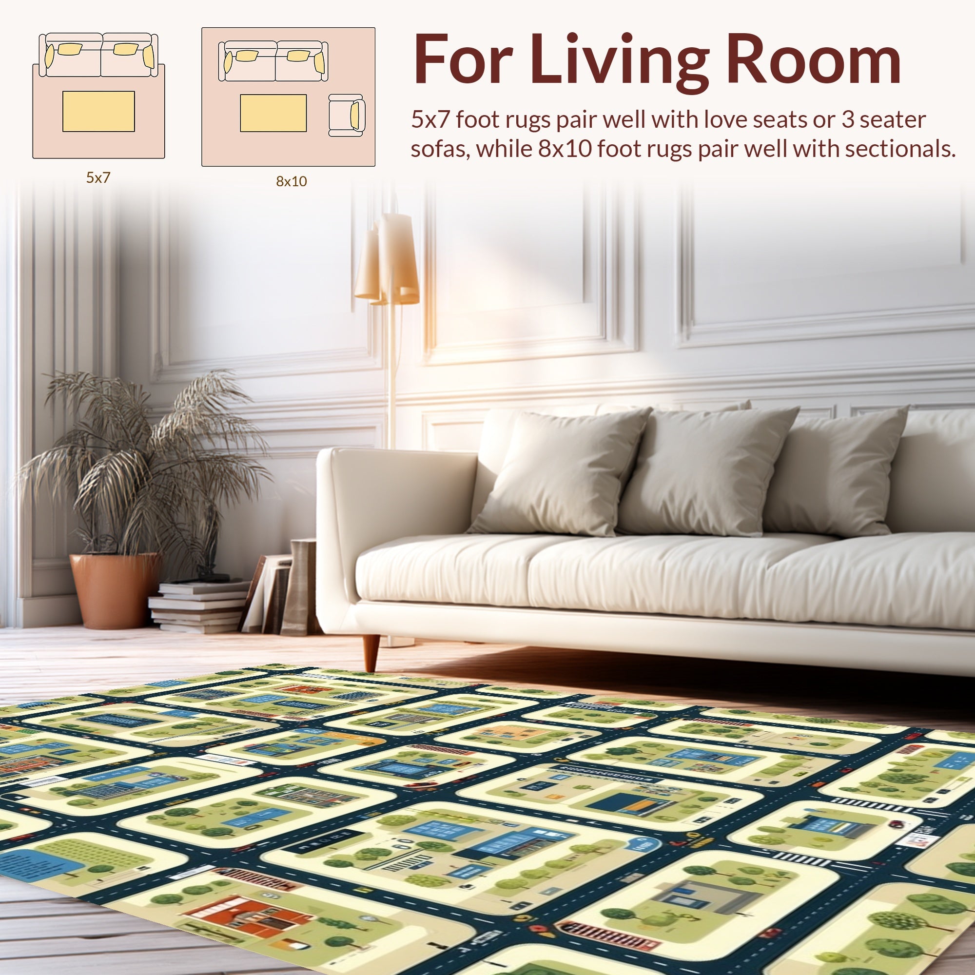 Flatwoven High Traffic Area Rug, Playful Metropolis Design, Non Slip, Stain Resistant, Washable Area Rugs for Living Room, Bedroom (Brown) Overview: