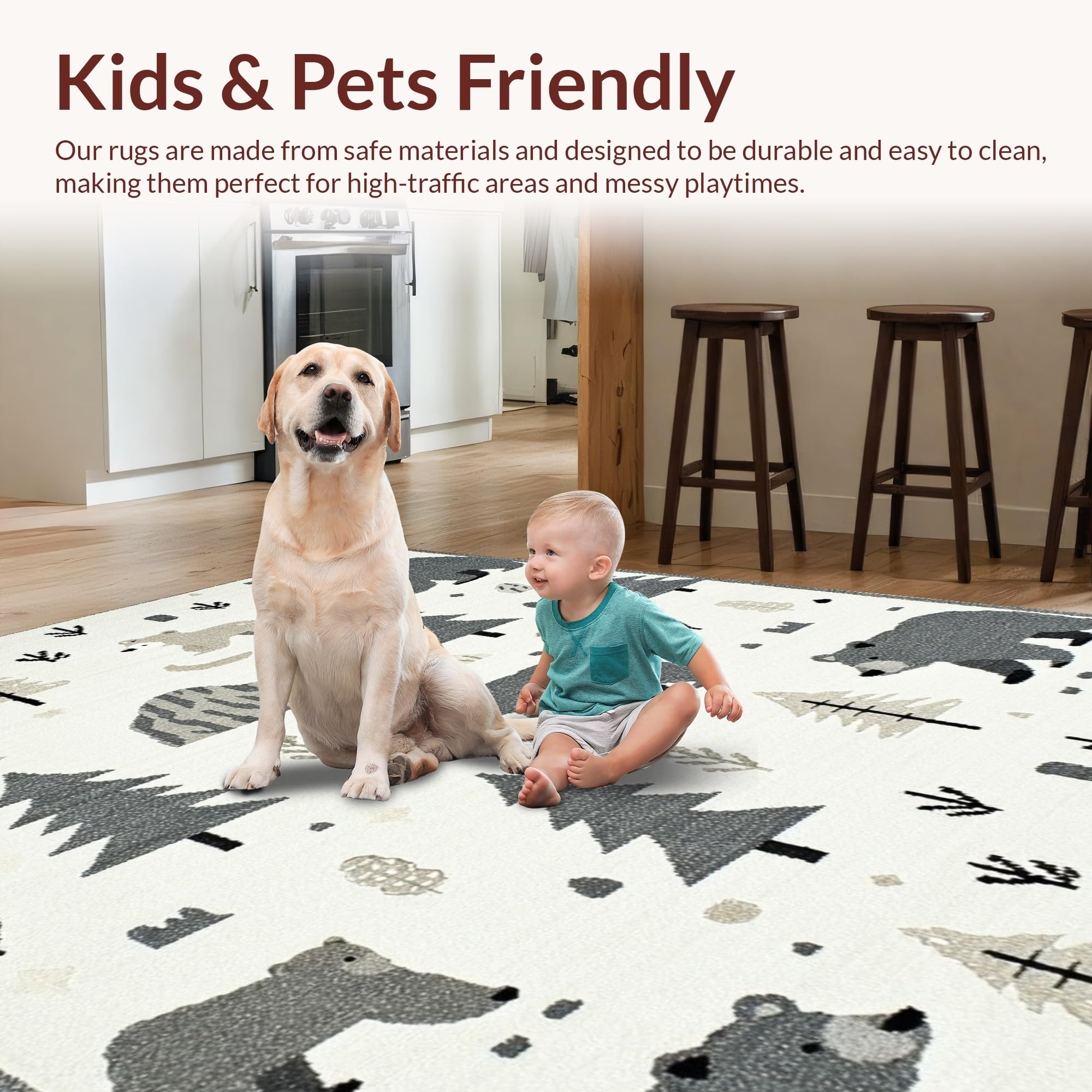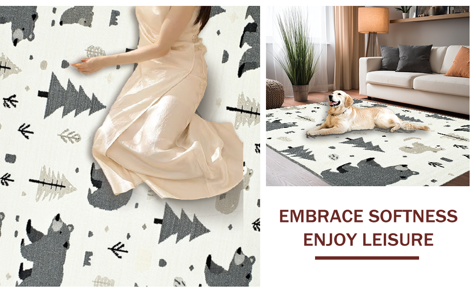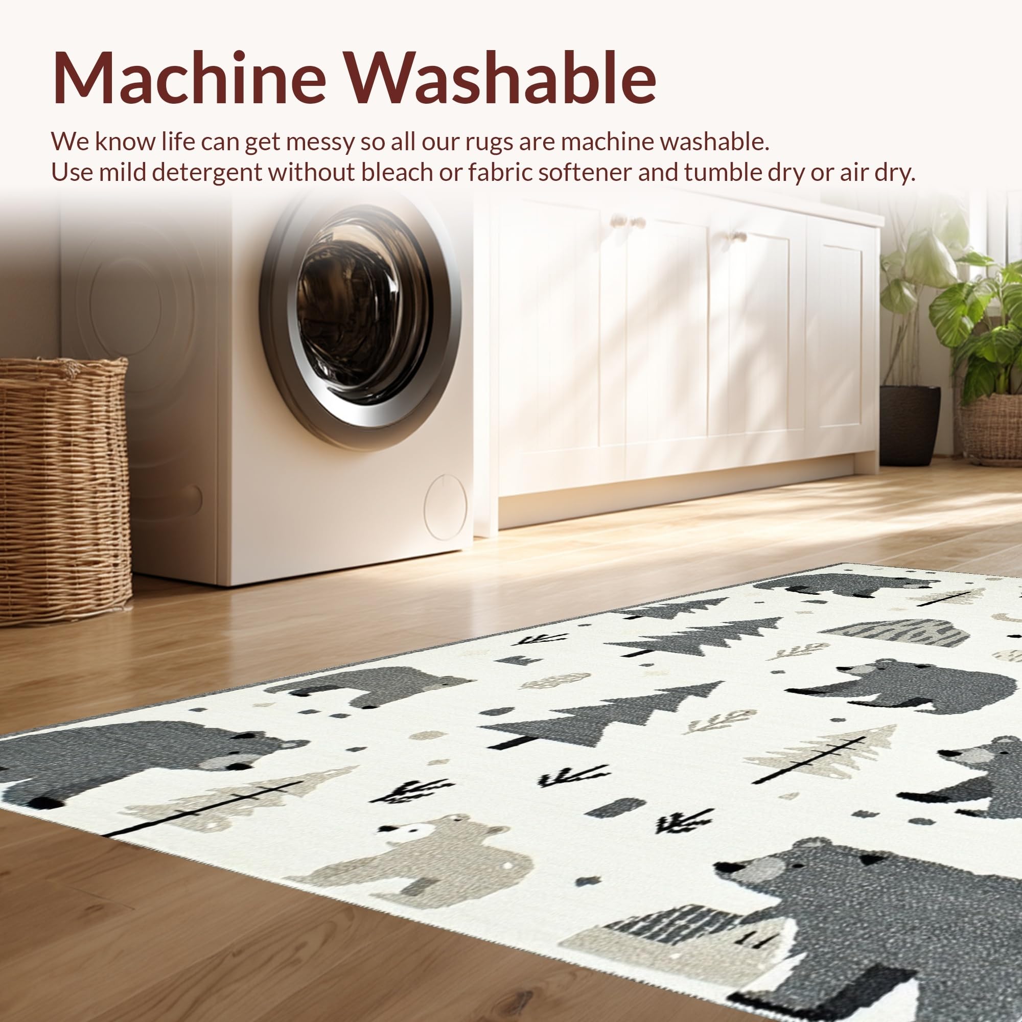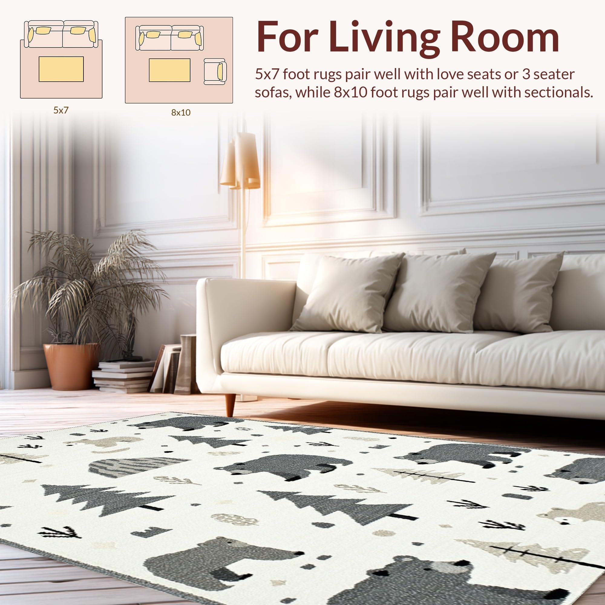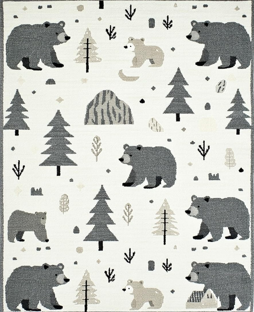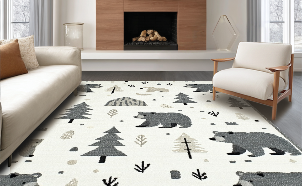 Ultra Soft Area Rug, Non Slip, Stain Resistant, Washable Area Rugs for Living Room, Bedroom, Playful Minimalist Bear Arrangement(Gray) Overview: