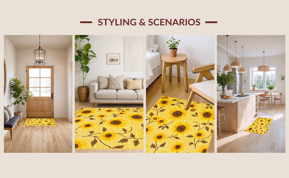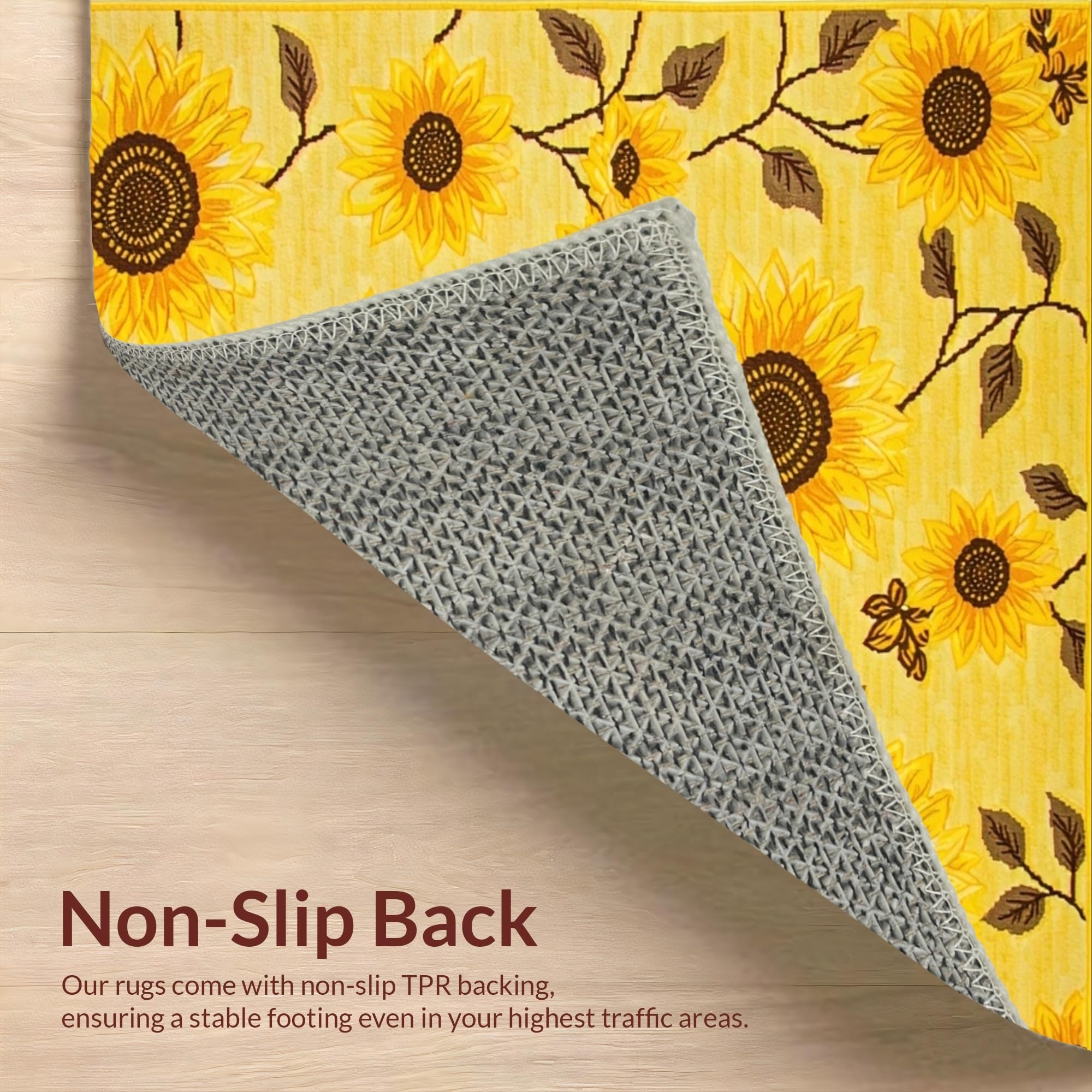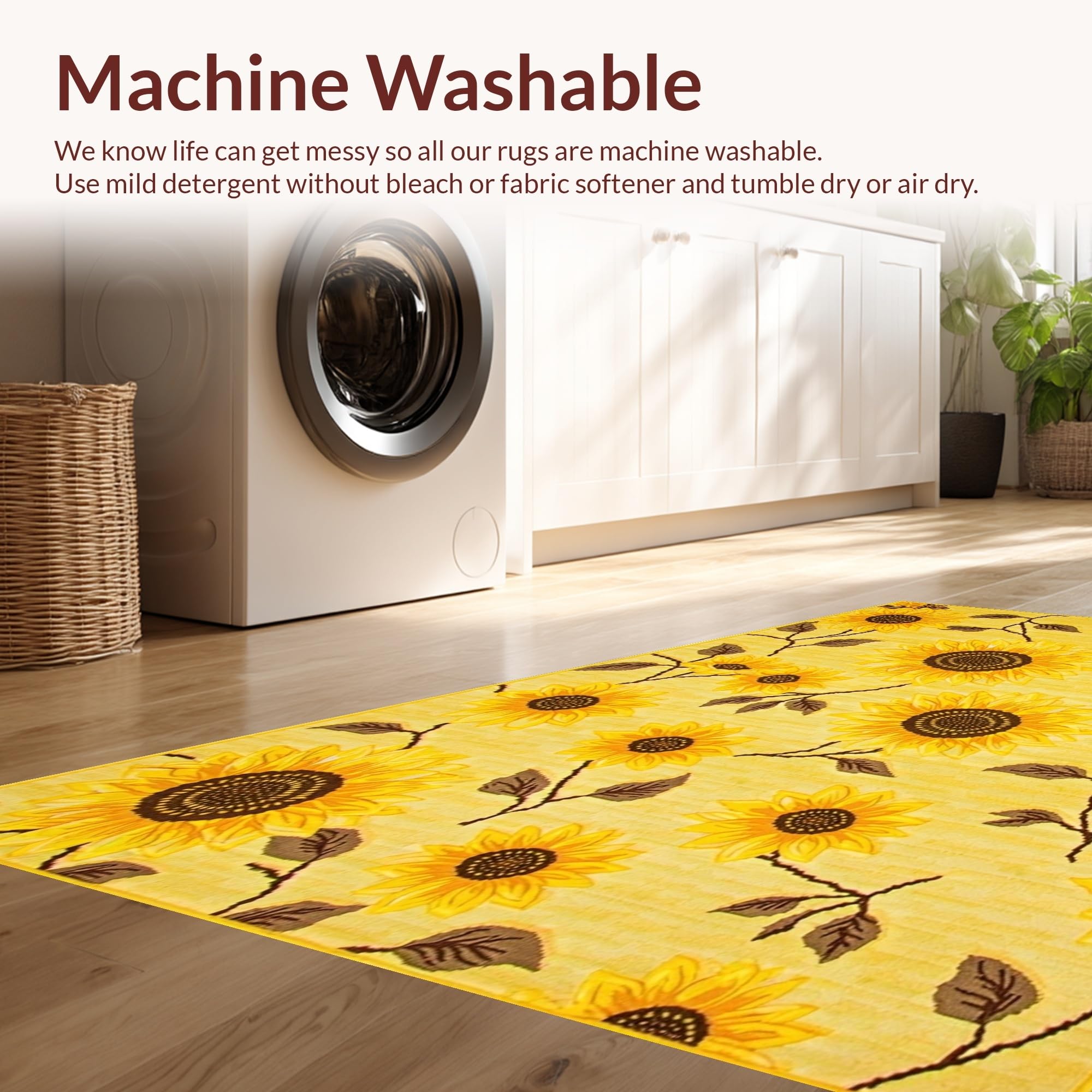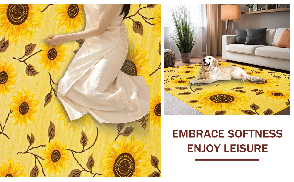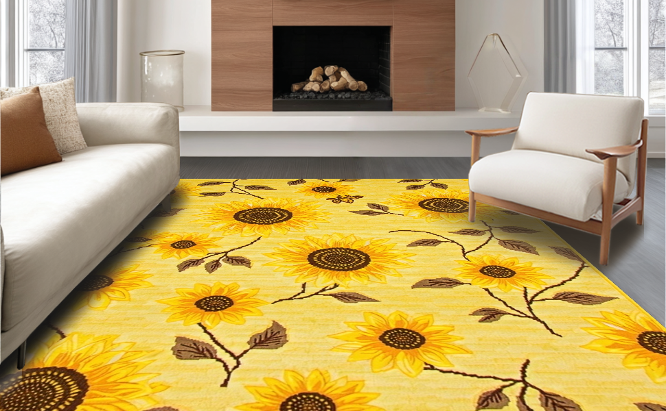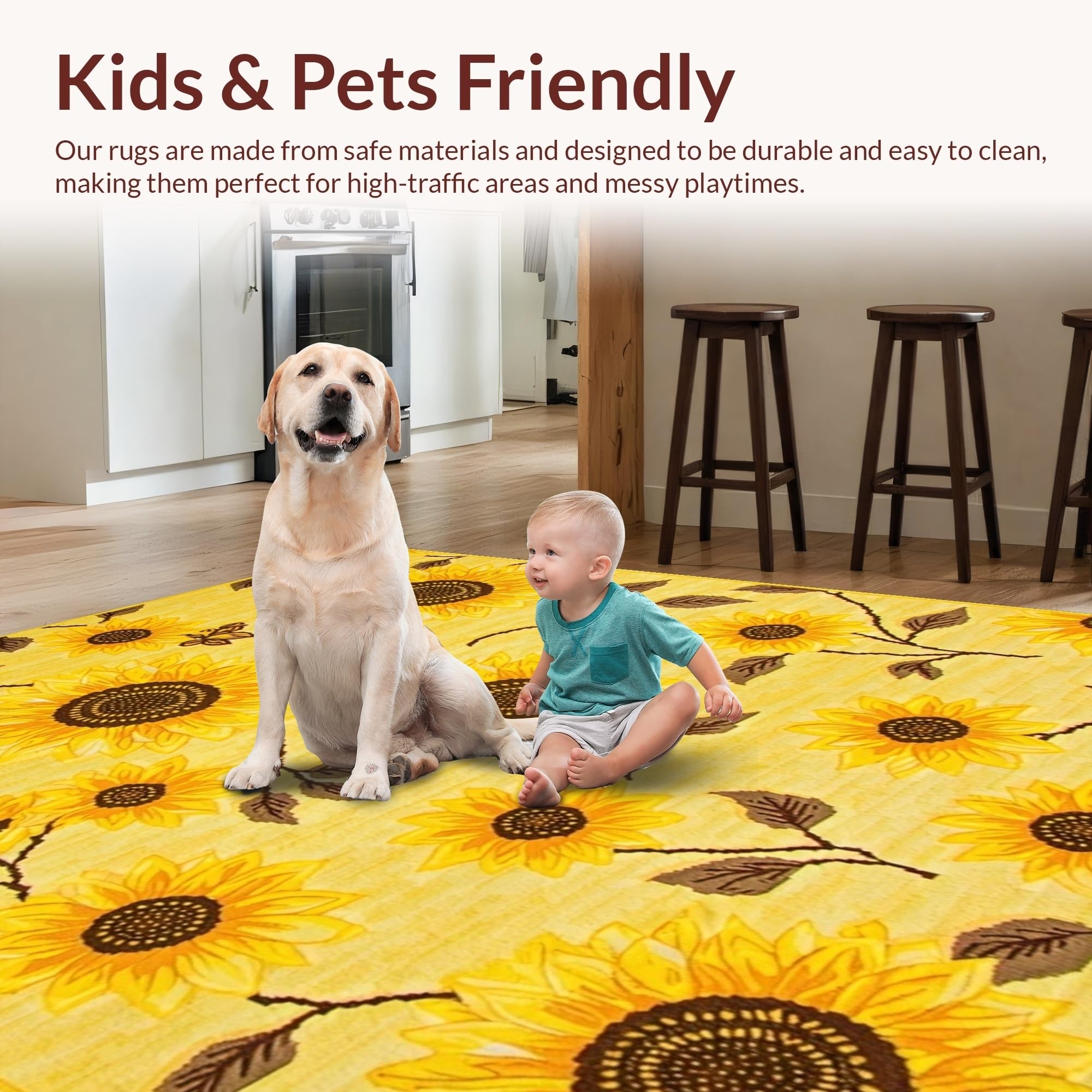 Ultra Soft Area Rug, Non Slip, Stain Resistant, Washable Area Rugs for Living Room, Bedroom, Playful Modern Sunflower Accent(Yellow) Overview: