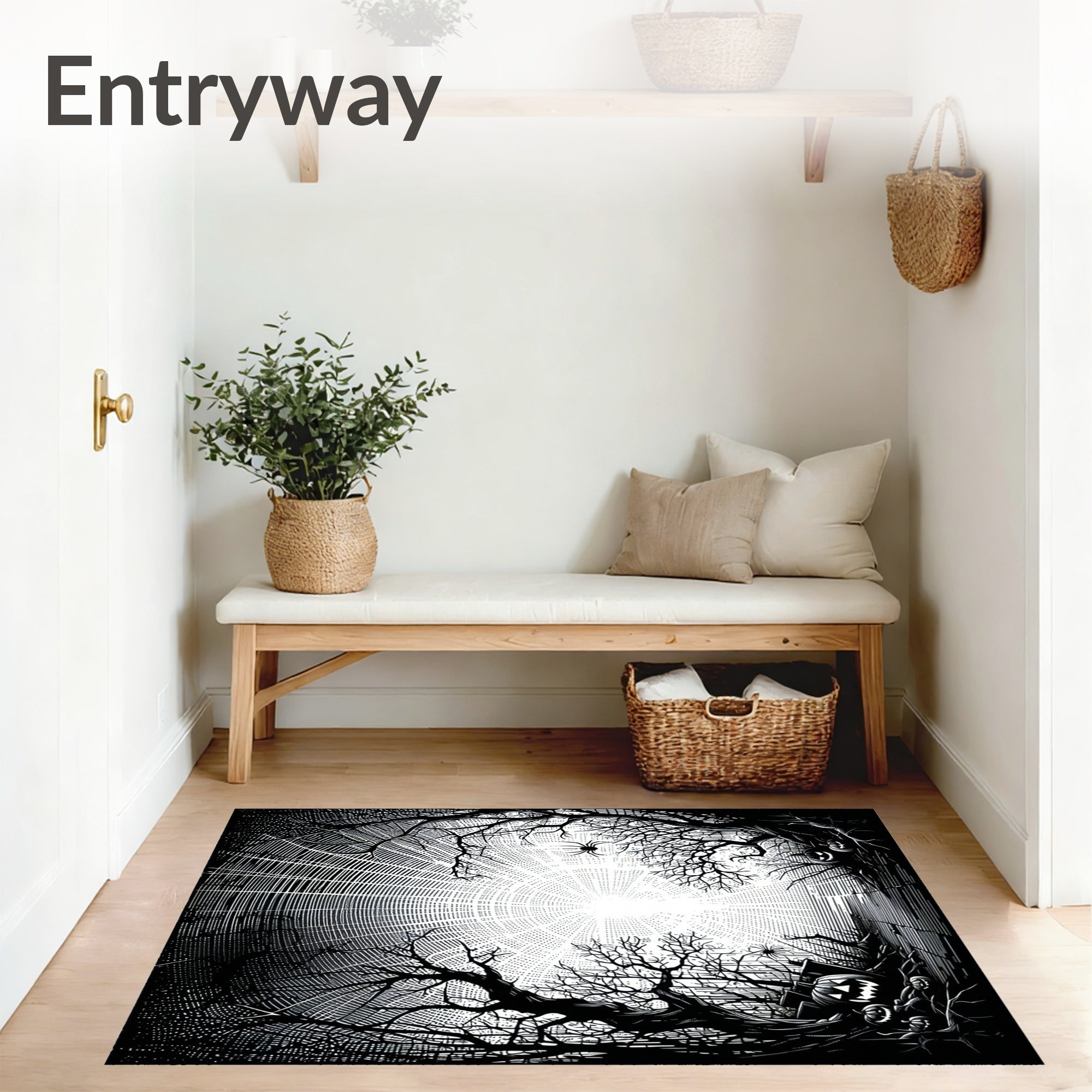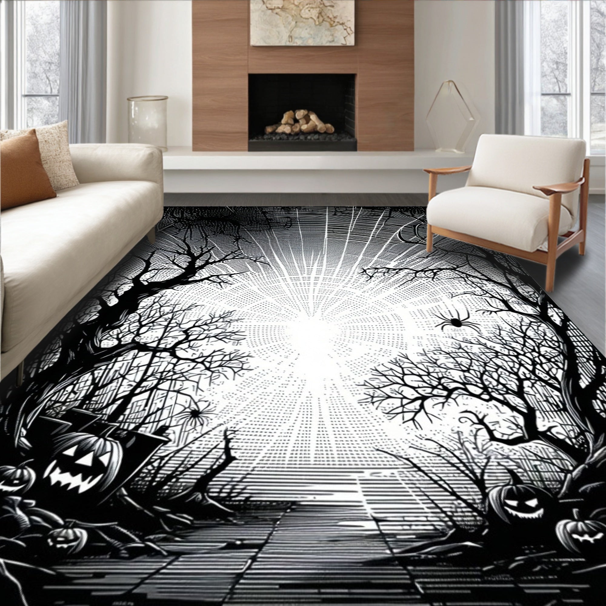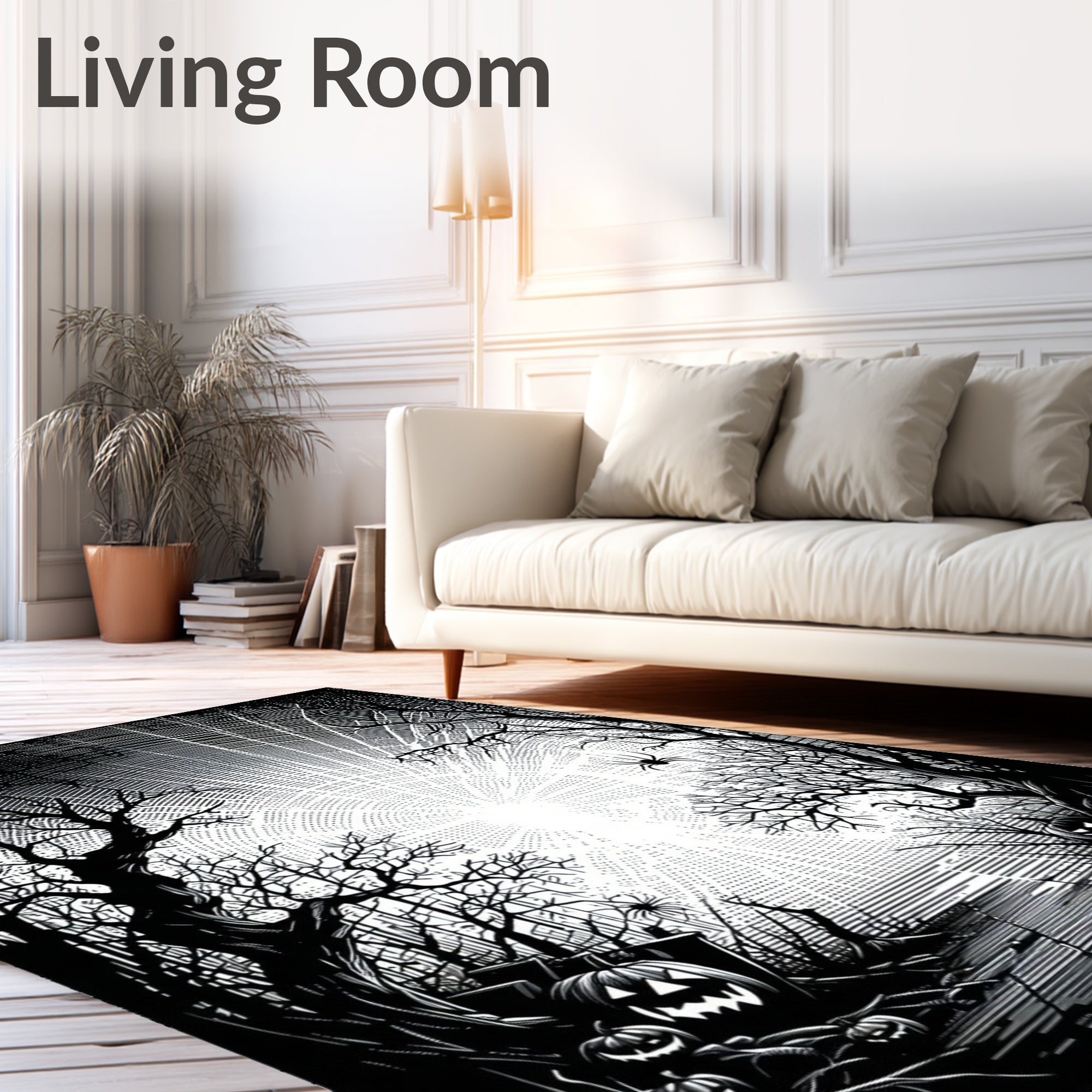 Ultra Soft Area Rug, Non Slip, Stain Resistant, Washable Area Rugs for Living Room, Bedroom, Playful Monochrome Halloween Aesthetic(Black) Overview: