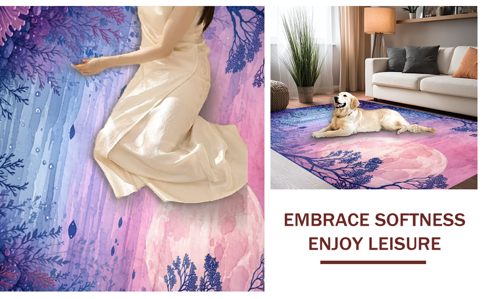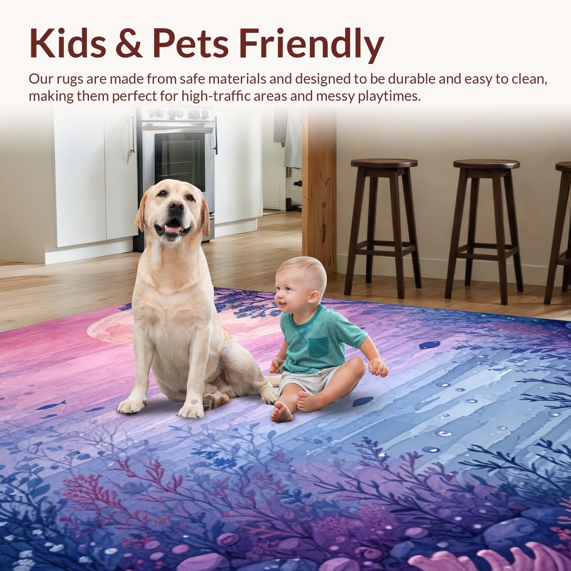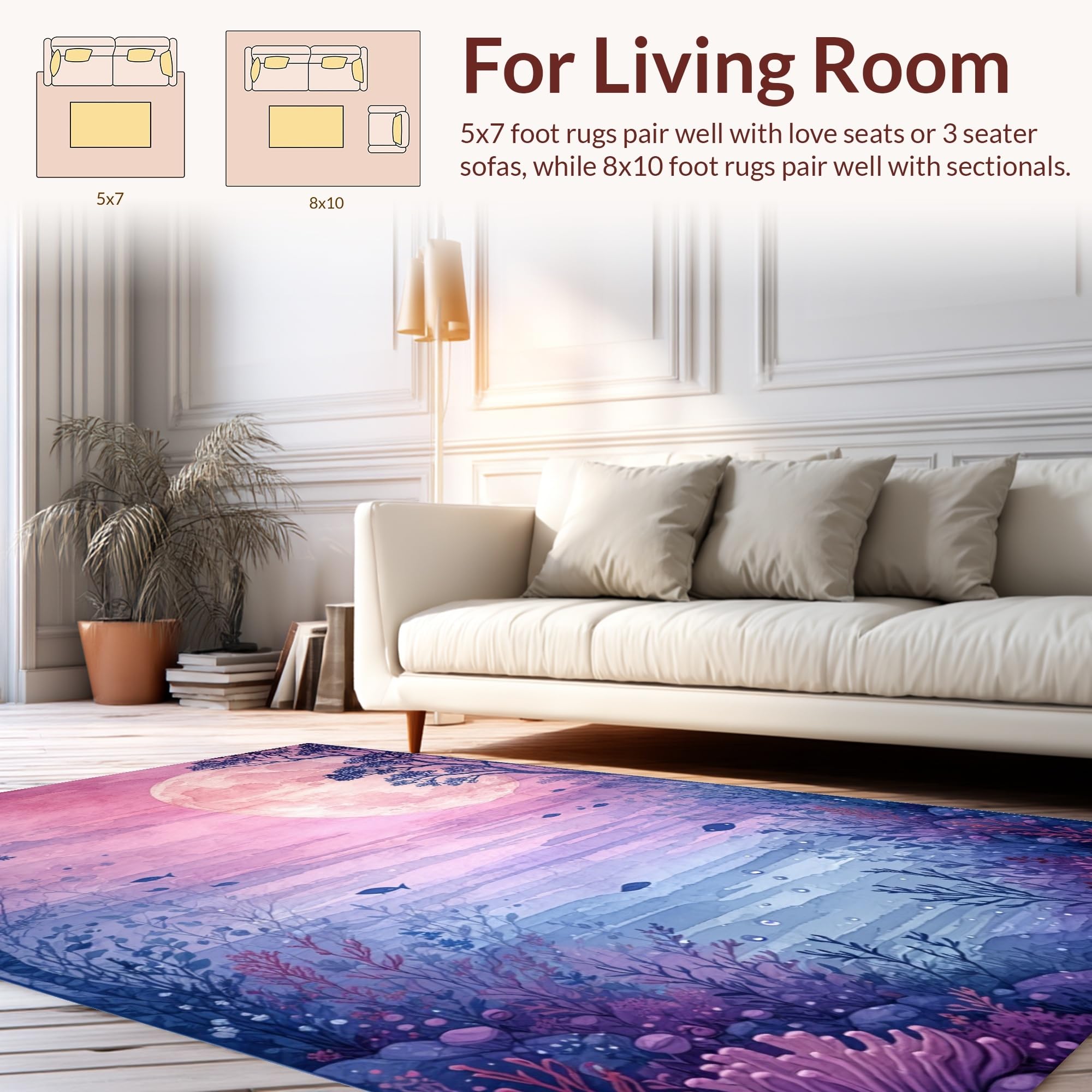 Ultra Soft Area Rug, Non Slip, Stain Resistant, Washable Area Rugs for Living Room, Bedroom, Playful Nautical Theme Elements(Purple) Overview: