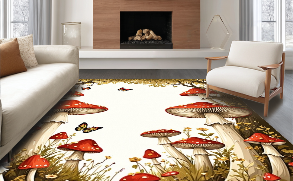 Ultra Soft Area Rug, Non Slip, Stain Resistant, Washable Area Rugs for Living Room, Bedroom, Playful Organic Shapes and Patterns(Red) Overview: