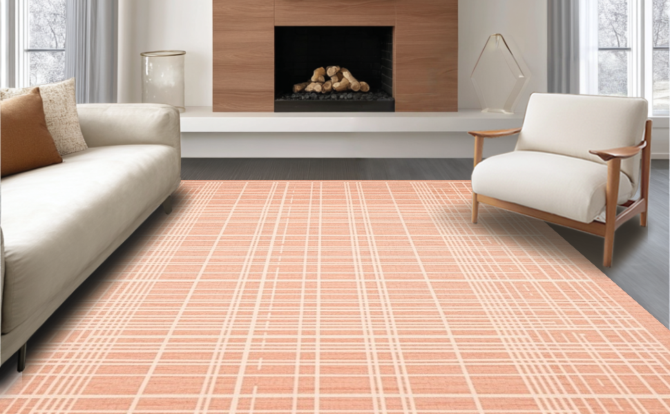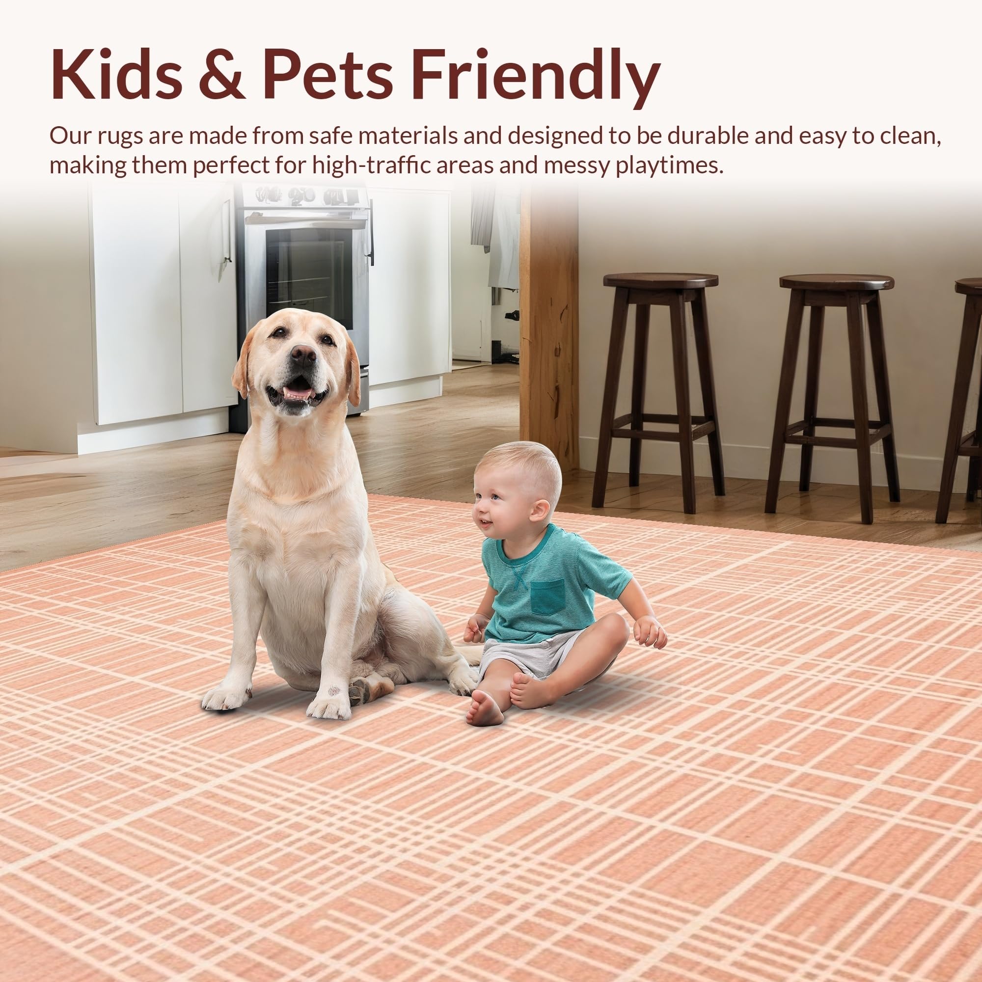Ultra Soft Area Rug, Non Slip, Stain Resistant, Washable Area Rugs for Living Room, Bedroom, Playful Peach Ogee Texture(Beige) Overview: