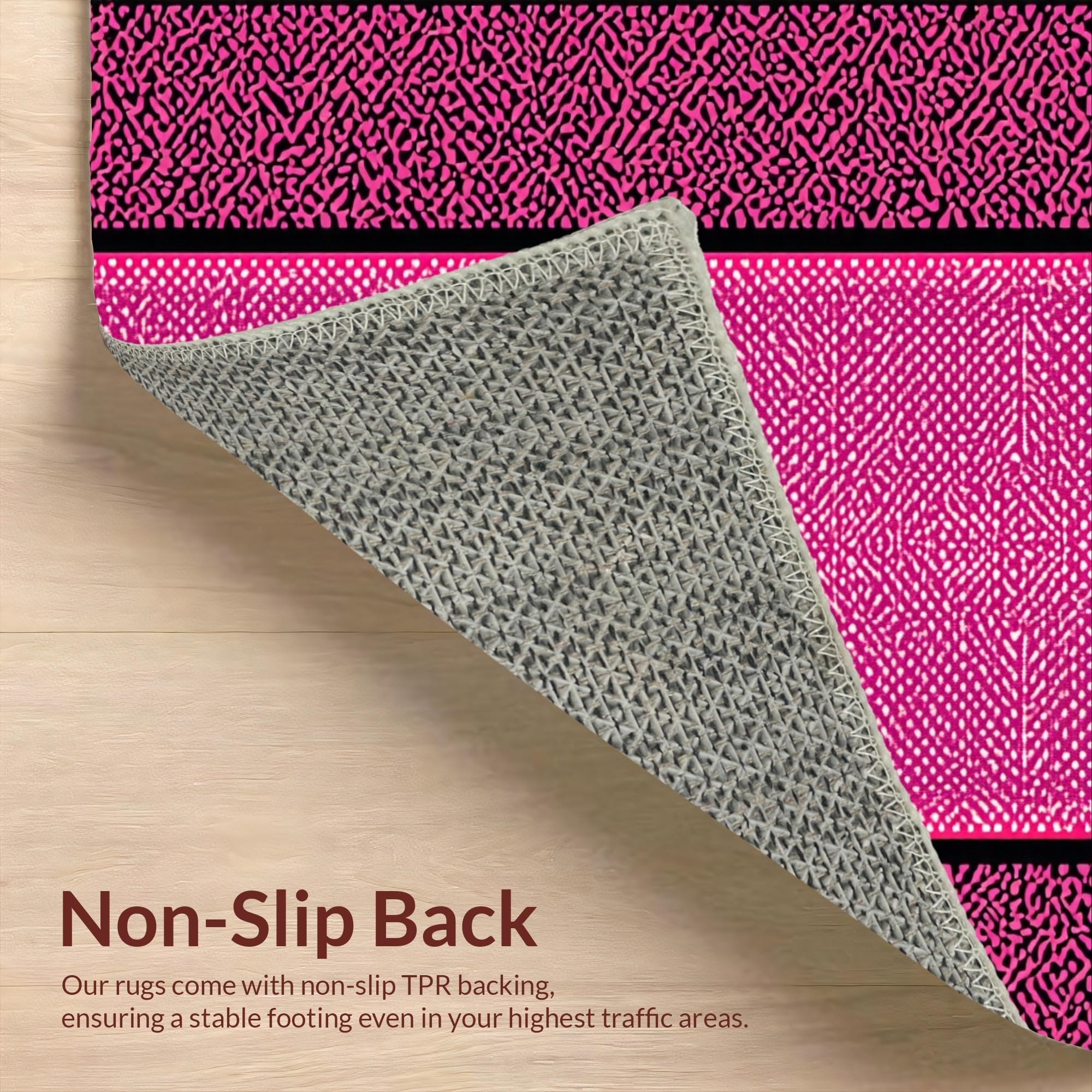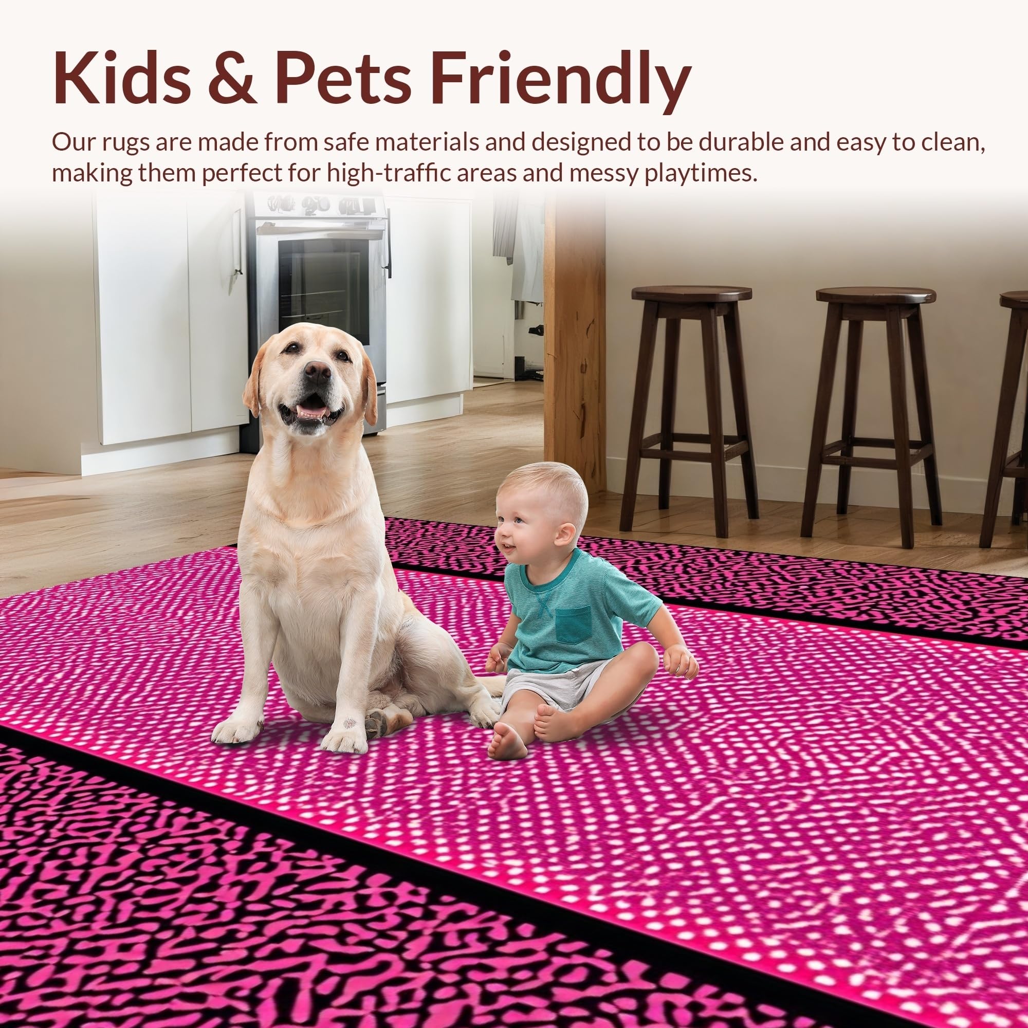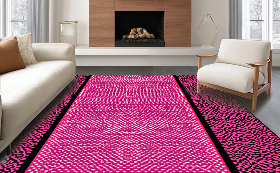 Ultra Soft Area Rug, Non Slip, Stain Resistant, Washable Area Rugs for Living Room, Bedroom, Playful Pink and Black Decorative Blend(Pink) Overview: