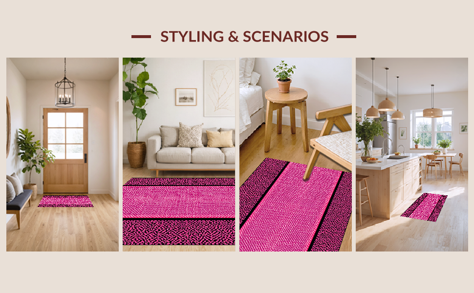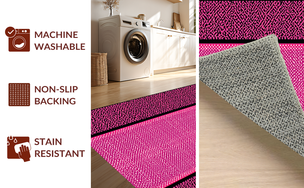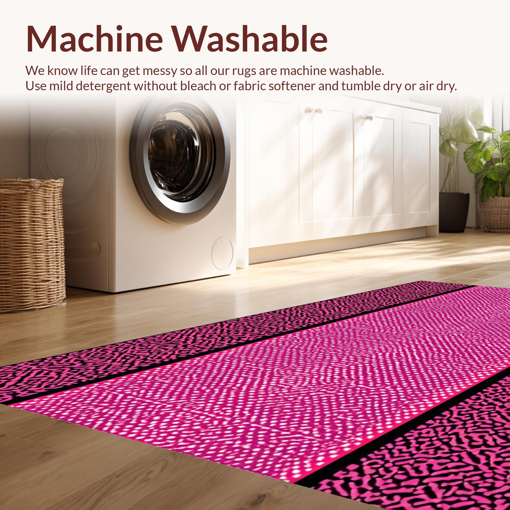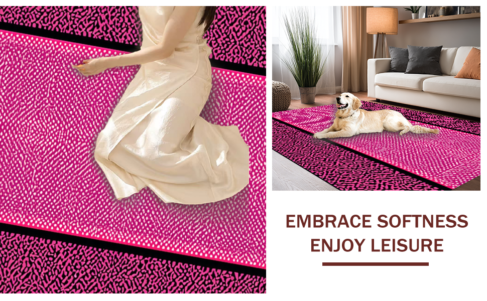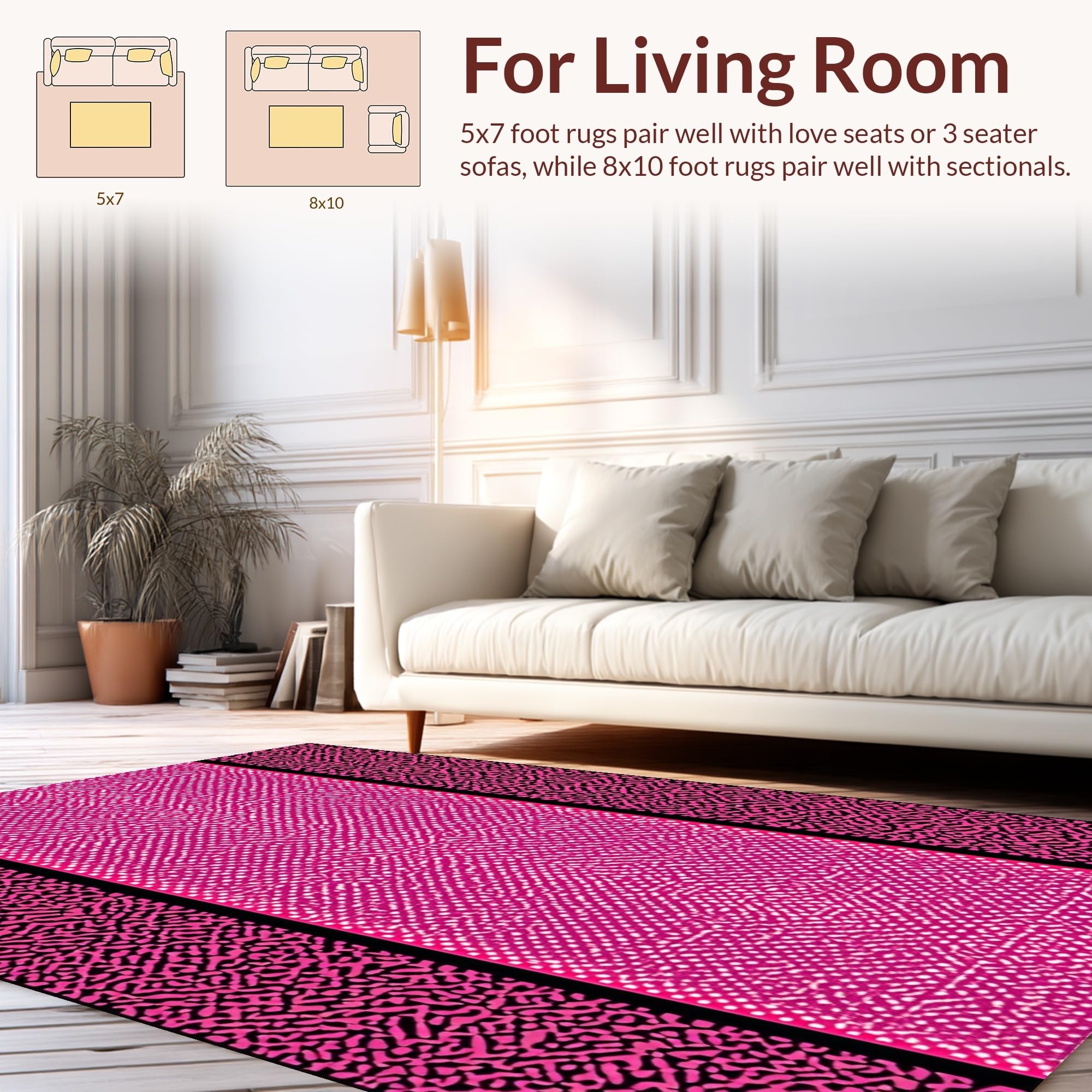 Ultra Soft Area Rug, Non Slip, Stain Resistant, Washable Area Rugs for Living Room, Bedroom, Playful Pink and Black Decorative Blend(Pink) Overview:
