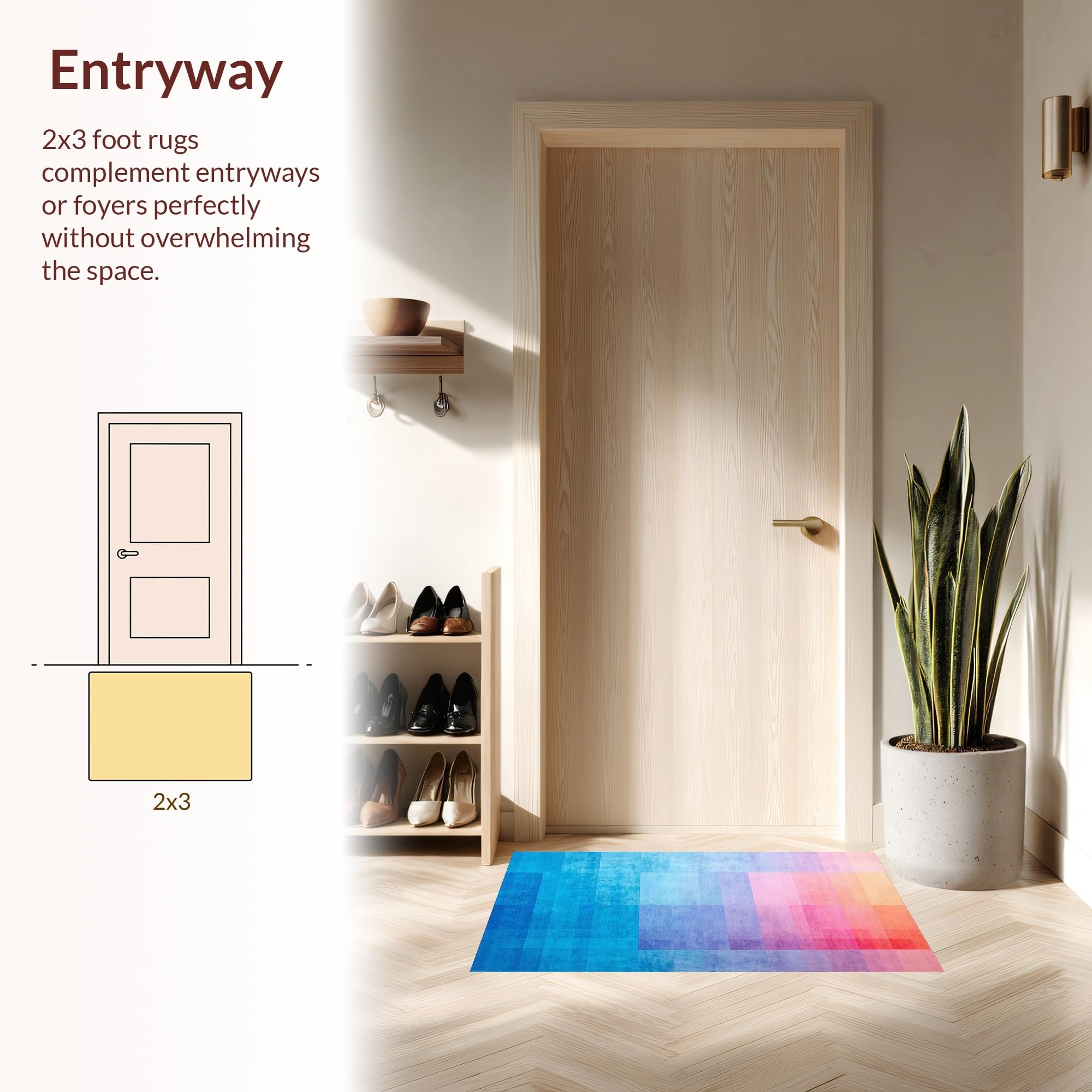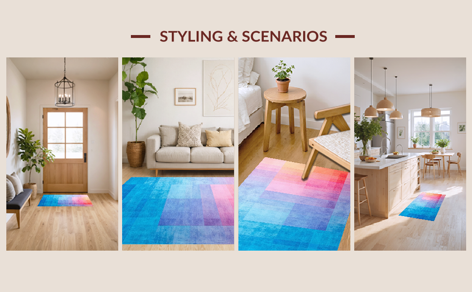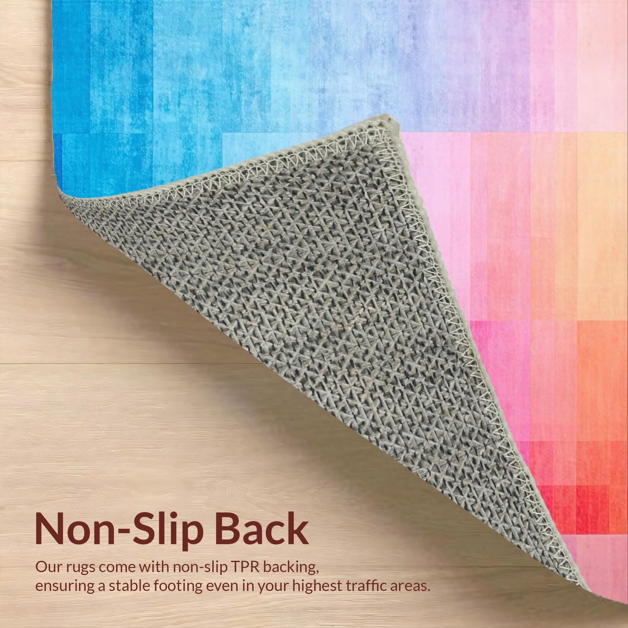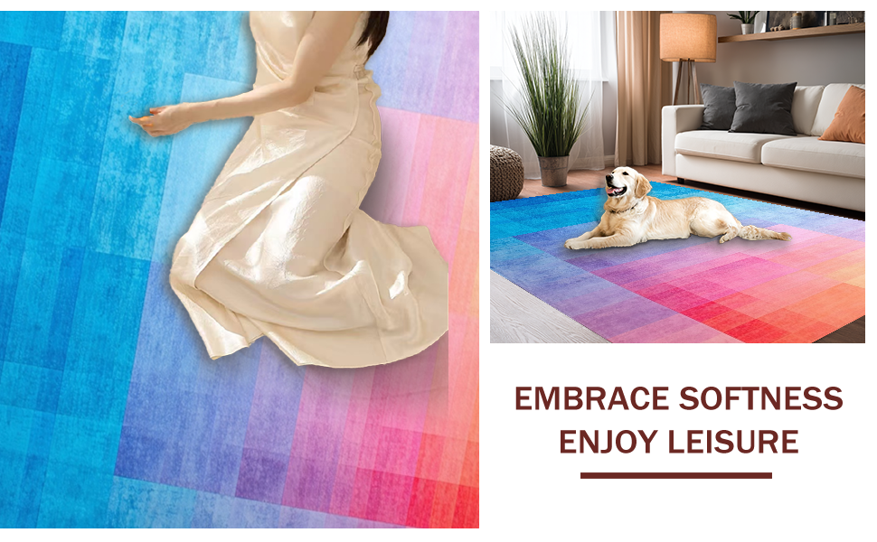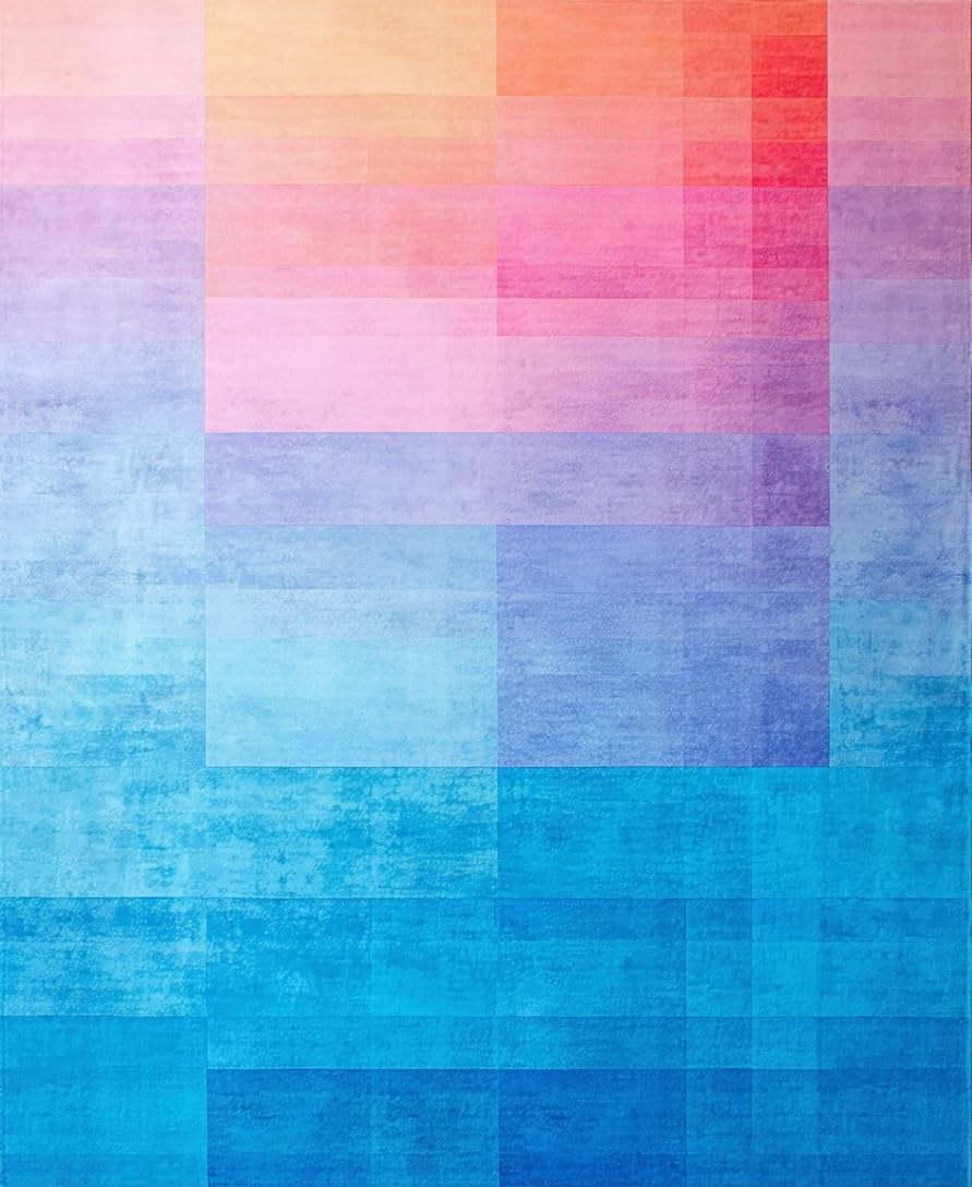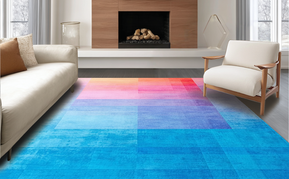 Ultra Soft Area Rug, Non Slip, Stain Resistant, Washable Area Rugs for Living Room, Bedroom, Playful Rainbow Ombre Pattern(Blue) Overview:
