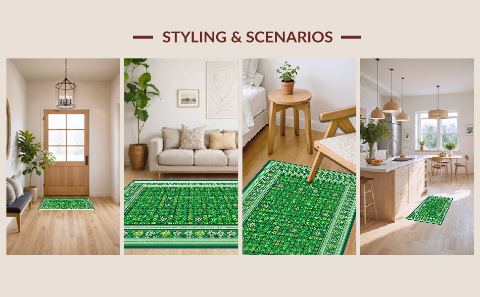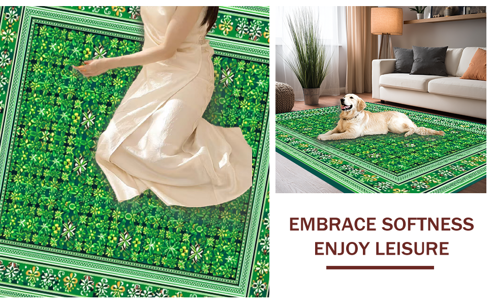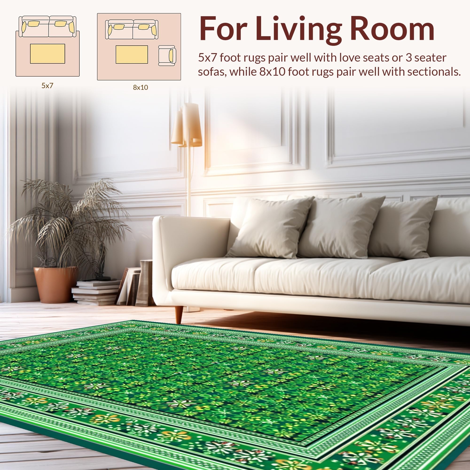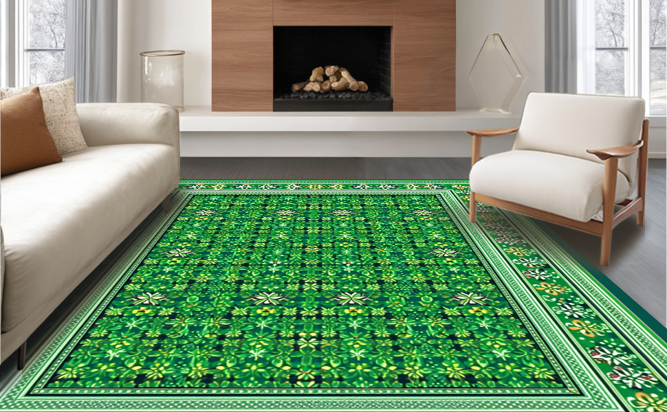 Ultra Soft Area Rug, Non Slip, Stain Resistant, Washable Area Rugs for Living Room, Bedroom, Playful Rustic Plaid Design(Green) Overview:
