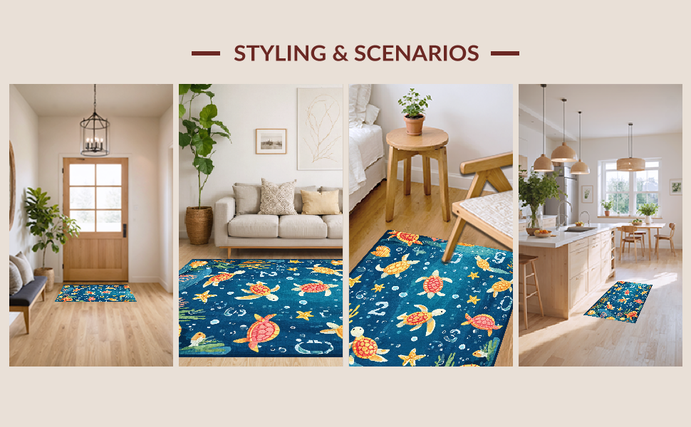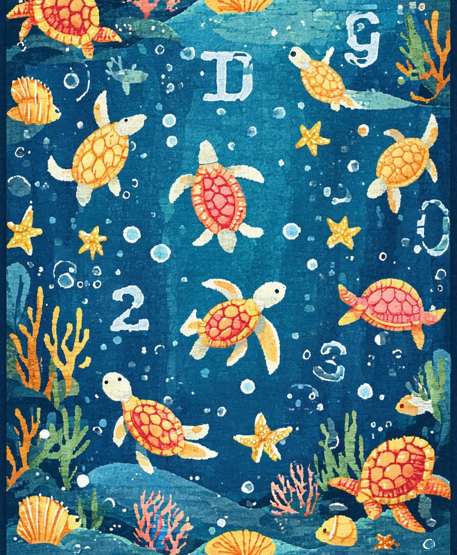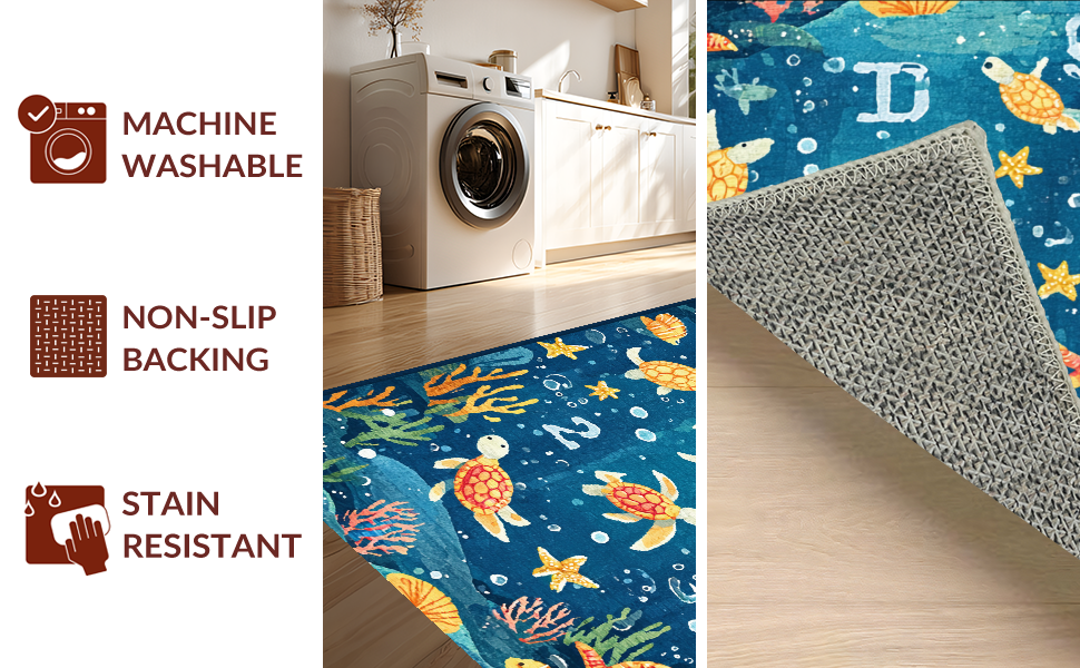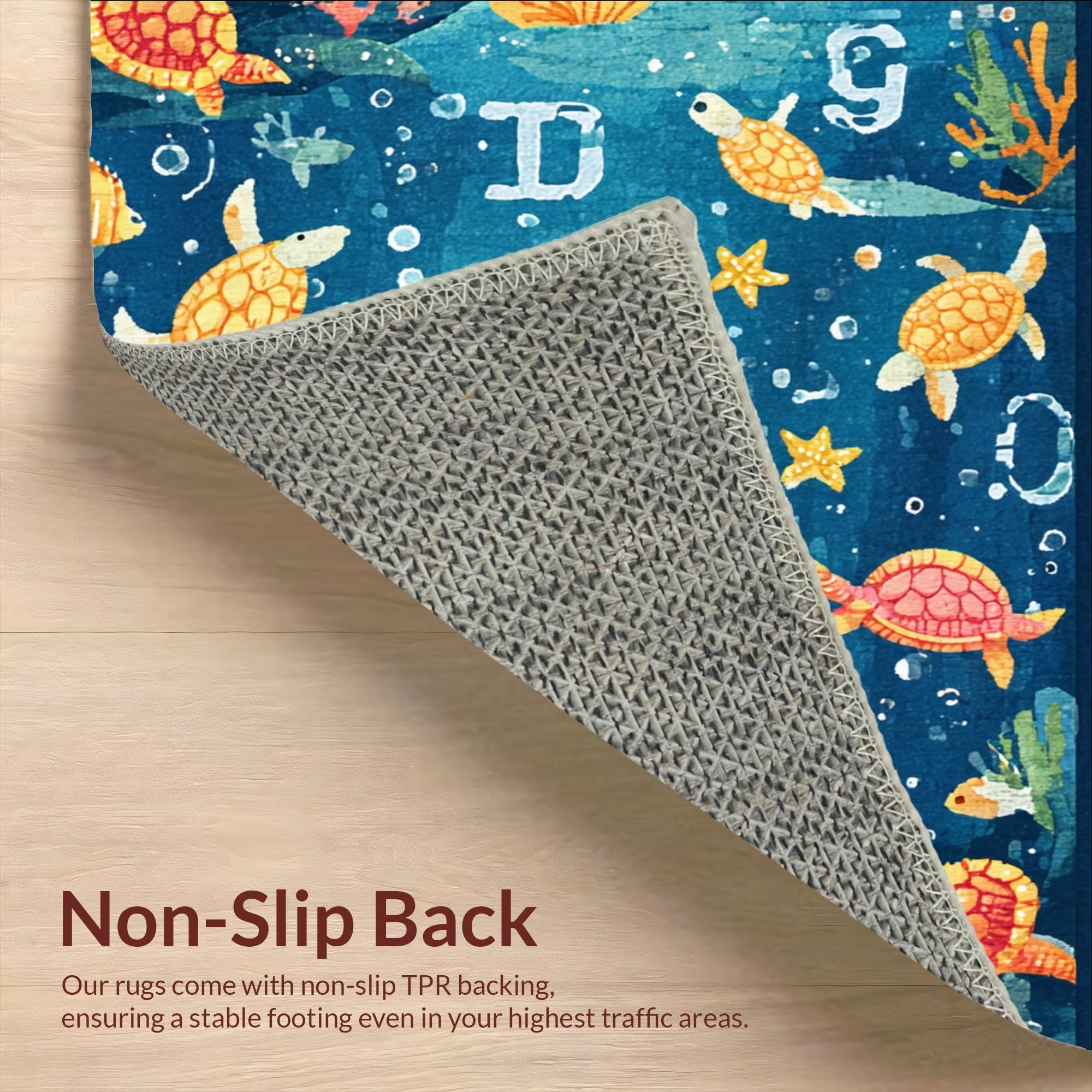 Ultra Soft Area Rug, Non Slip, Stain Resistant, Washable Area Rugs for Living Room, Bedroom, Playful Sea Animal Carpet with Alphabet and Number Learning Elements(Blue) Overview: