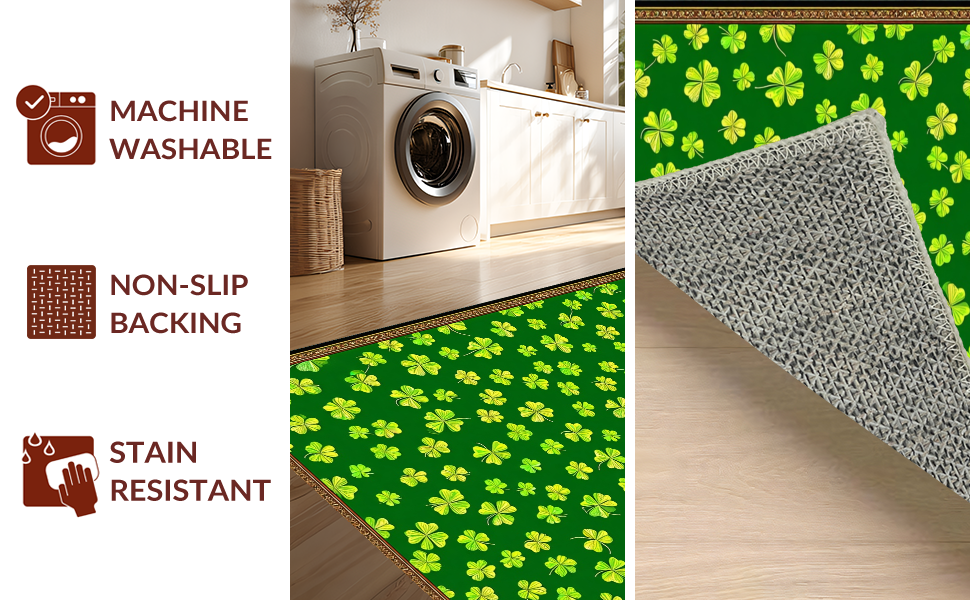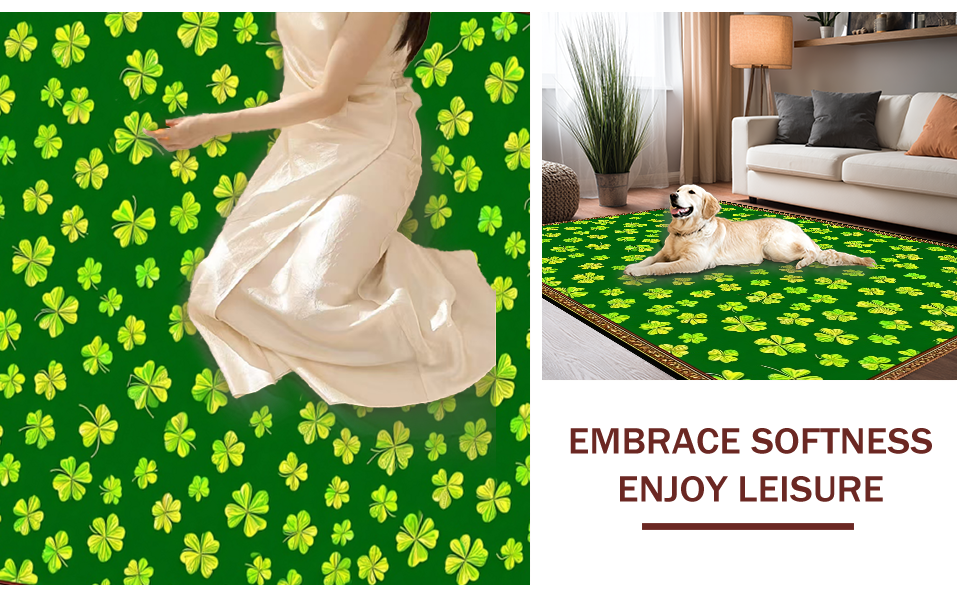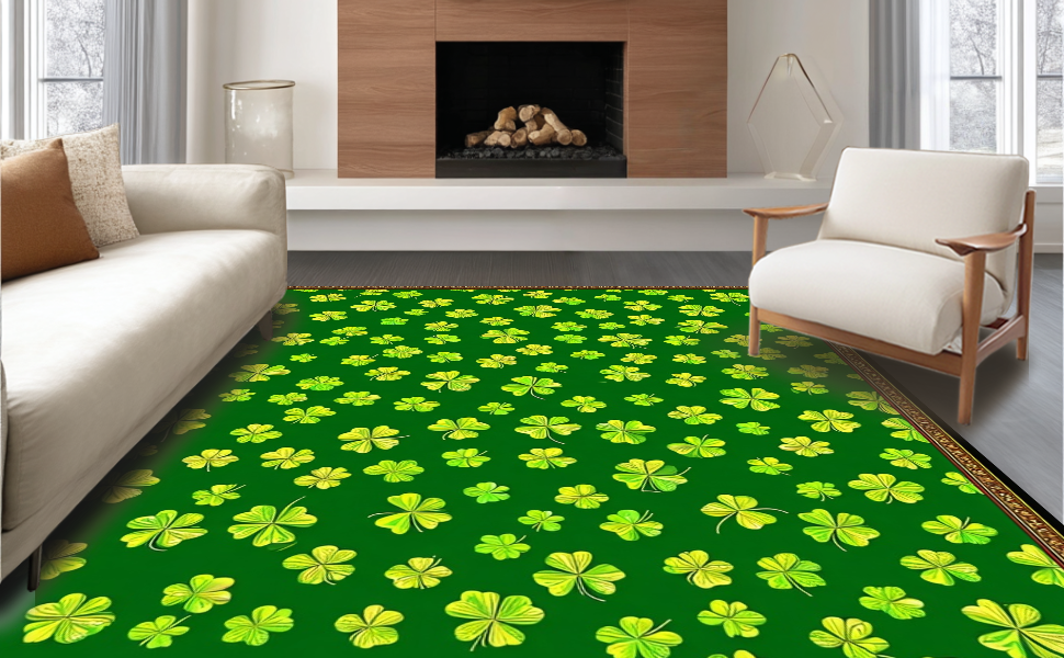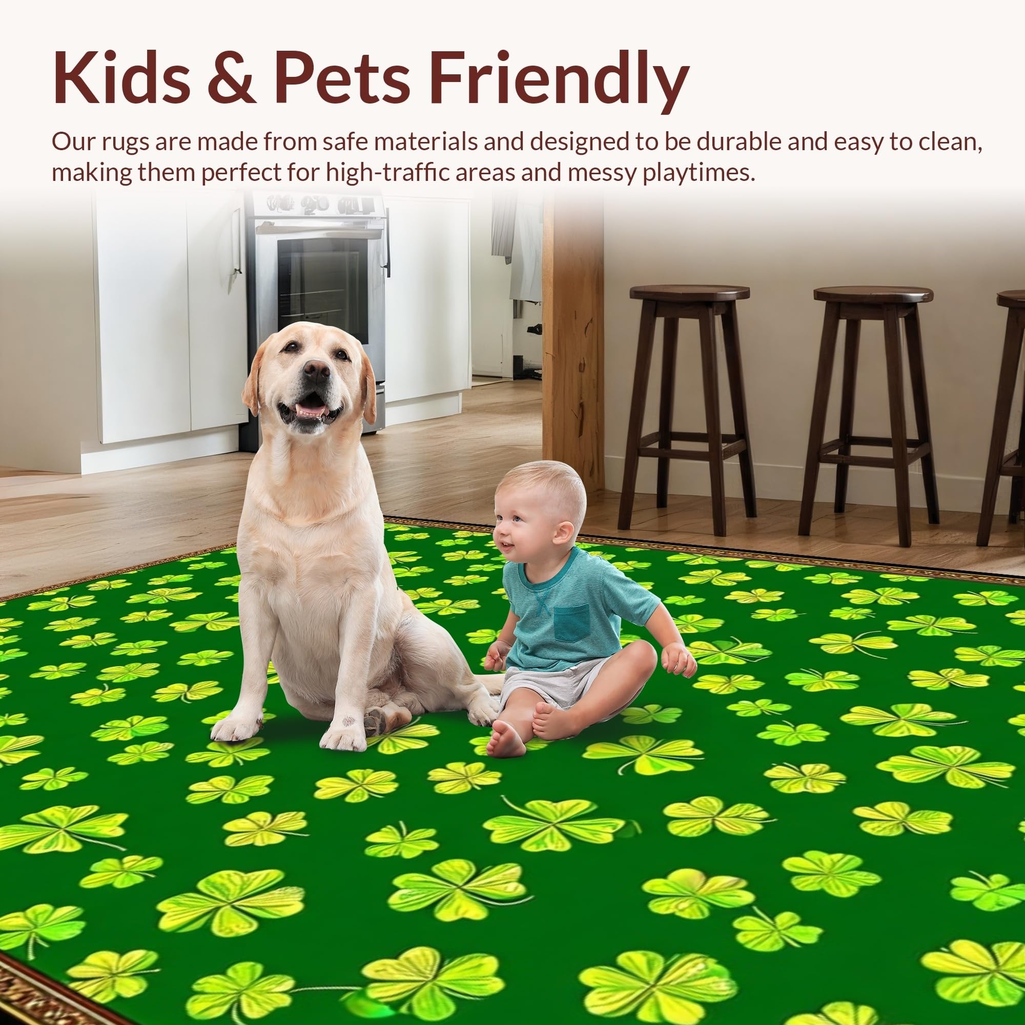 Ultra Soft Area Rug, Non Slip, Stain Resistant, Washable Area Rugs for Living Room, Bedroom, Playful Shamrock Graphic Element(Green) Overview: