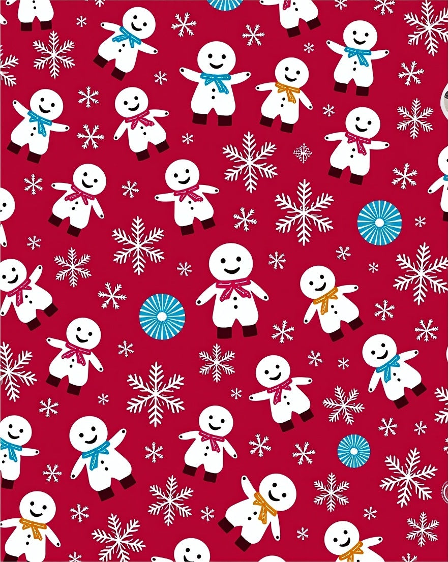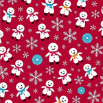 Playful Snowman Figures Surrounded by Sparkling Snowflake Clusters(Red)