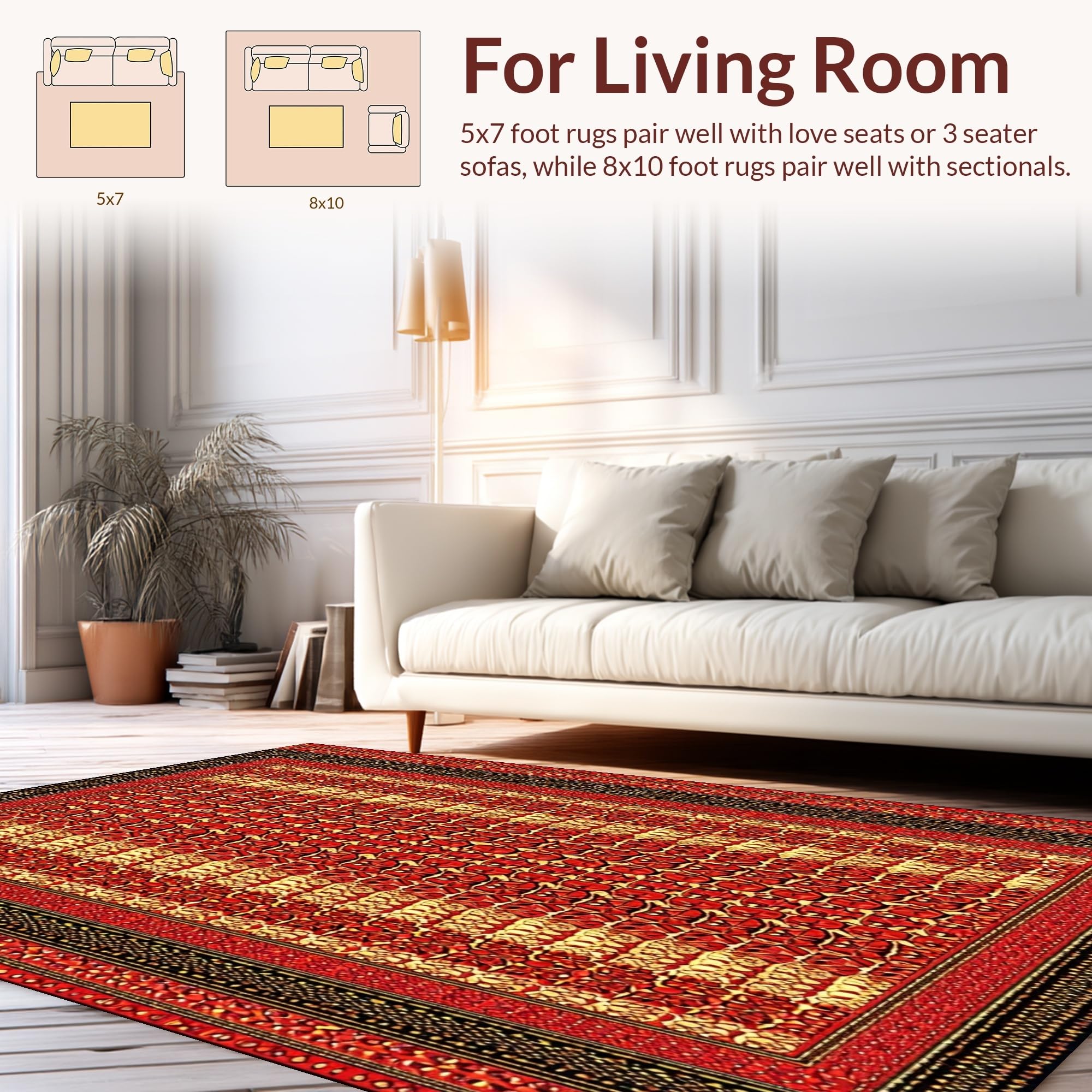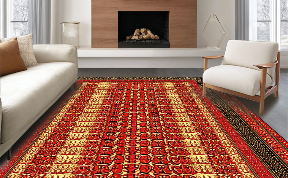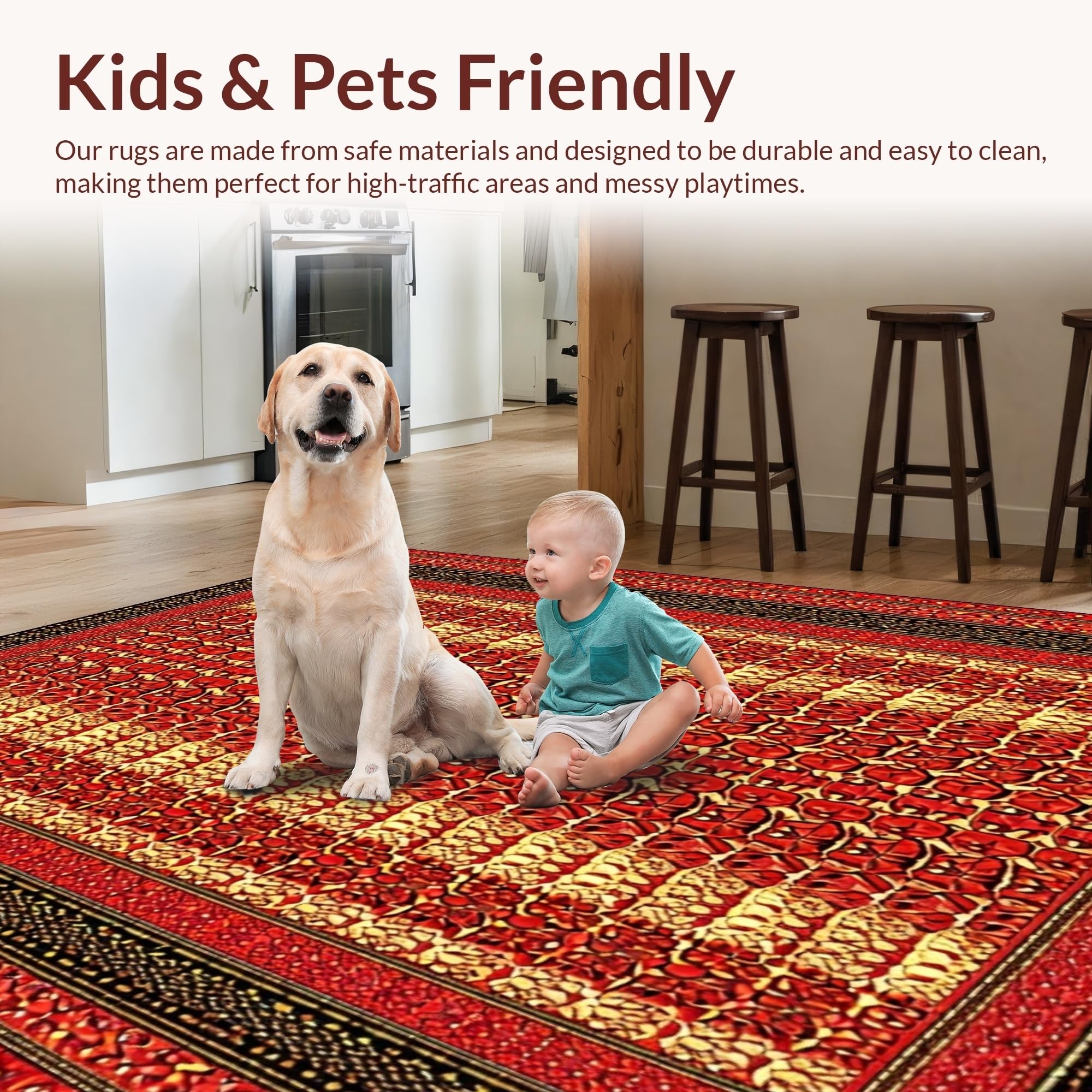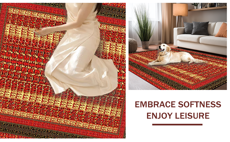 Ultra Soft Area Rug, Non Slip, Stain Resistant, Washable Area Rugs for Living Room, Bedroom, Playful Trellis Style with Depth(Red) Overview: