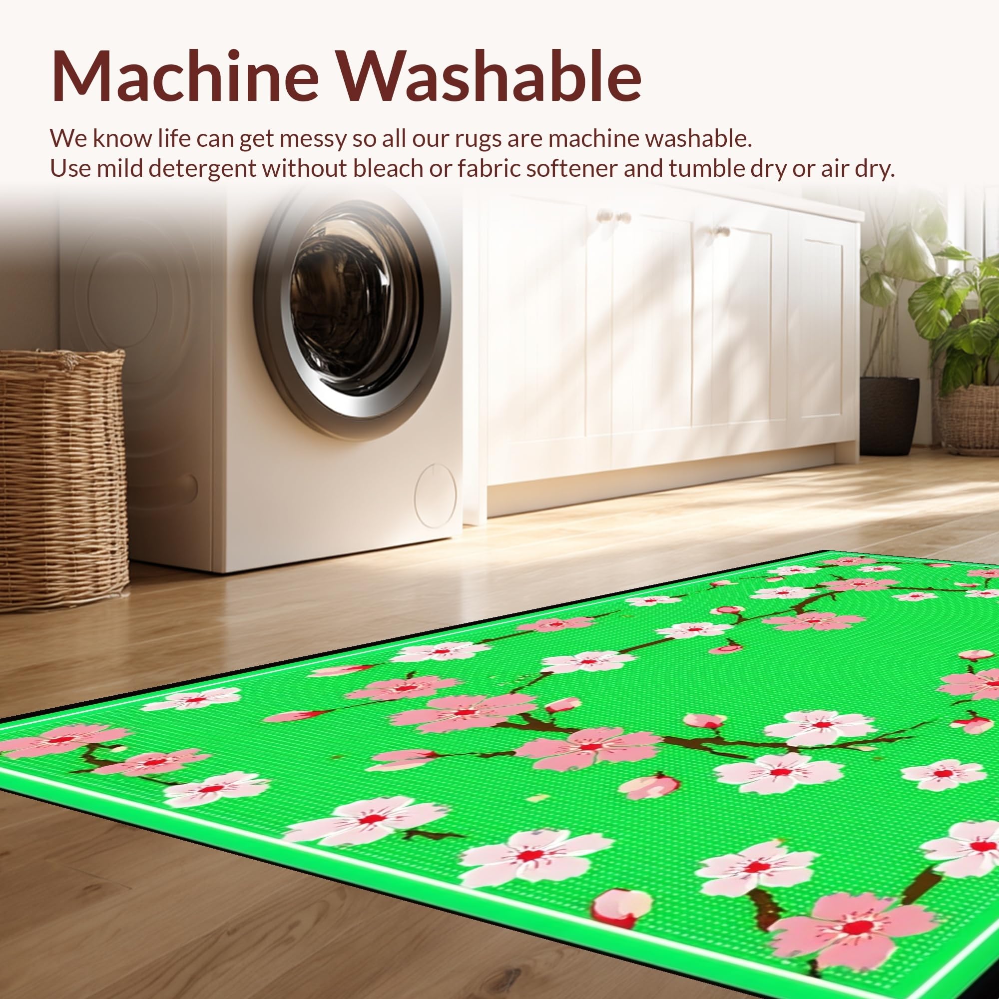 - Machine Washable: Our rugs can be easily thrown in the wash machine.